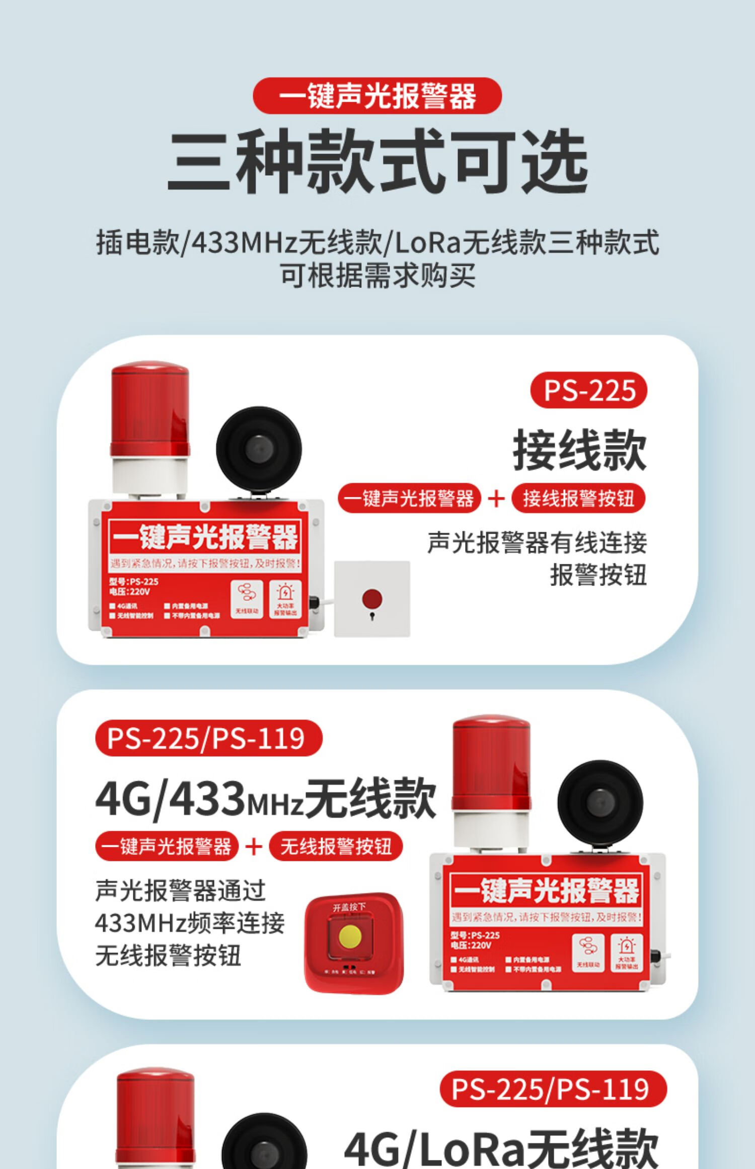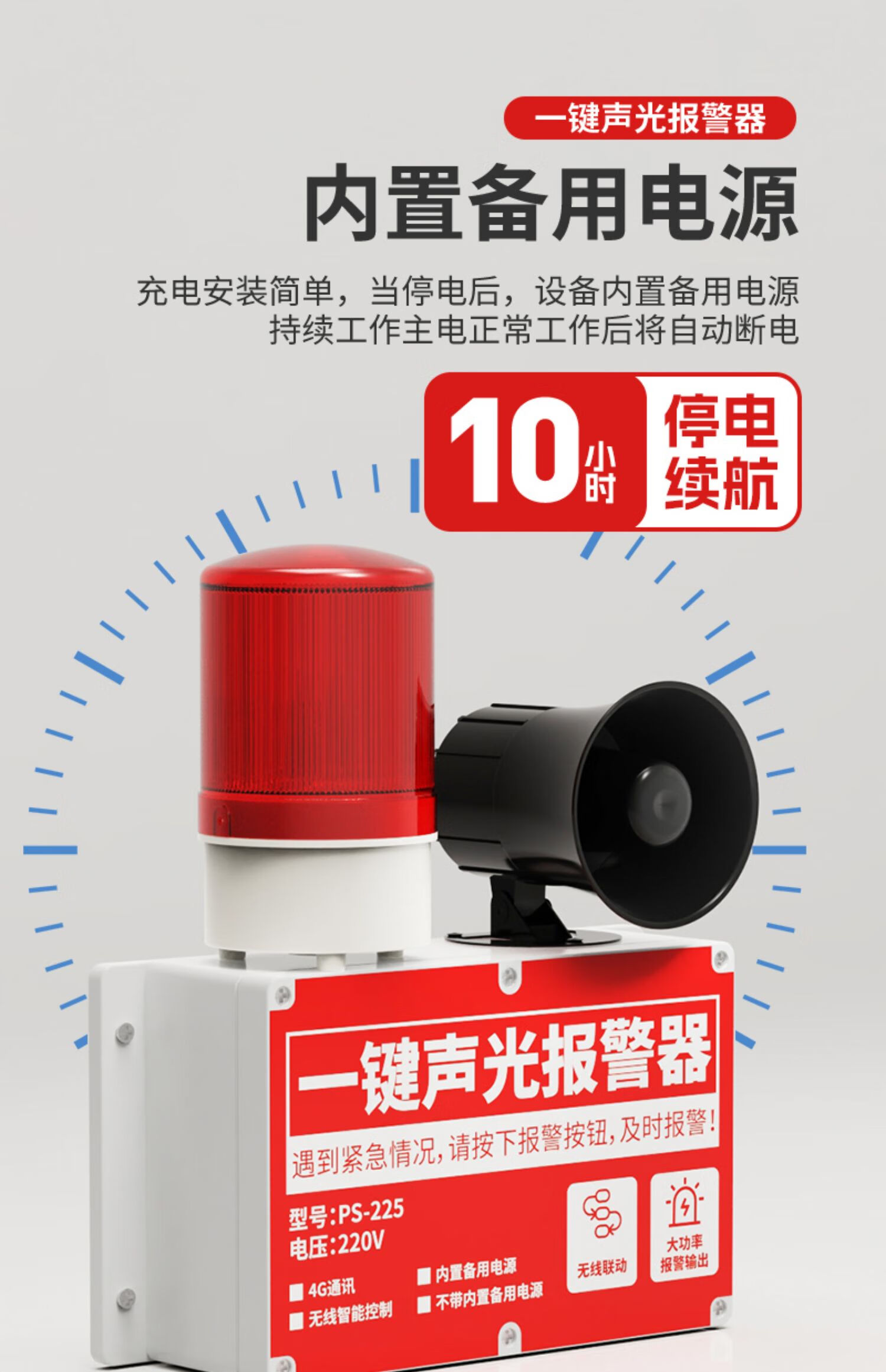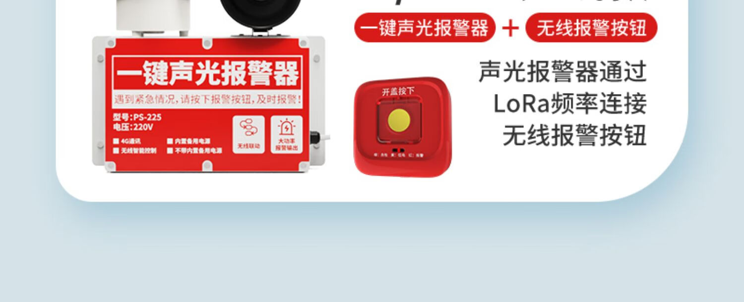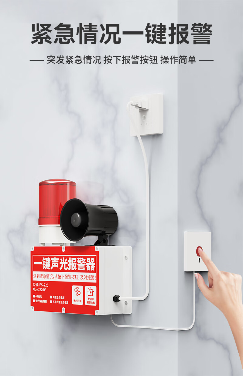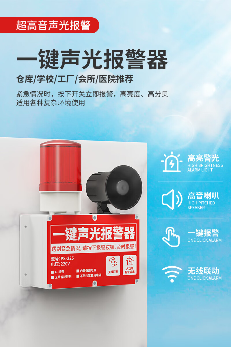 立可安一键声光报警器工业商用消防火灾逃生警铃联动式广播疏散警报装置 无线款:4台同时报警