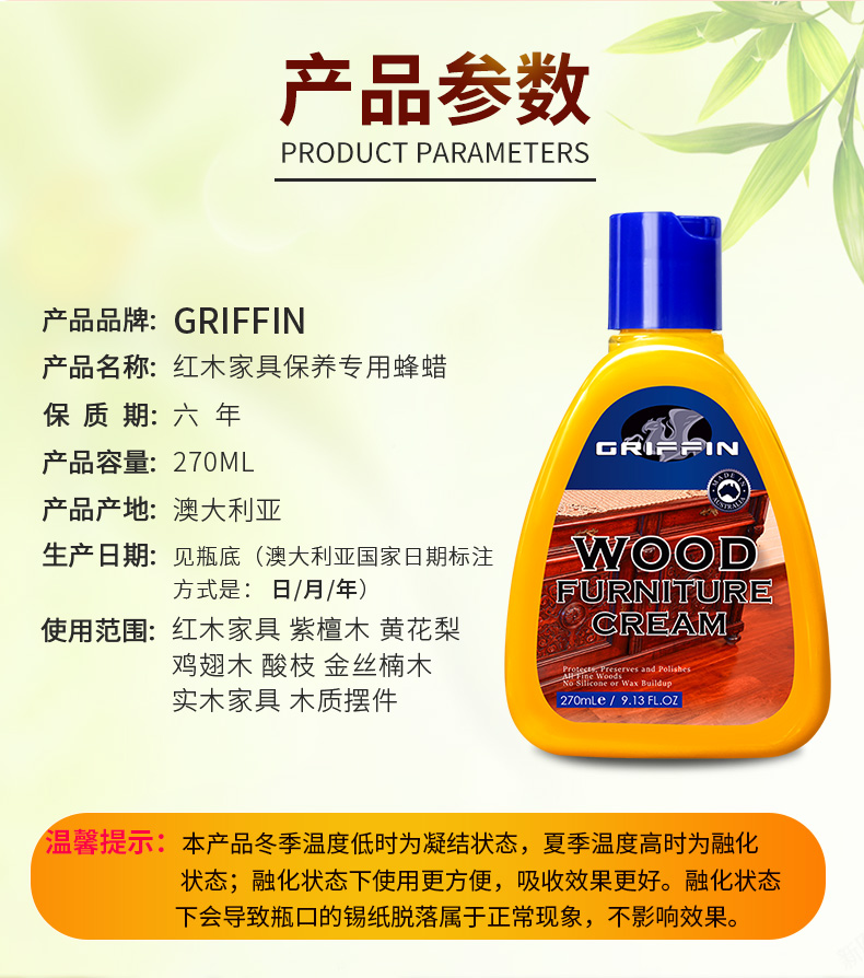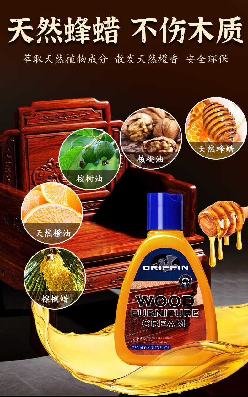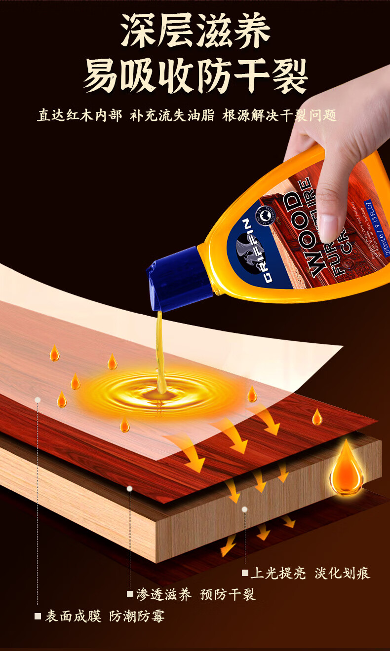 GRIFFIN红木家具保养油实木地板保养蜡核桃油红木家具专用蜂蜡红木油保养 【店长力荐】2瓶装套餐