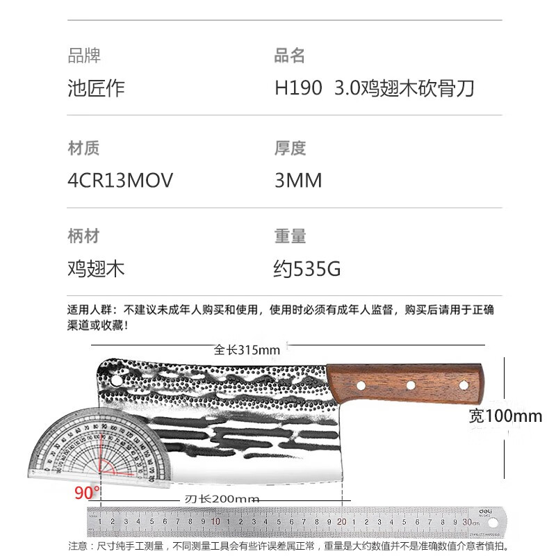 池匠作【阿乐推荐】菜刀古法锻打斩剁骨刀大骨刀切片切菜刀实木手柄 切片刀