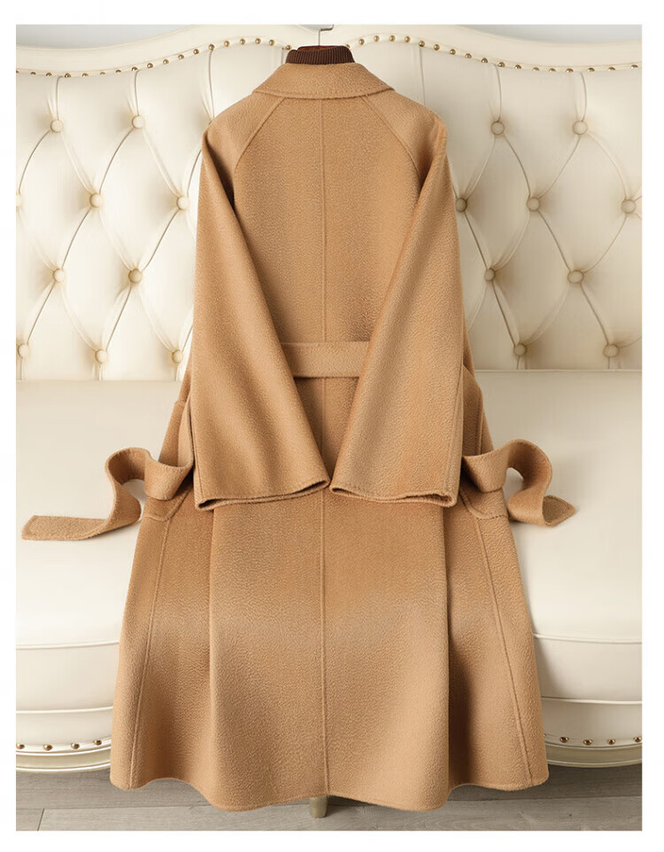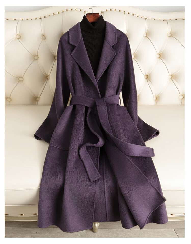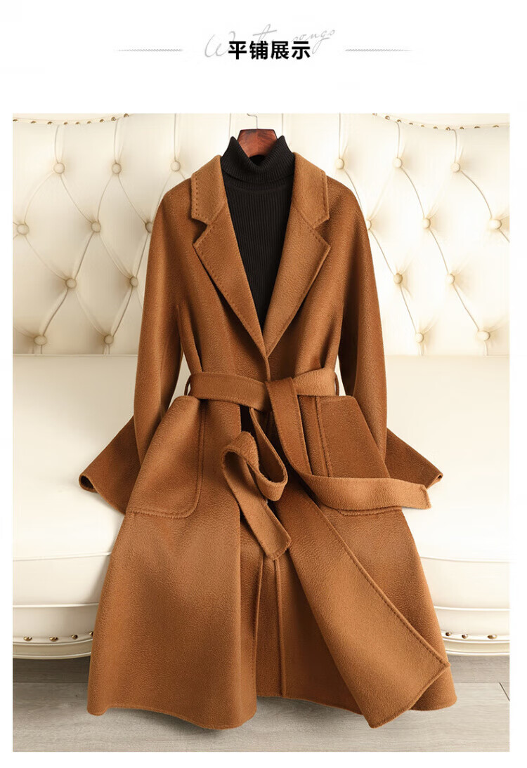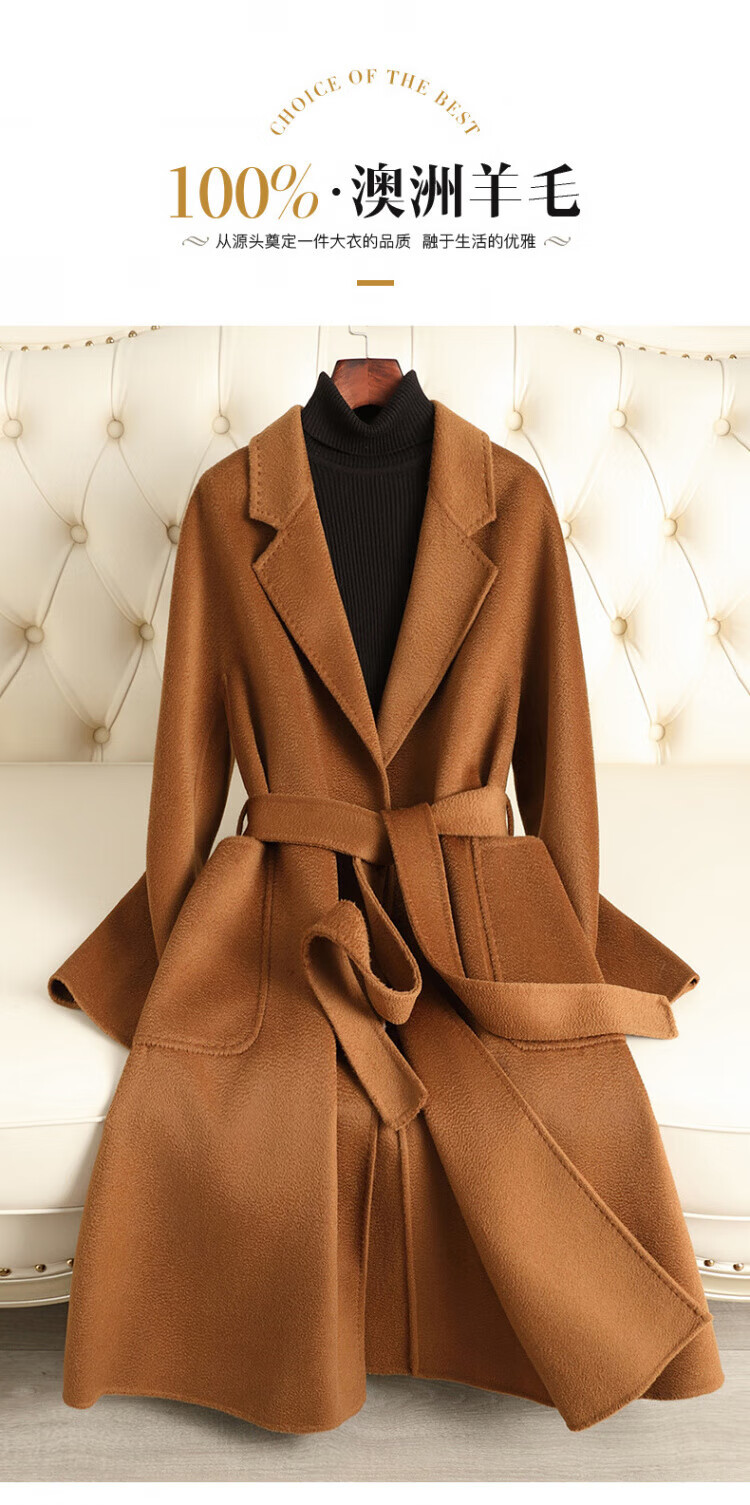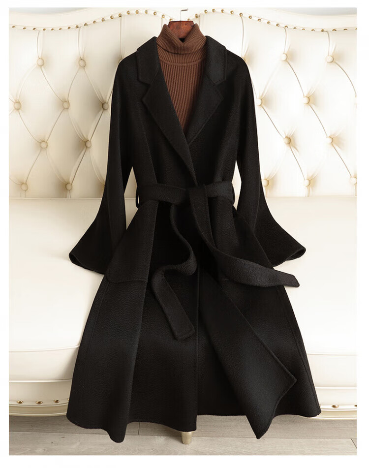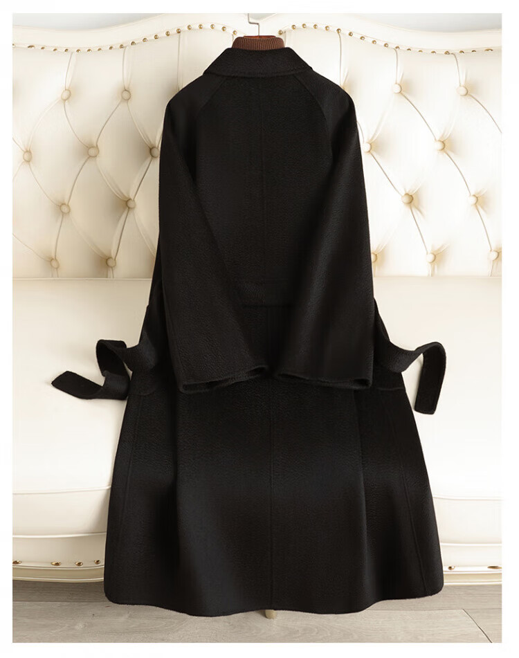 FOURDATRYM家双面羊毛大衣女长款2025秋冬新款水波纹过膝高级感羊毛呢外套 黑色 M