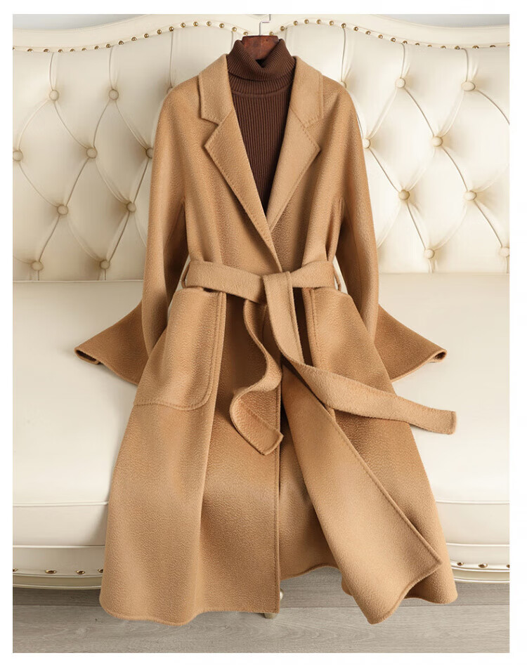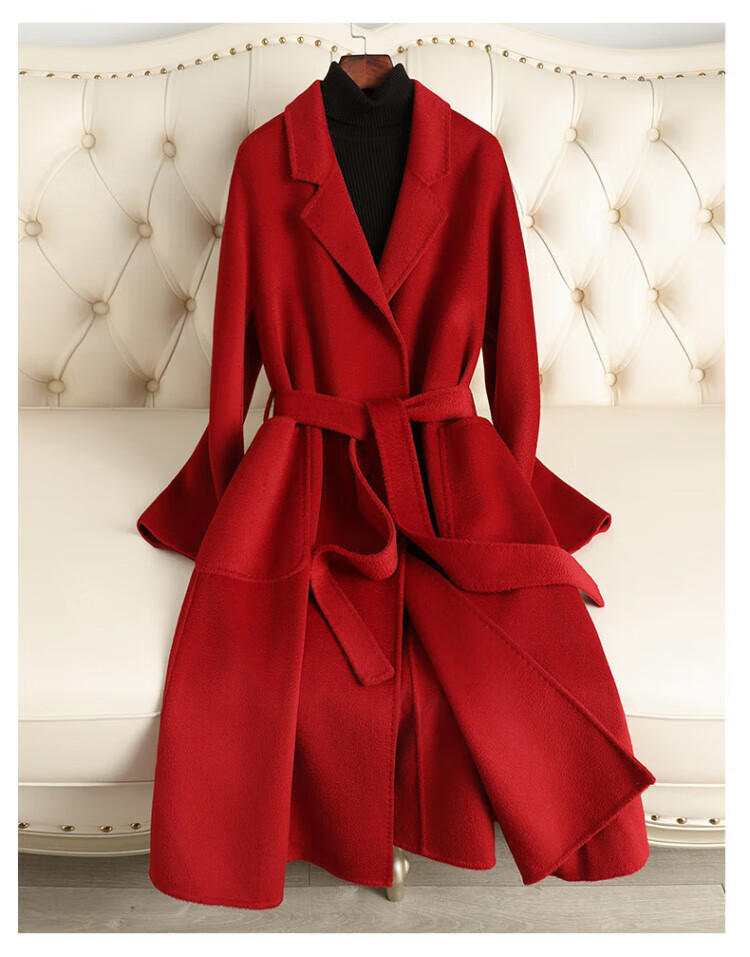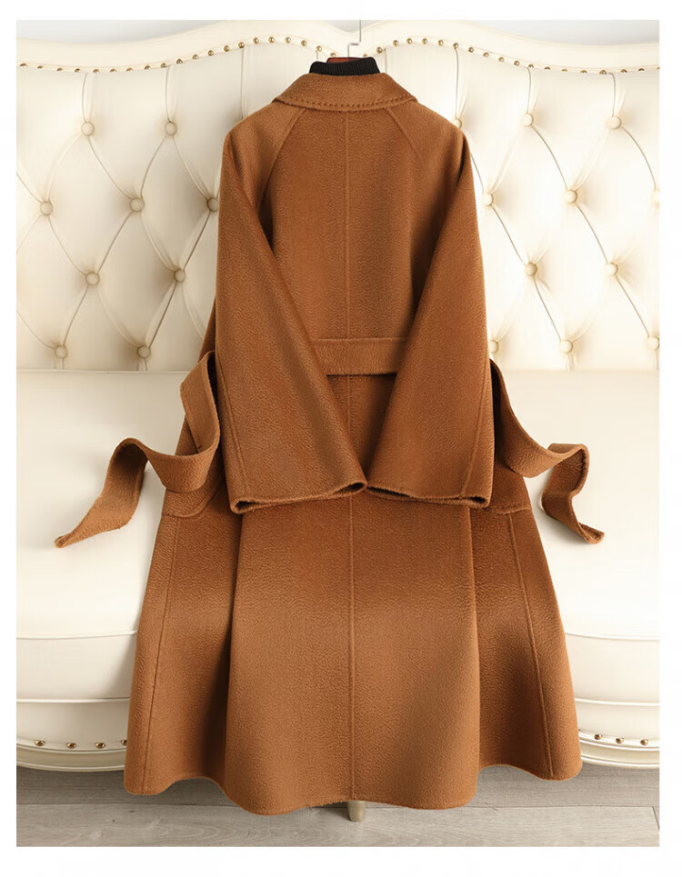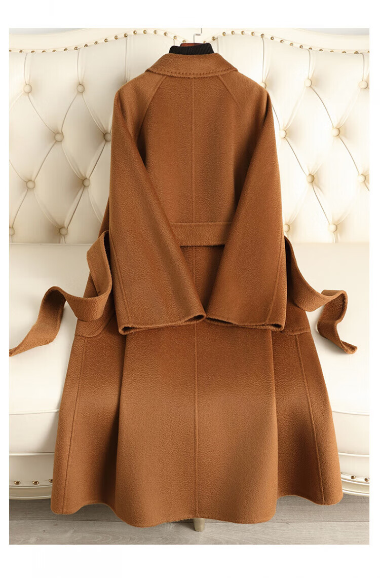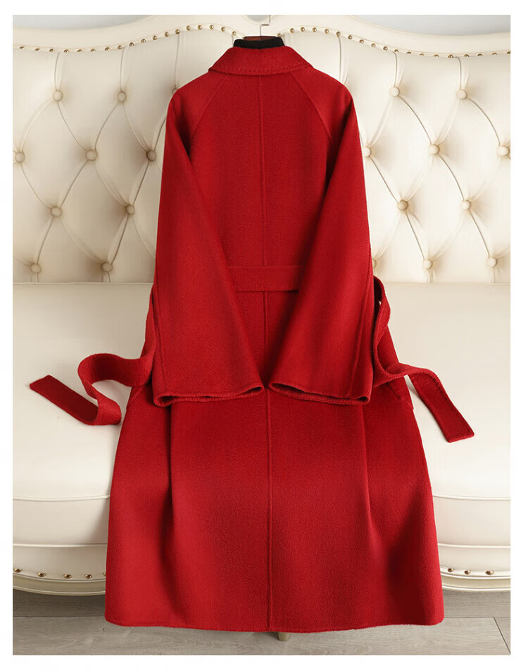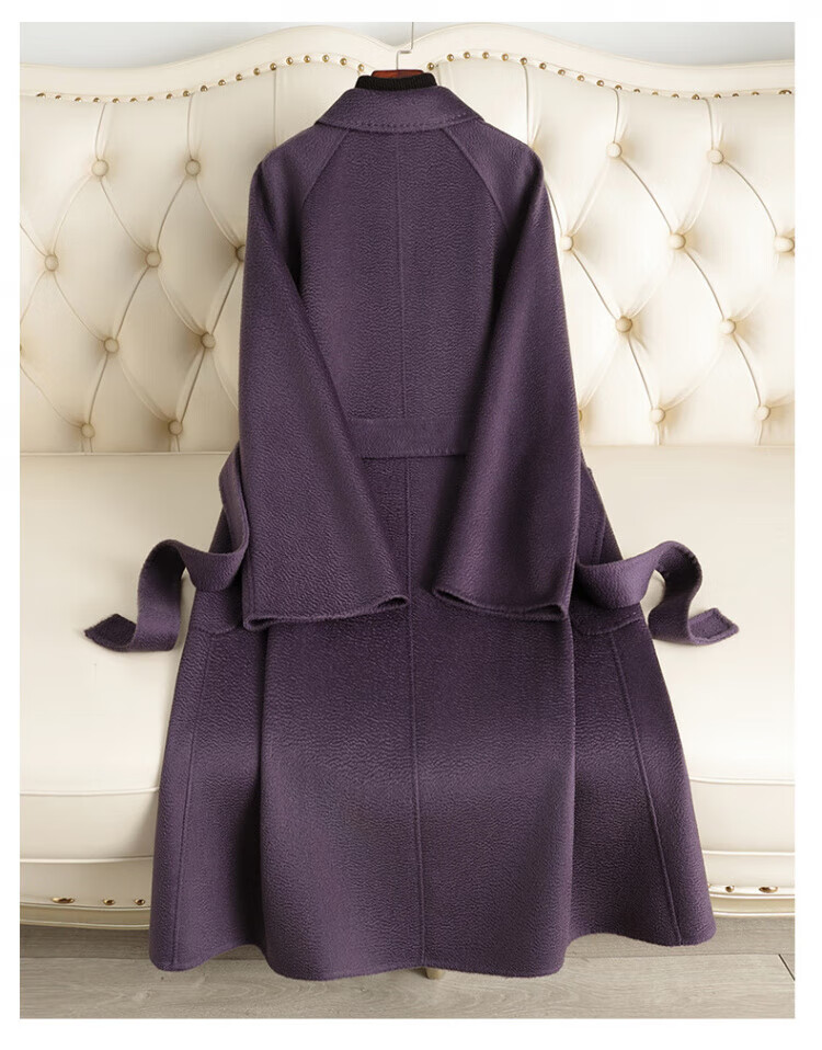 FOURDATRYM家双面羊毛大衣女长款2025秋冬新款水波纹过膝高级感羊毛呢外套 黑色 M