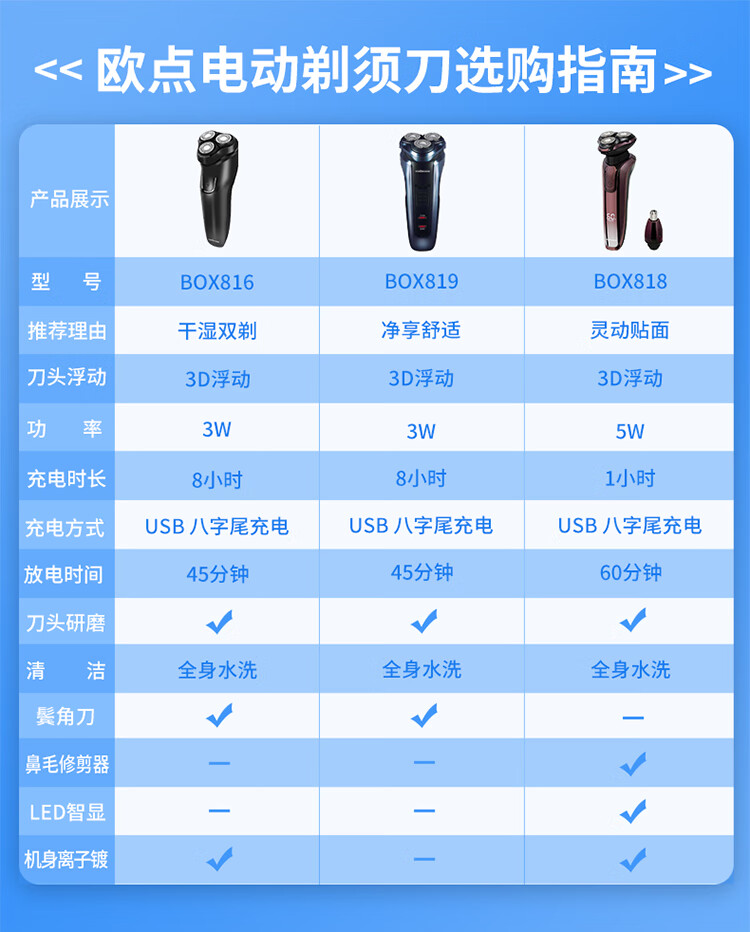 欧点电动剃须刀全身水洗男士刮胡刀 鬓角修剪器 刀头浮动刨须刀 刮脸刀脱毛刀 生日礼物送老公送男朋友 【全身水洗+鬓角修剪】BOX819