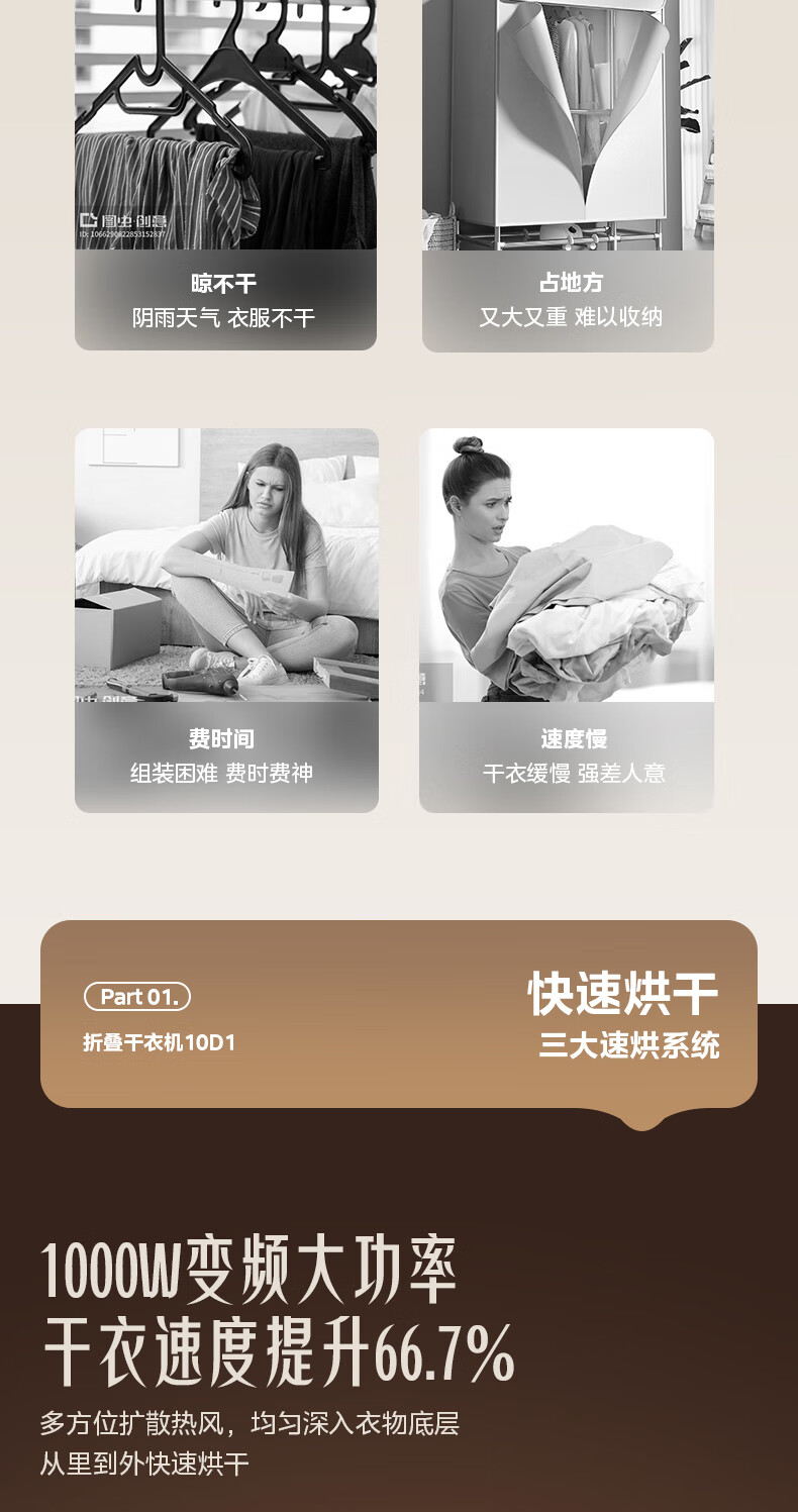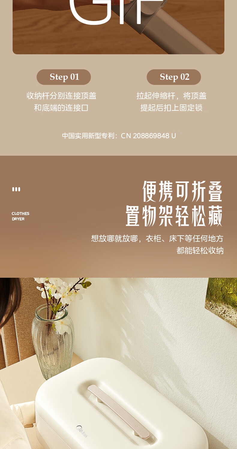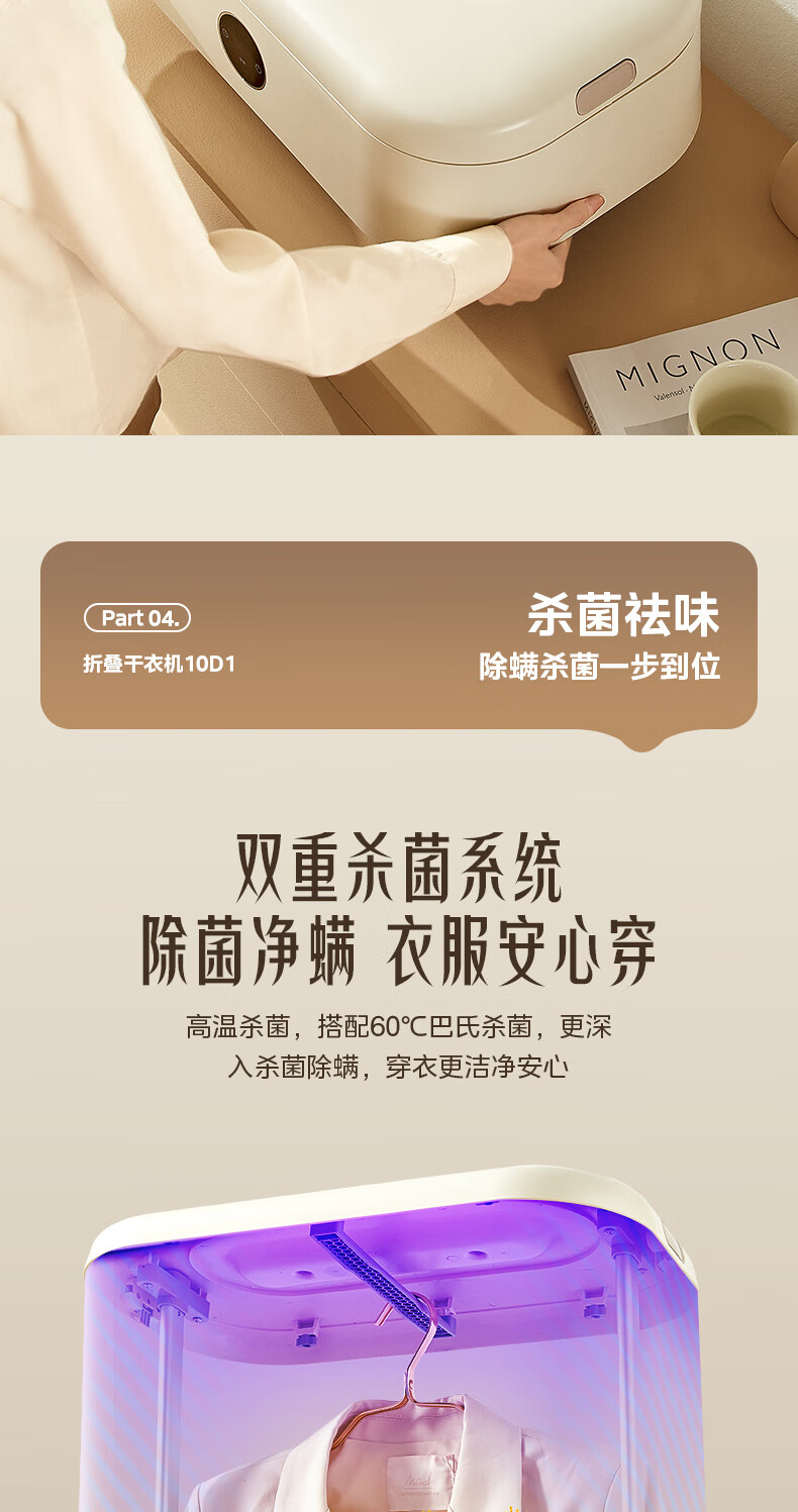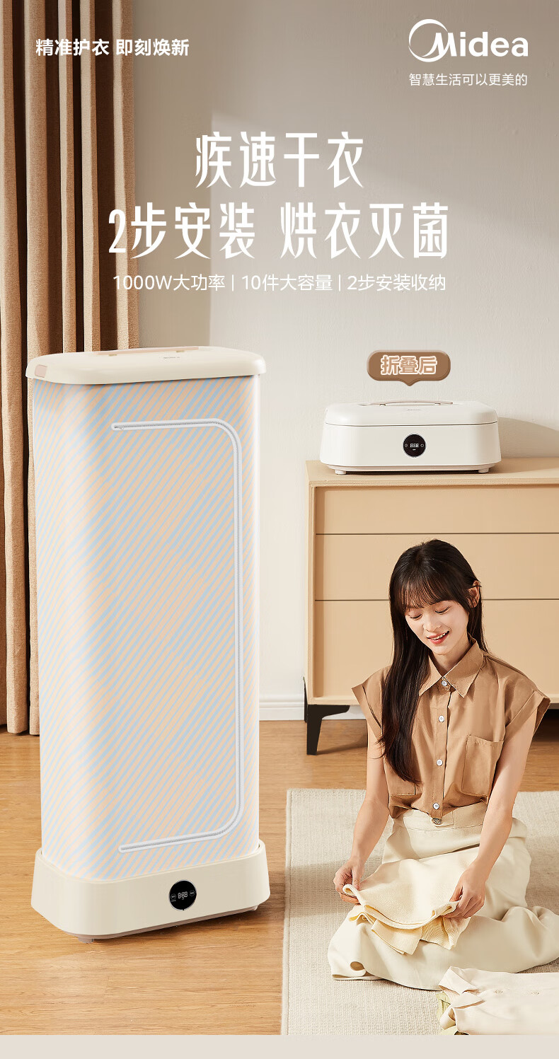 美的(Midea)【折叠迷你便携】干衣机烘干机家用小型旅行烘干机婴儿衣物护理机内衣消毒脱水机政府补贴HBGD10D1