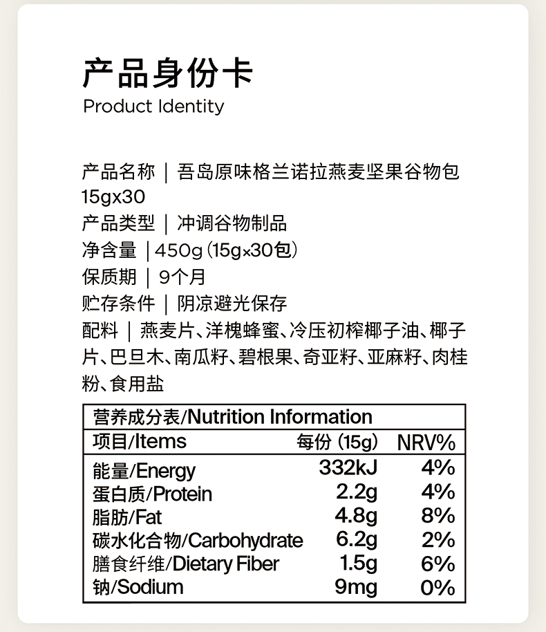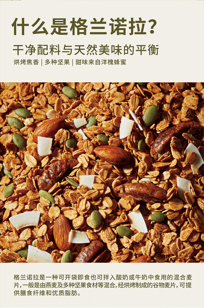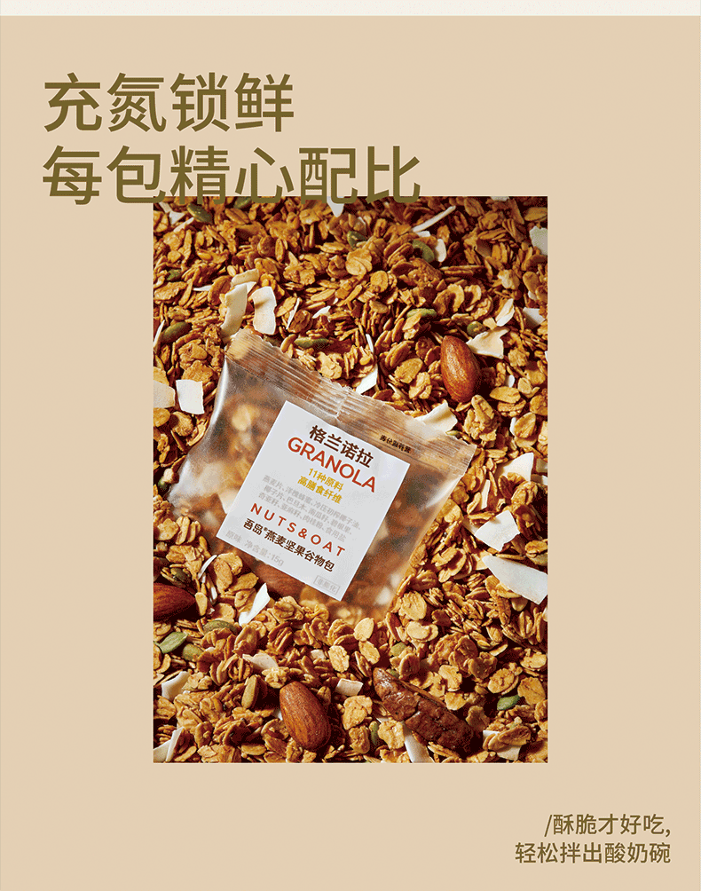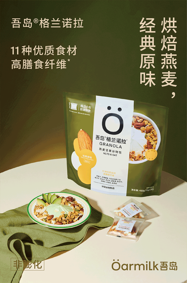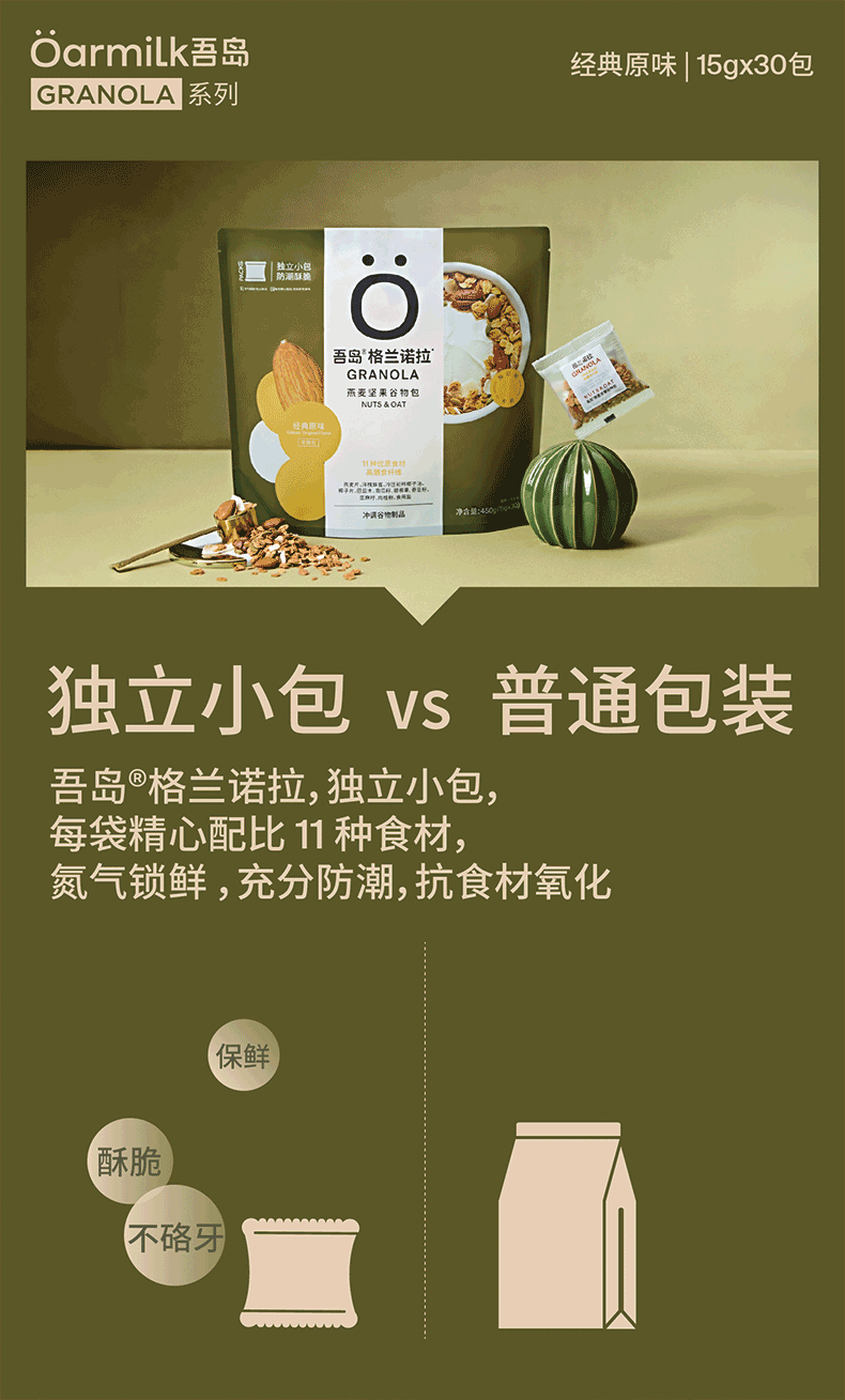 吾岛格兰诺拉原味烘焙燕麦坚果谷物包15gx30包即食早餐酸奶碗开学好礼