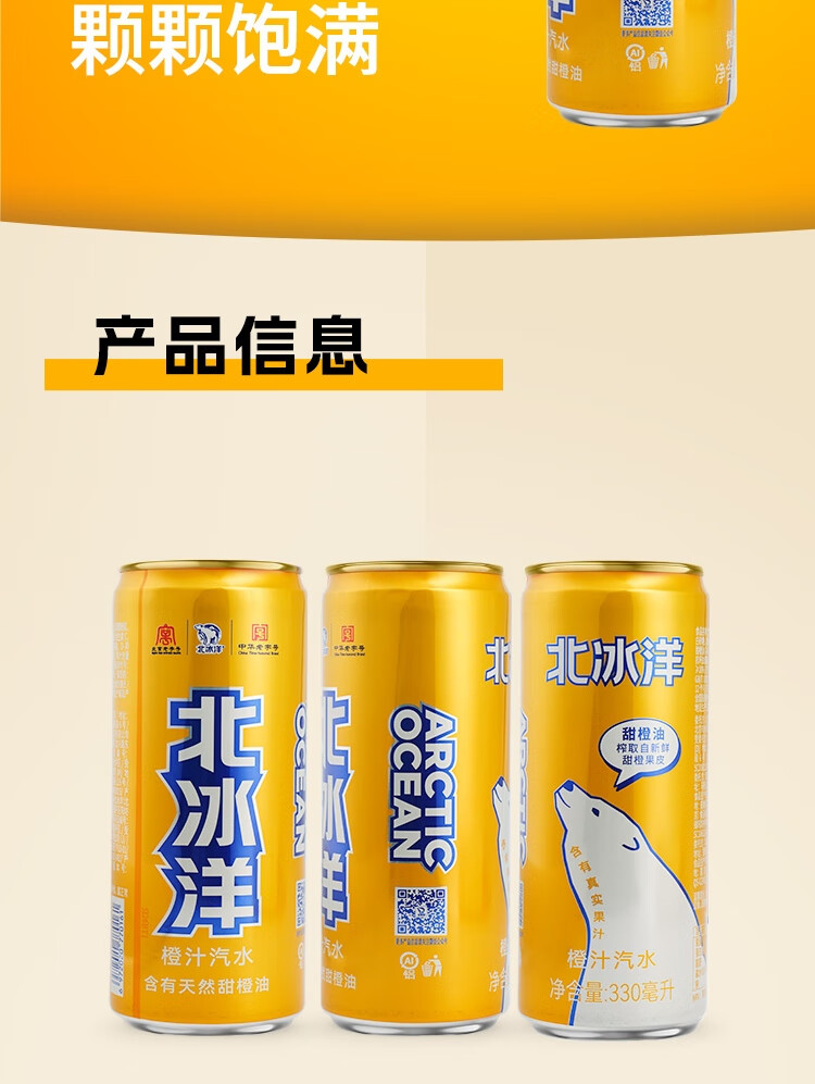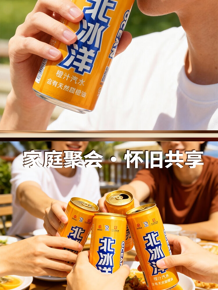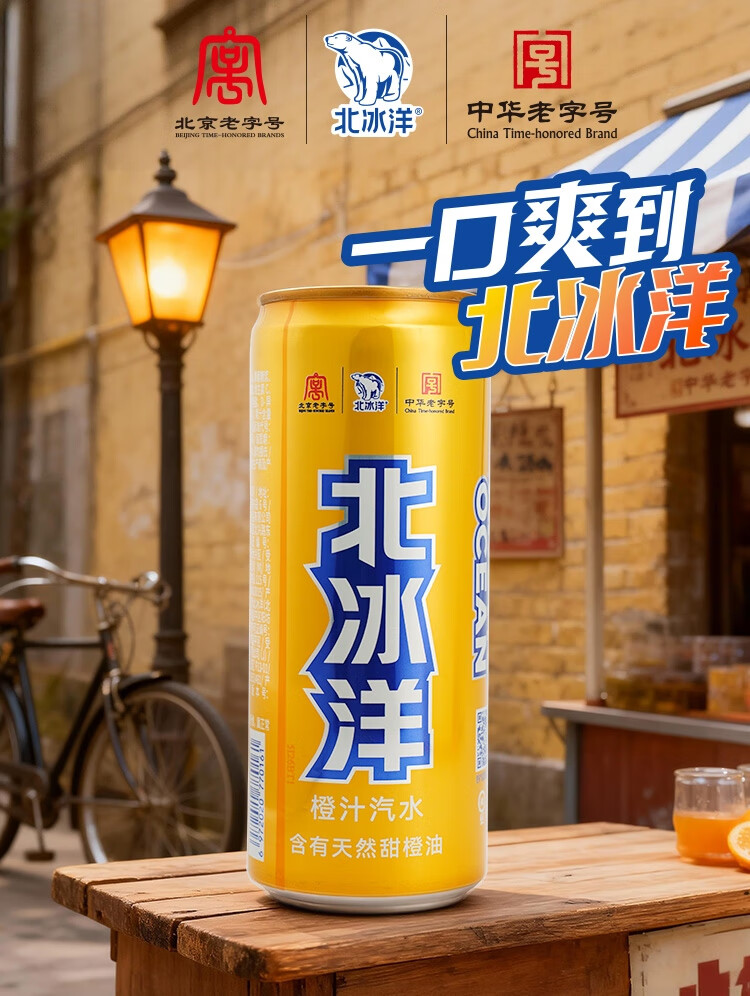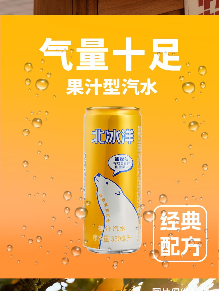 北冰洋 橙汁汽水330ml*24罐 果汁碳酸饮料整箱