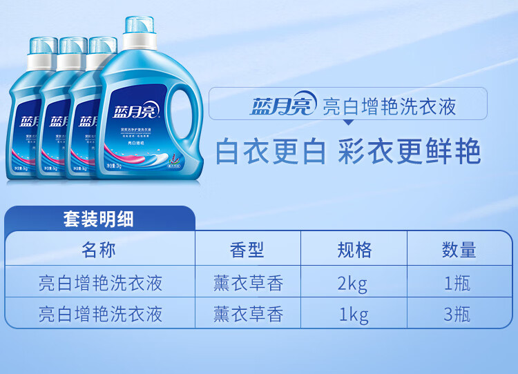 蓝月亮亮白增艳洗衣液薰衣草香 2kg瓶+1kg*3瓶 护色增艳 洁净去污易漂洗