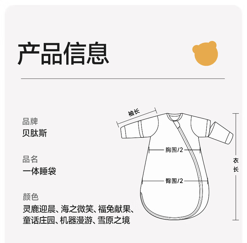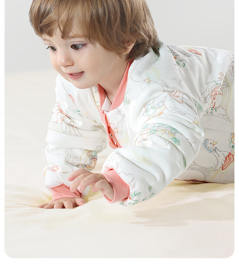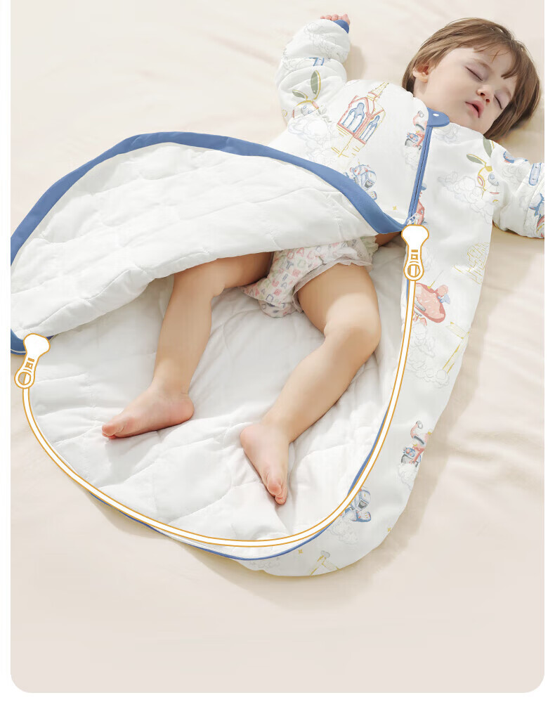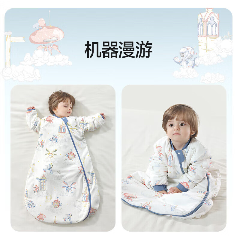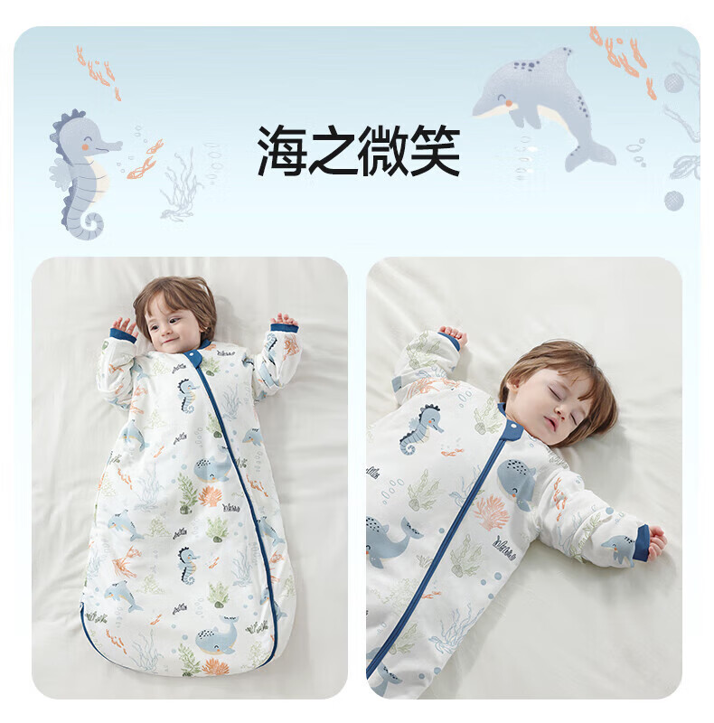 贝肽斯睡袋婴儿春秋恒温新生儿童宝宝睡袋一体式防踢被惊跳包被发热神器 天竹×恒温【秋冬中厚 室温10-20°】海之微笑 M码【适合身高62-85cm】建议年龄9个月-2岁