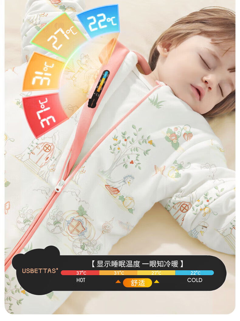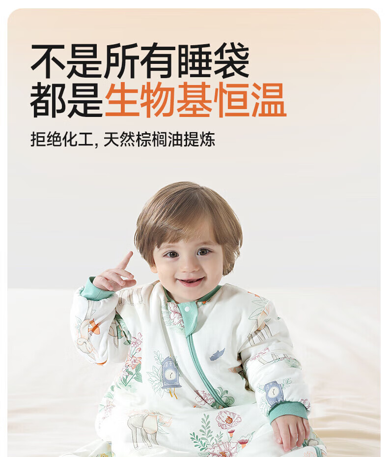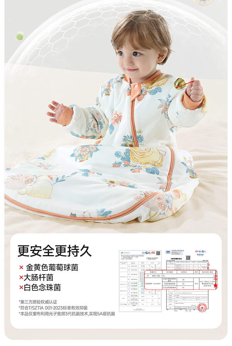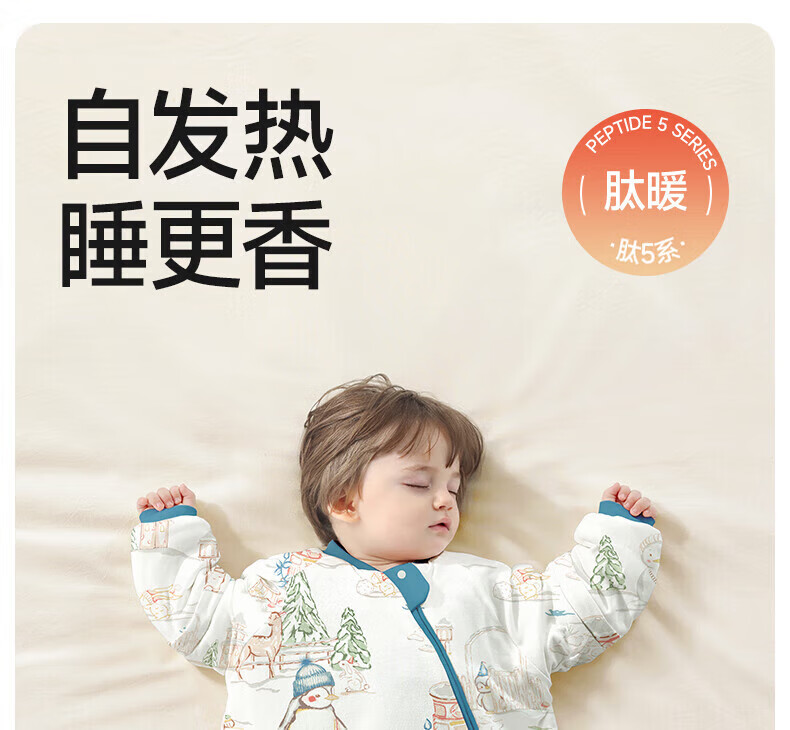 贝肽斯睡袋婴儿春秋恒温新生儿童宝宝睡袋一体式防踢被惊跳包被发热神器 天竹×恒温【秋冬中厚 室温10-20°】海之微笑 M码【适合身高62-85cm】建议年龄9个月-2岁
