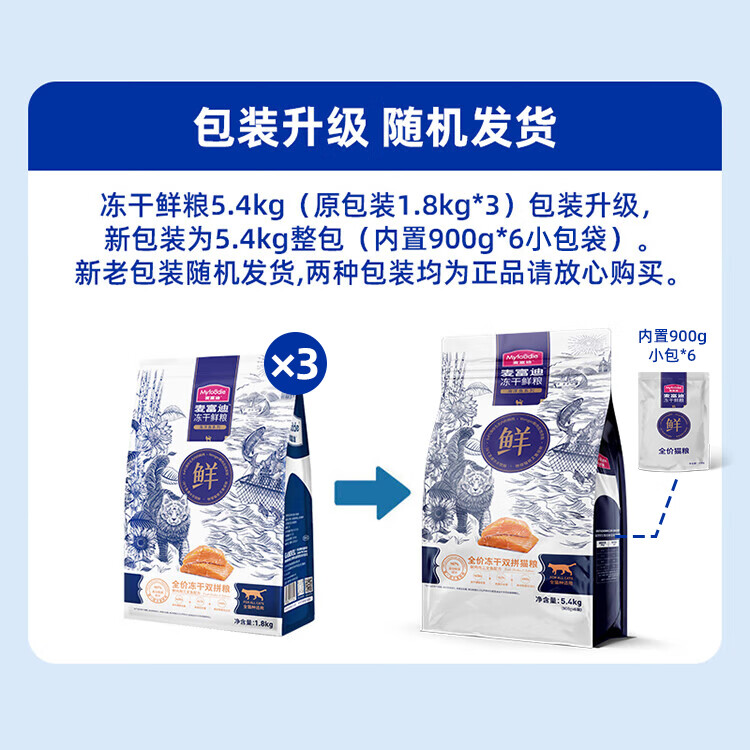 麦富迪猫粮 冻干鲜粮高蛋白成幼猫粮美毛亮毛 三文鱼鸡肉5.4kg