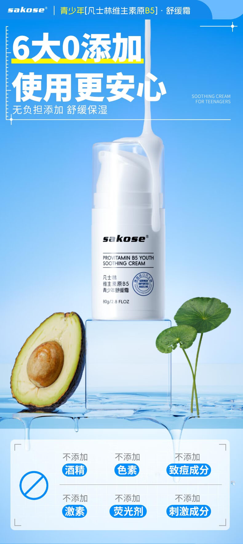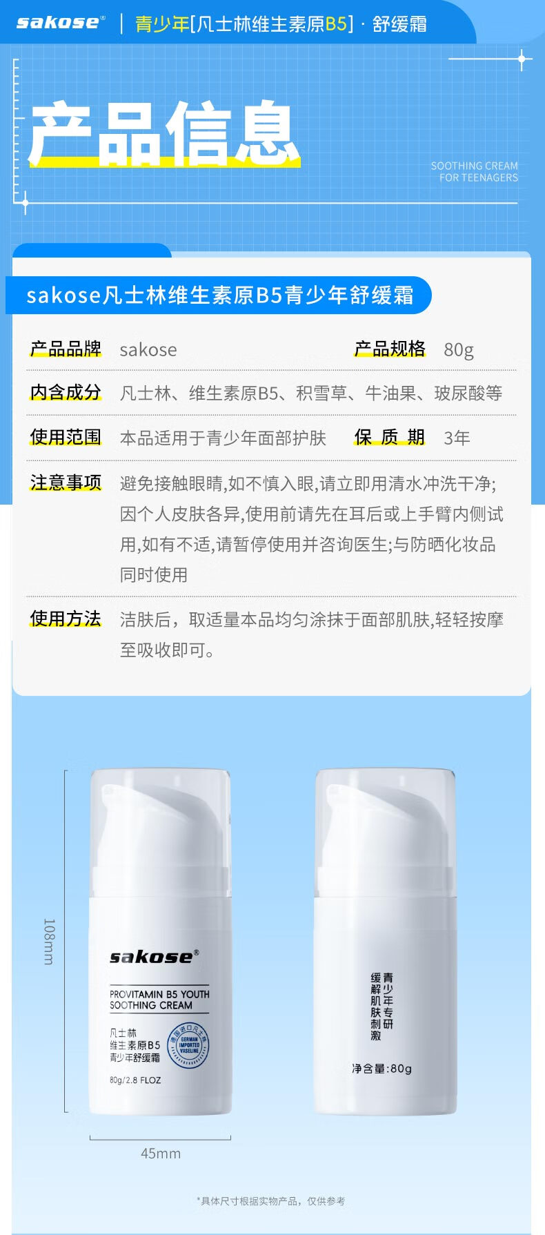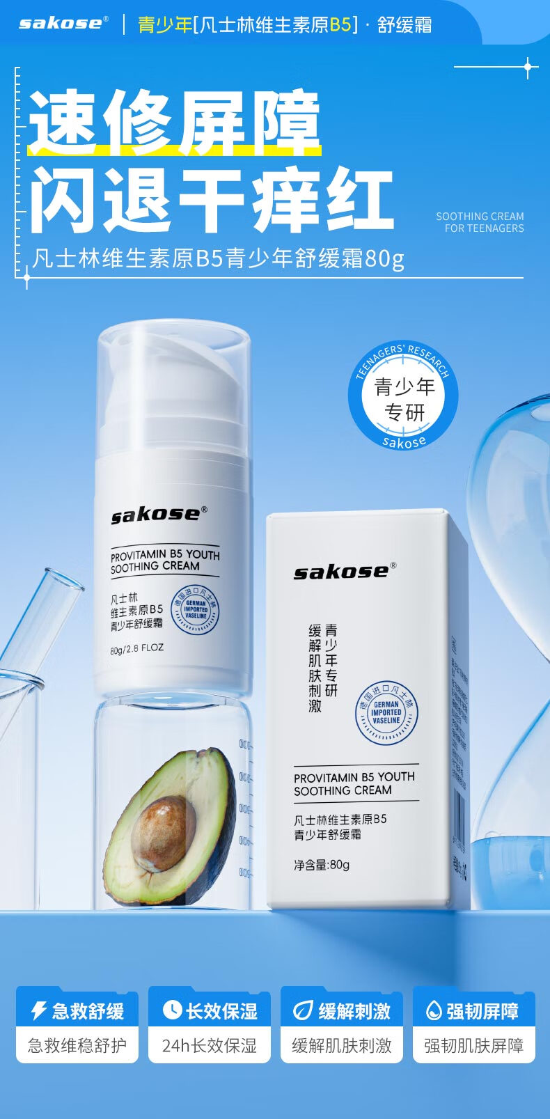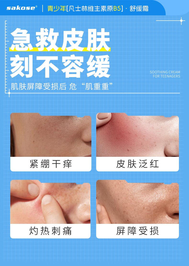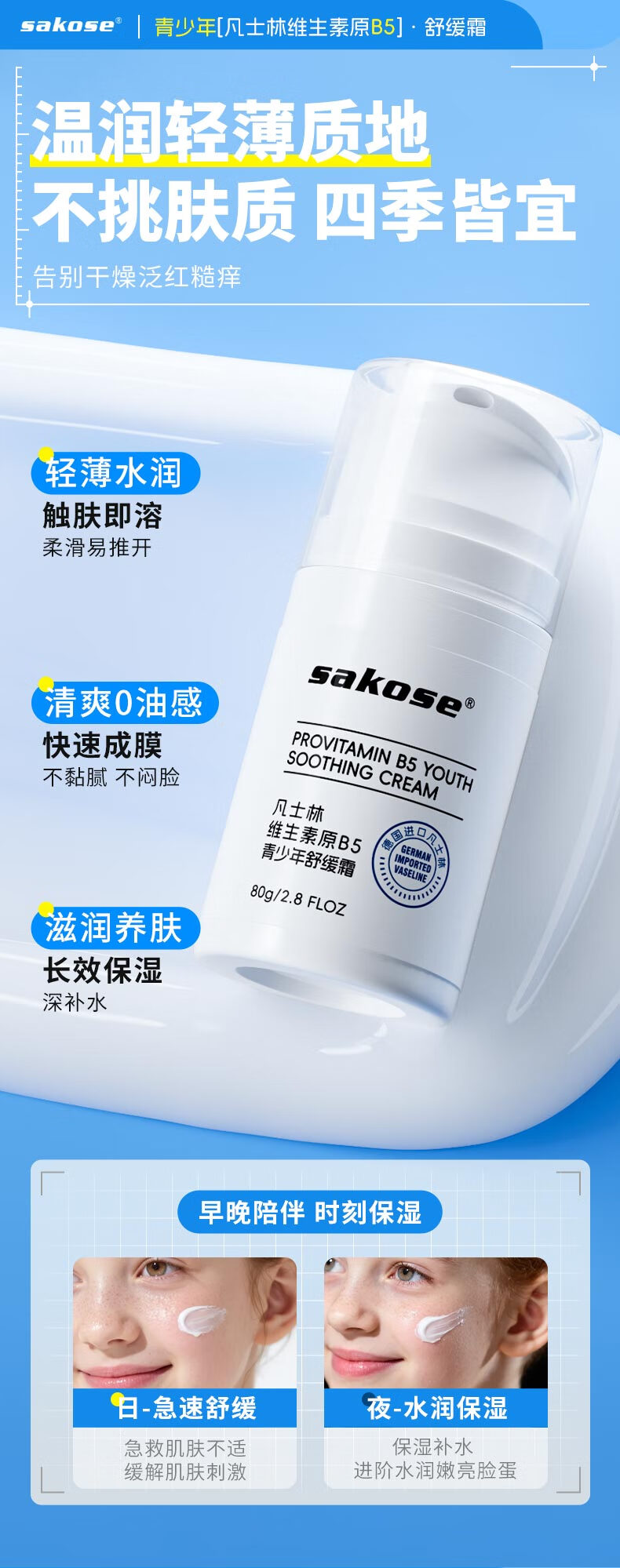 sakose凡士林维生素原B5青少年舒缓面霜80g保湿补水12-18岁男女生护肤品