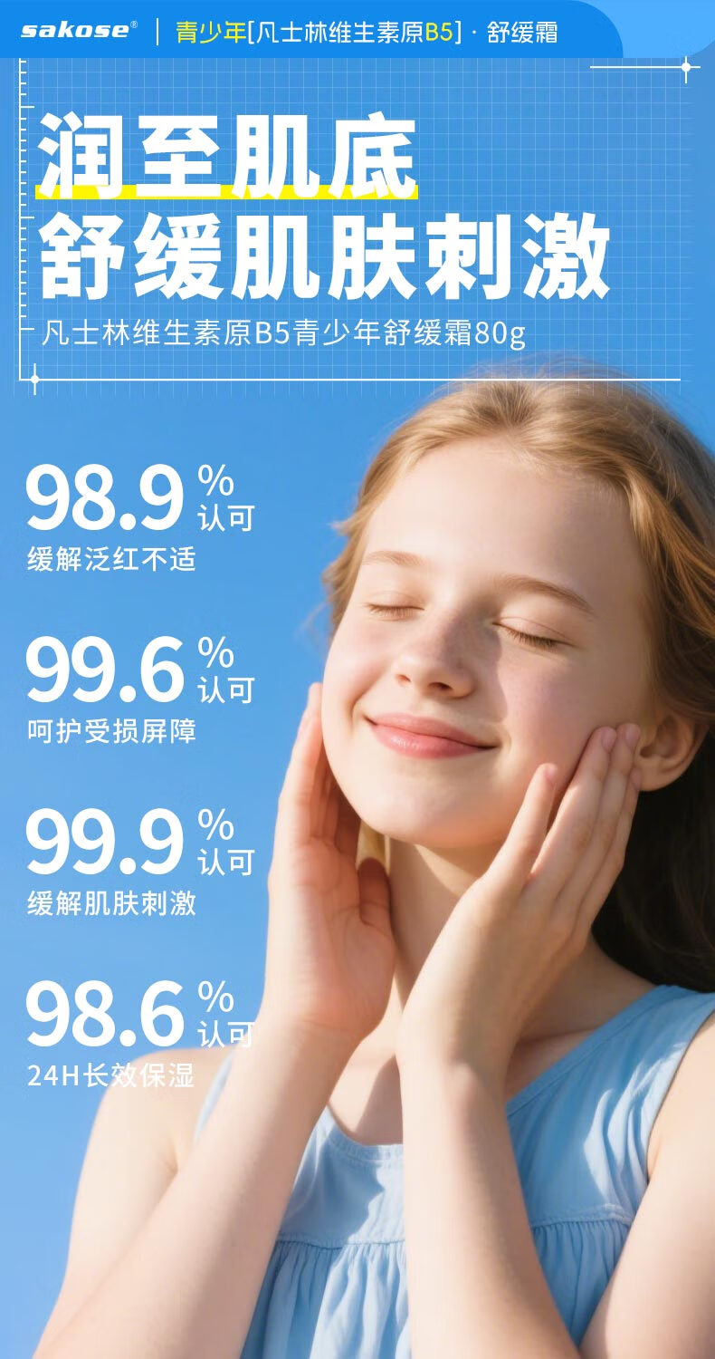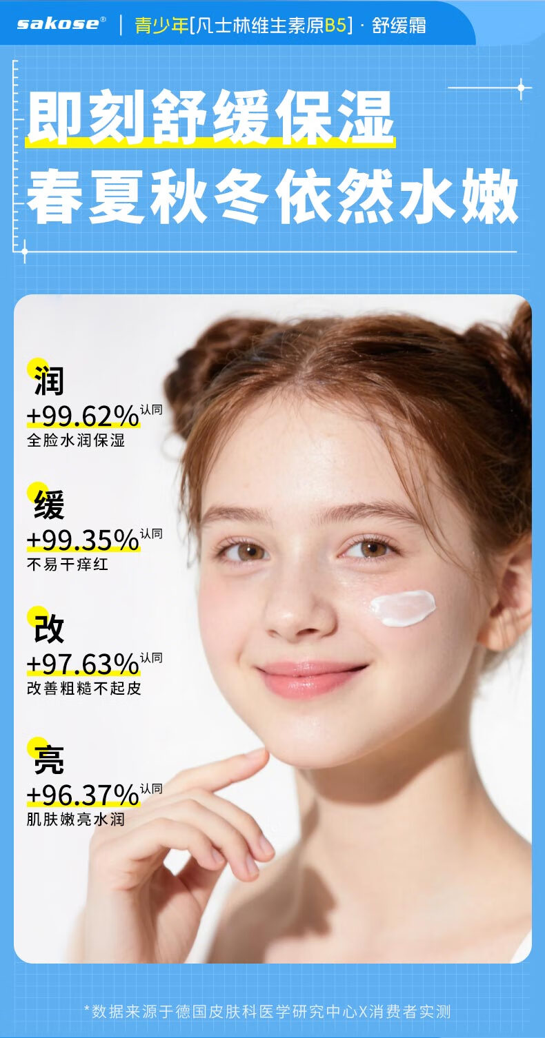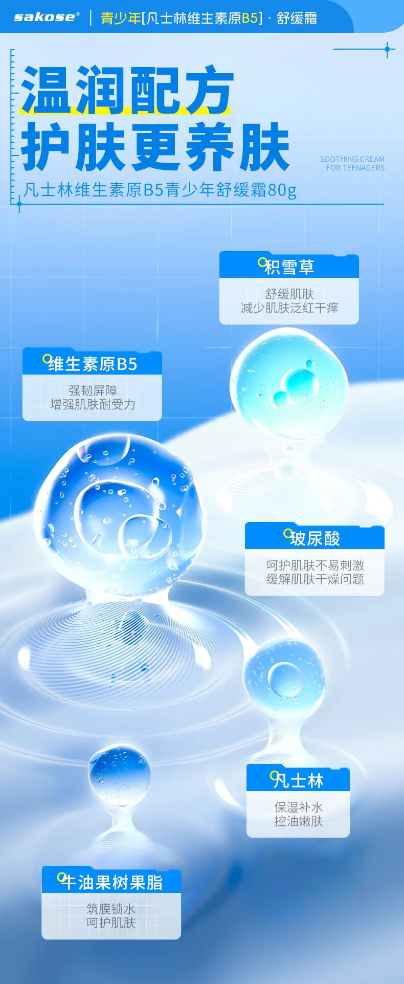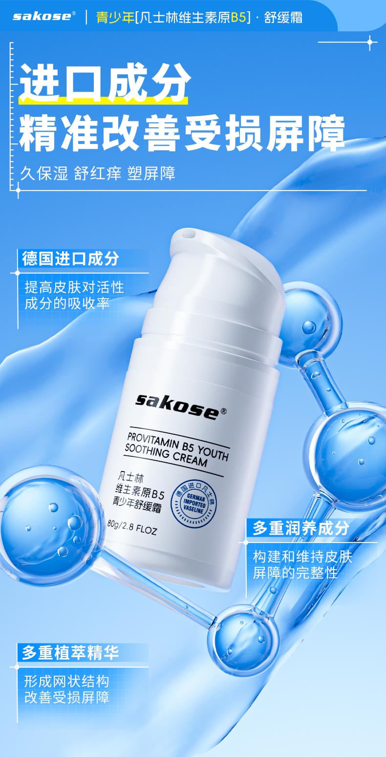sakose凡士林维生素原B5青少年舒缓面霜80g保湿补水12-18岁男女生护肤品