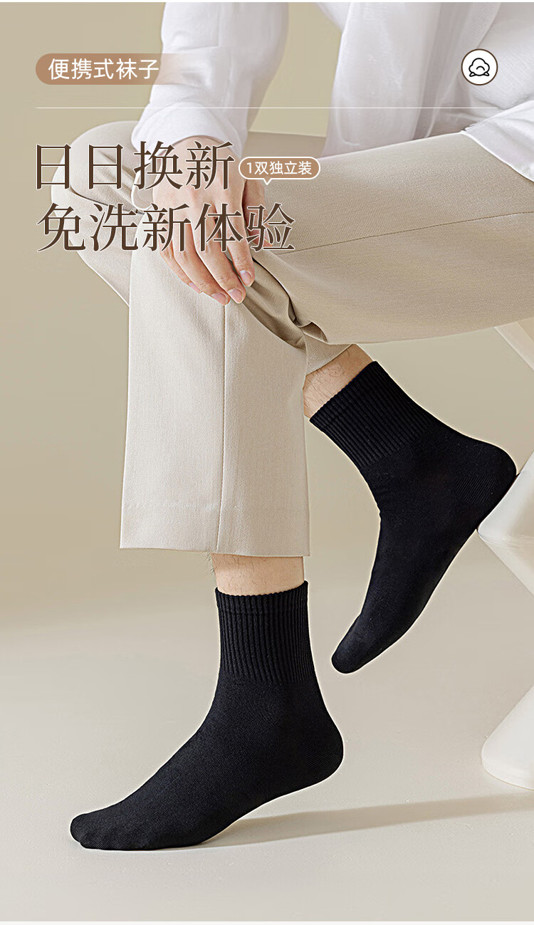 乐活旅行一次性袜子男日抛中筒棉袜男士冬季加厚男袜厚高筒长筒丢丢袜黑色
