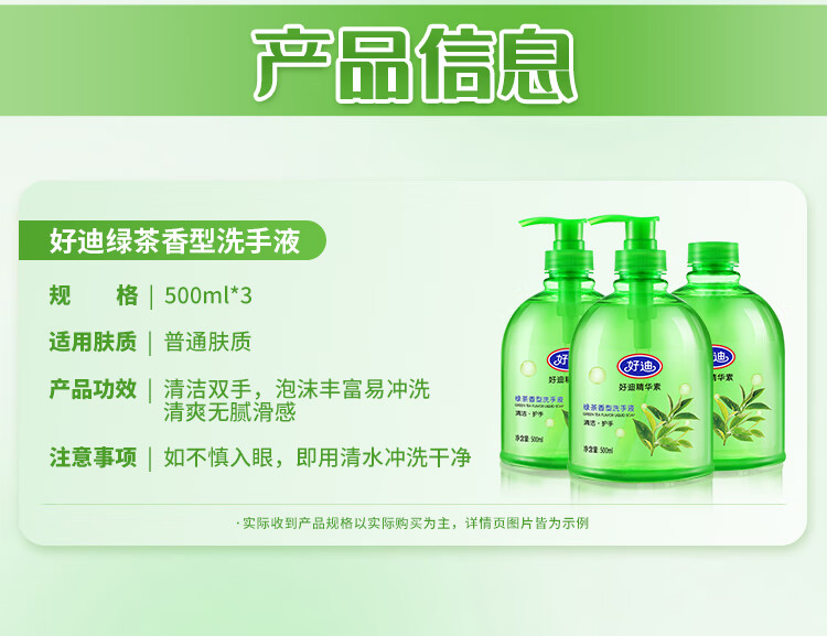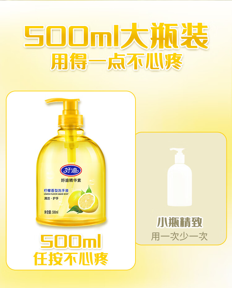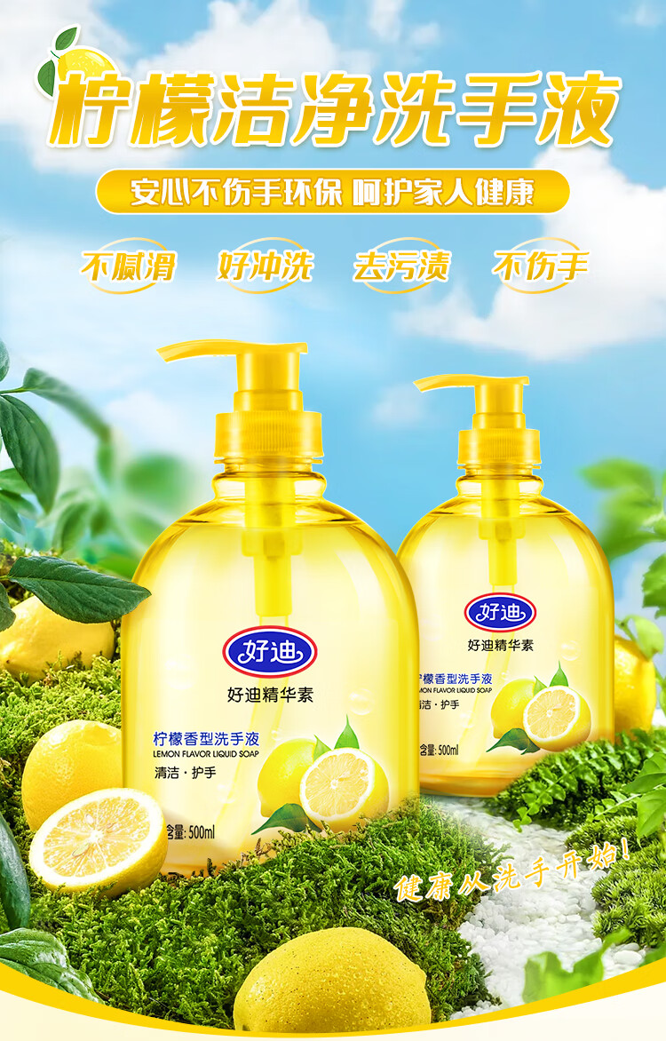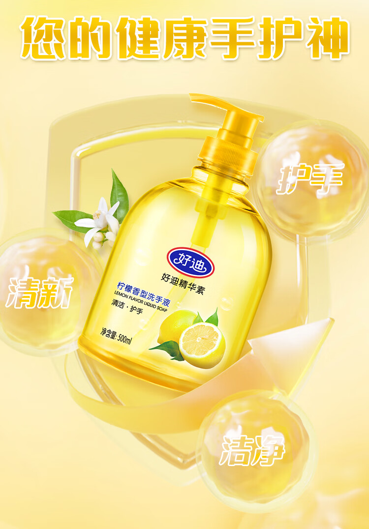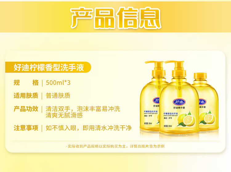 好迪洗手液 PH均衡健康滋润倍护 孕妇宝宝适用【勤洗手呵护健康】 500ml3瓶清爽柠檬香型