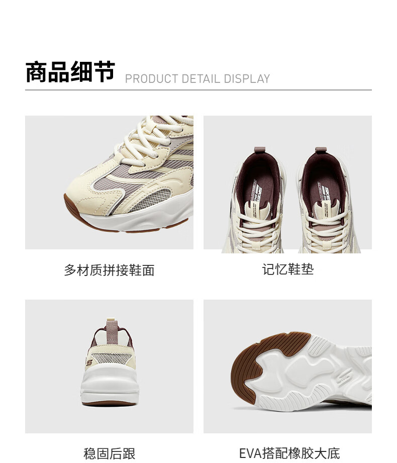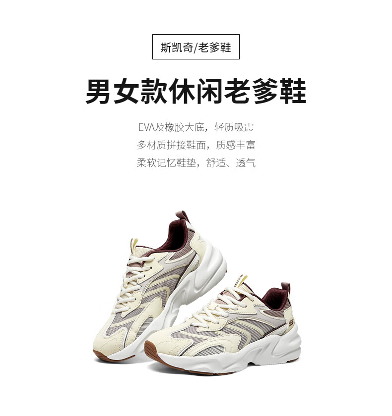 斯凯奇(Skechers)男女运动鞋老爹鞋轻质吸震舒适熊猫鞋117369