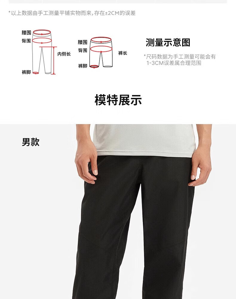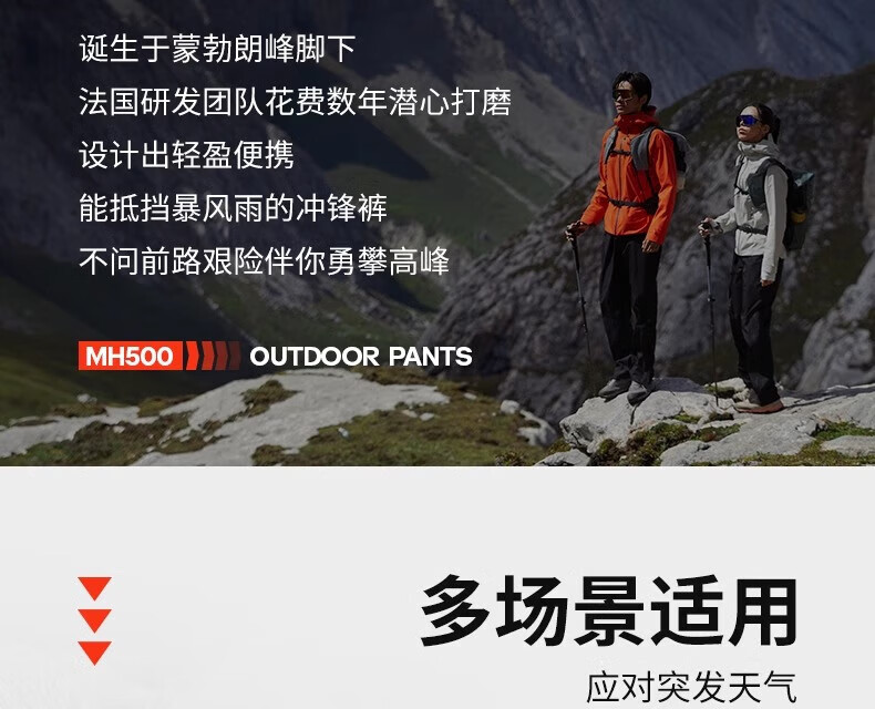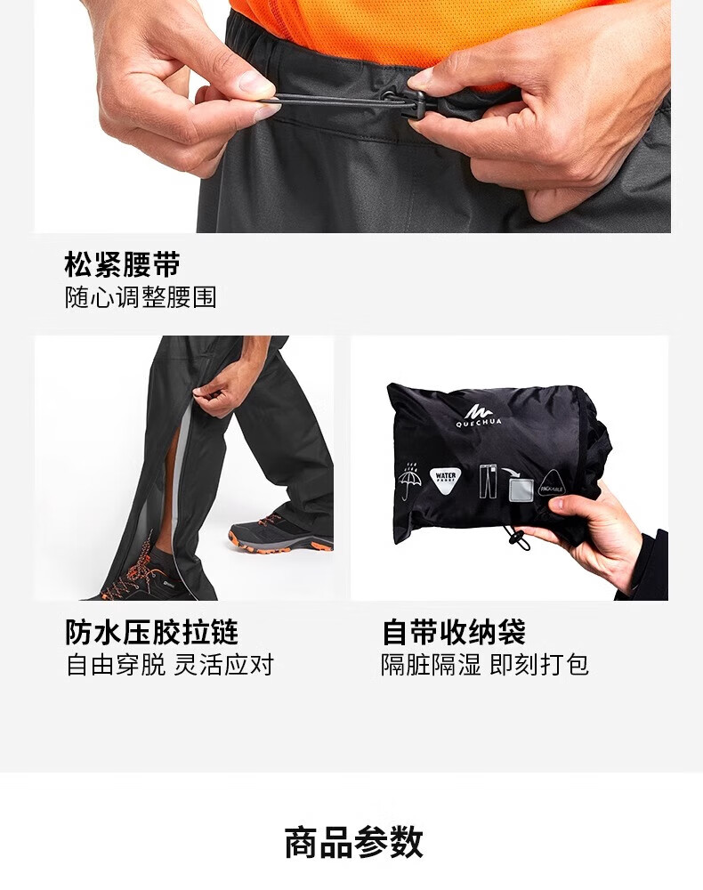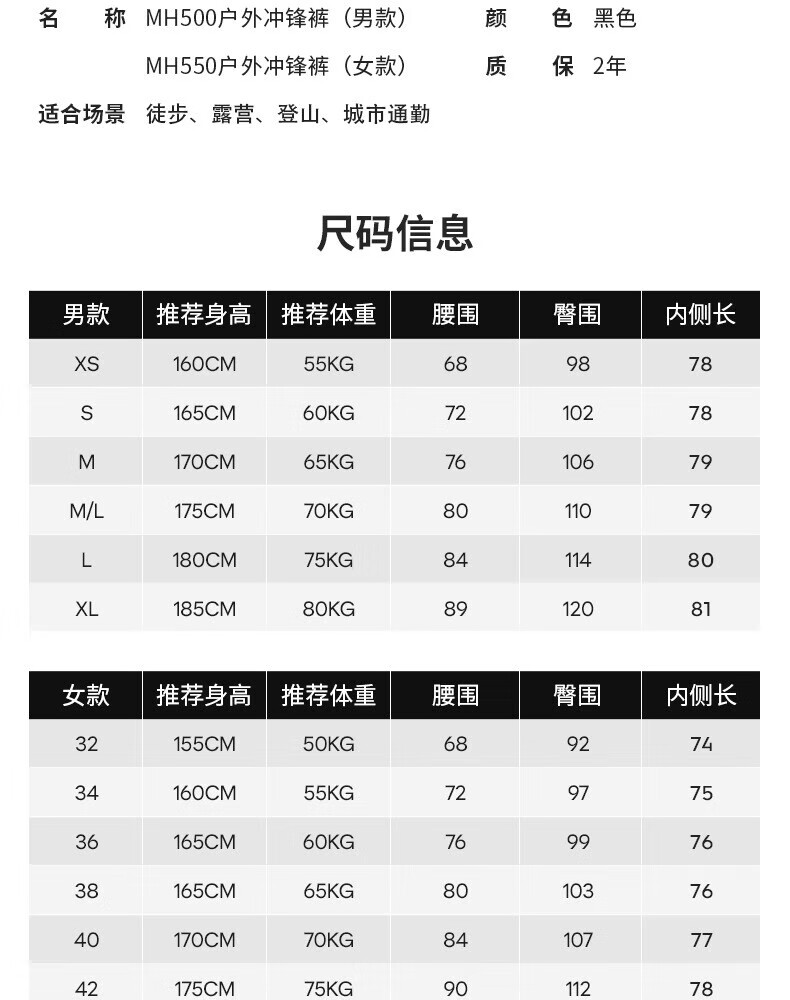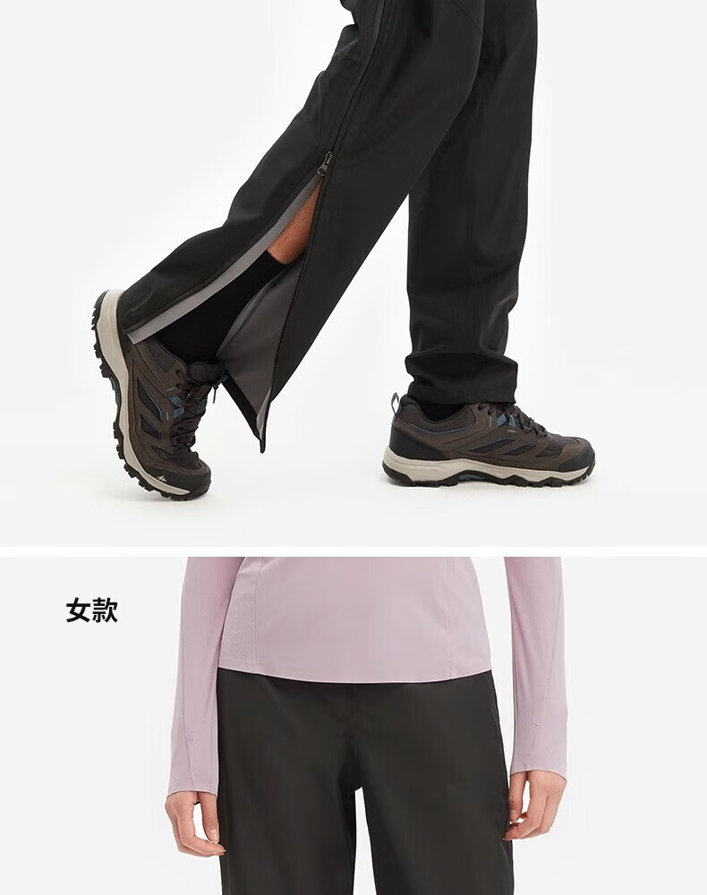 迪卡侬(DECATHLON)冲锋裤男女户外防风防水长裤雨裤宽松男裤裤子登山裤徒步裤 MH500 女款-黑色 36 /L28