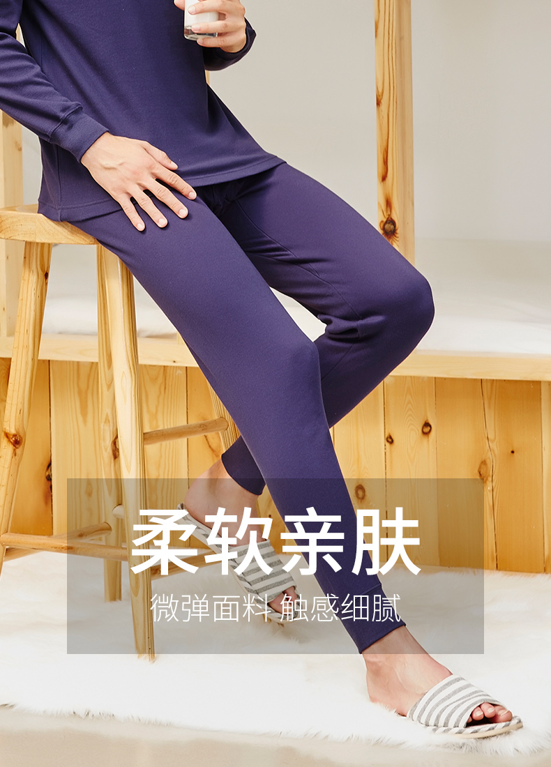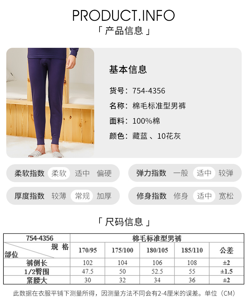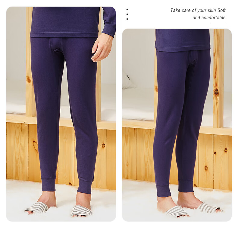 铜牛男士棉毛秋裤宽松线裤睡裤 藏蓝【5°-15°】 185/110【170-190斤】