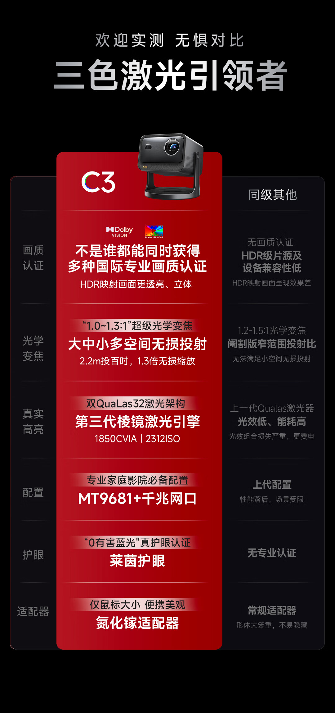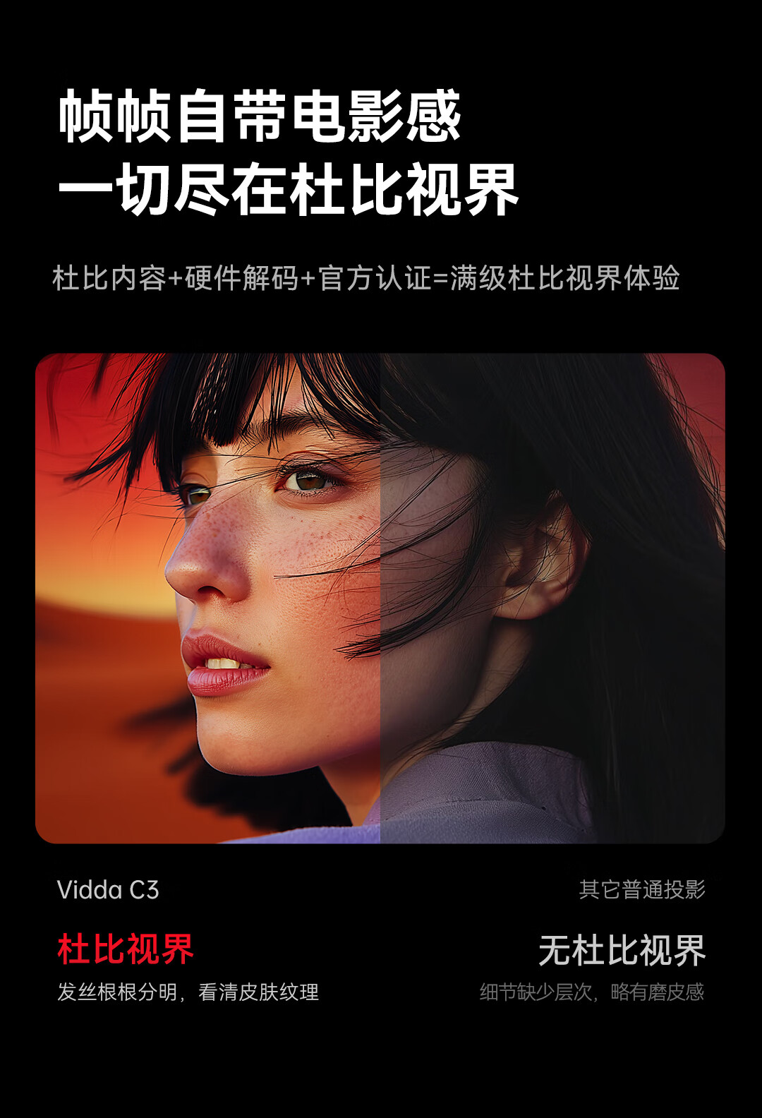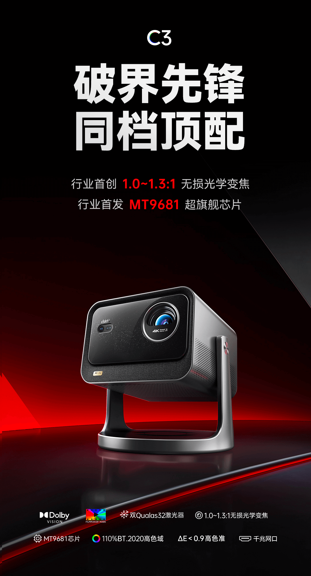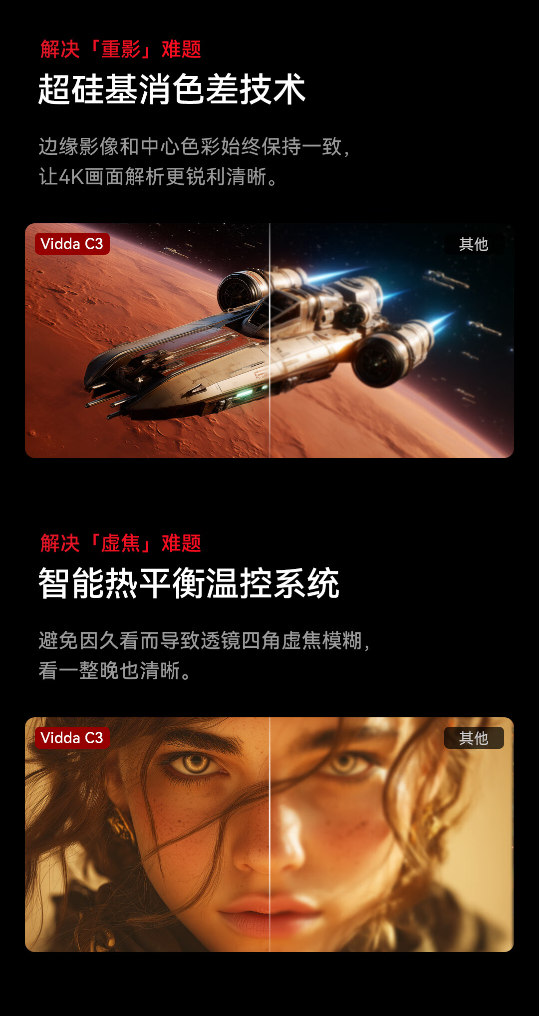 Vidda C3 海信4K超高清三色激光投影仪家用投影机 无损光学变焦+MT9681高阶芯片 智能家庭影院国家补贴