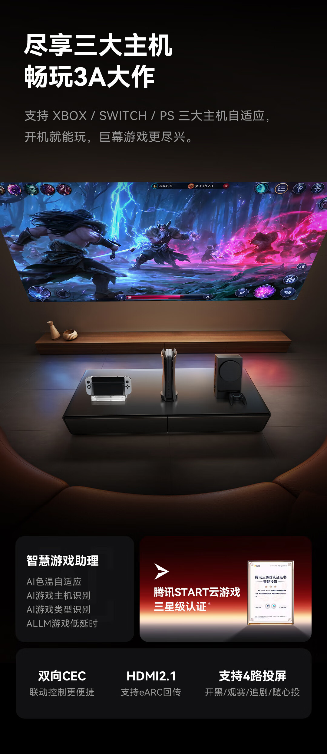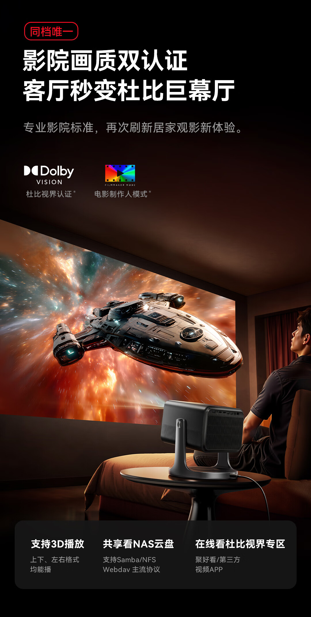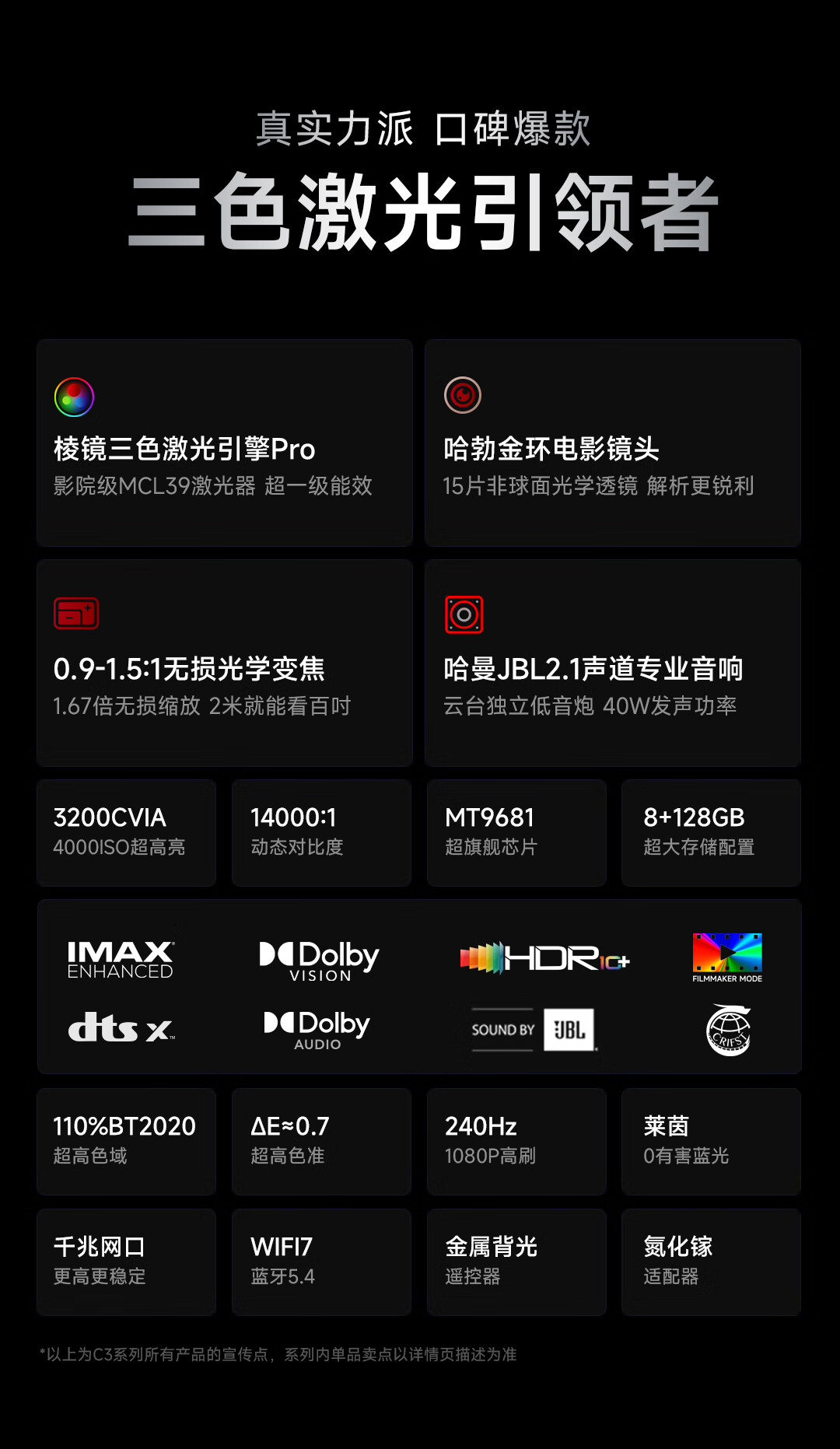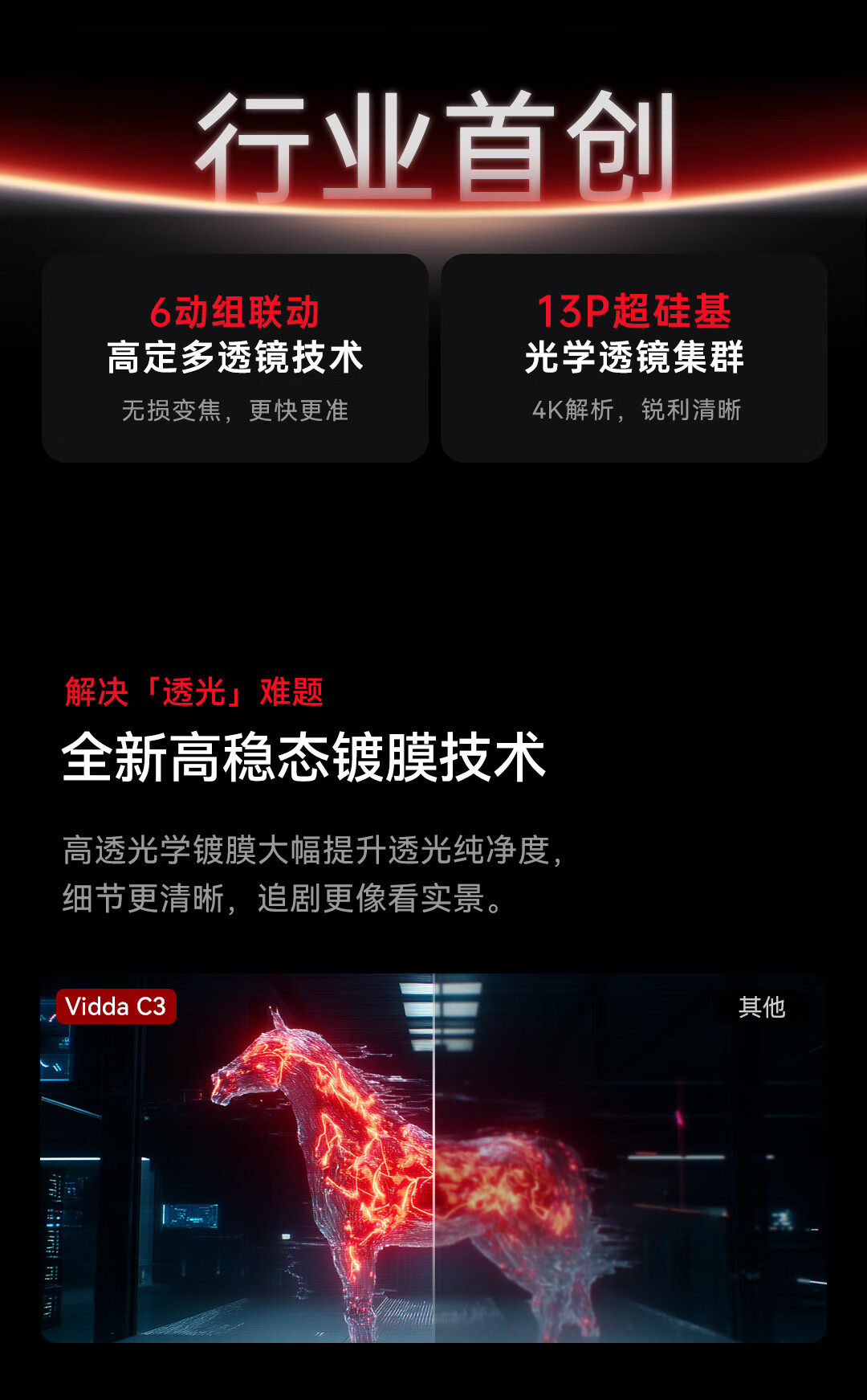 Vidda C3 海信4K超高清三色激光投影仪家用投影机 无损光学变焦+MT9681高阶芯片 智能家庭影院国家补贴