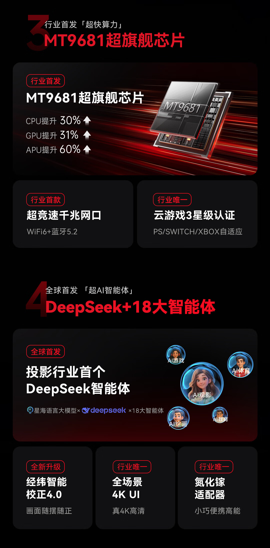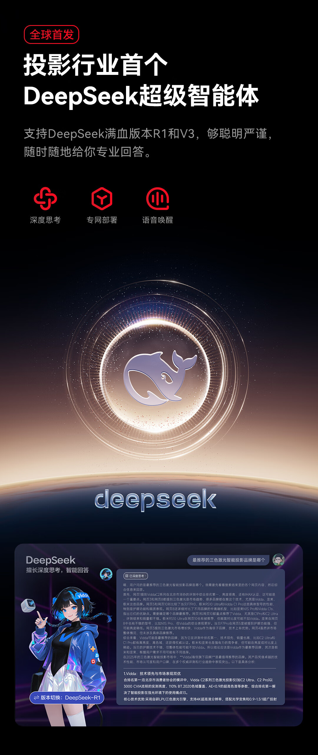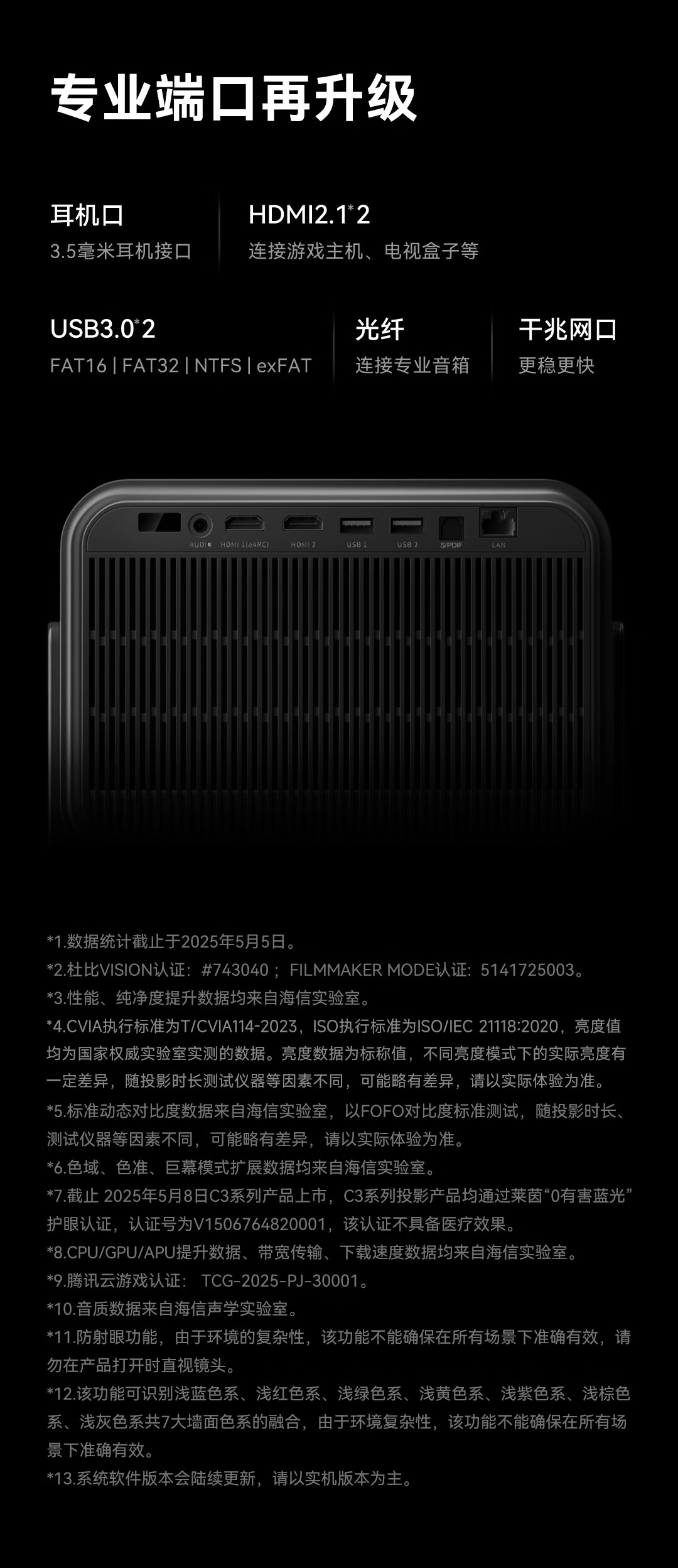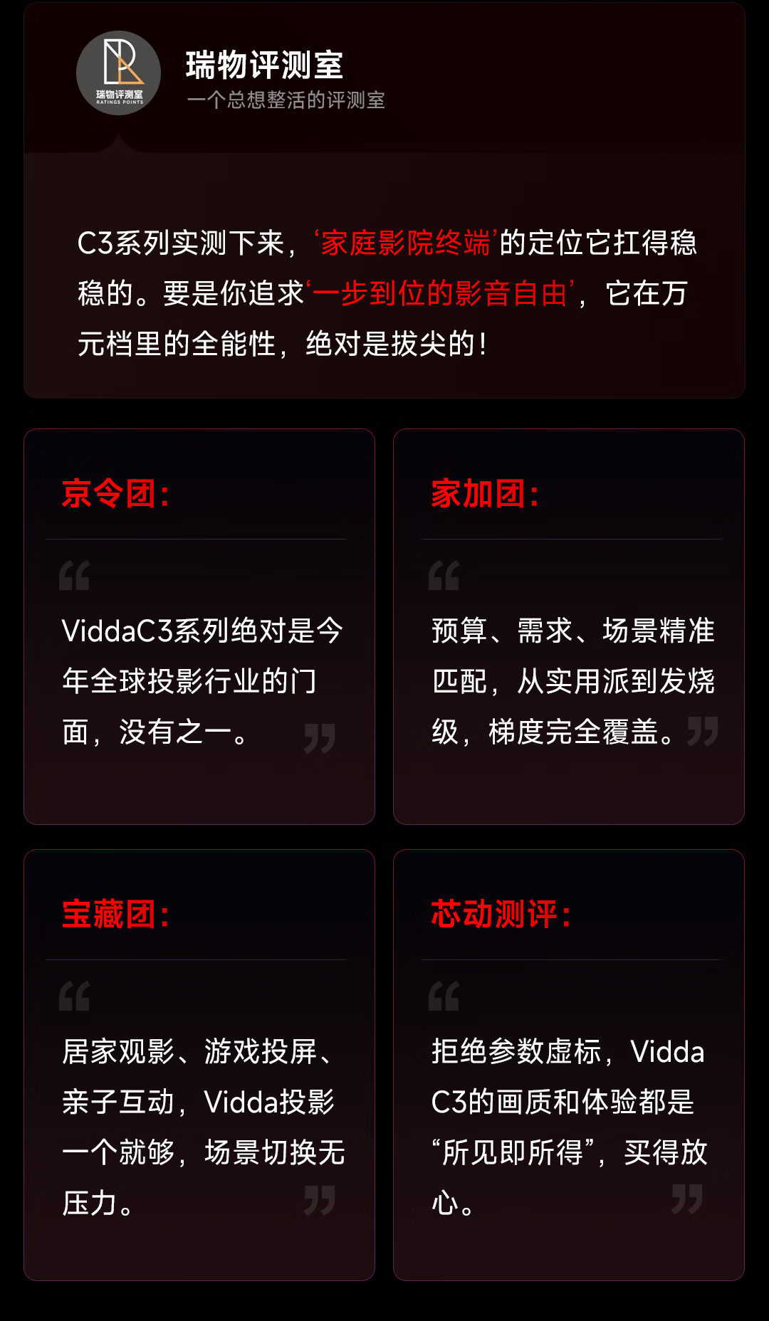 Vidda C3 海信4K超高清三色激光投影仪家用投影机 无损光学变焦+MT9681高阶芯片 智能家庭影院国家补贴