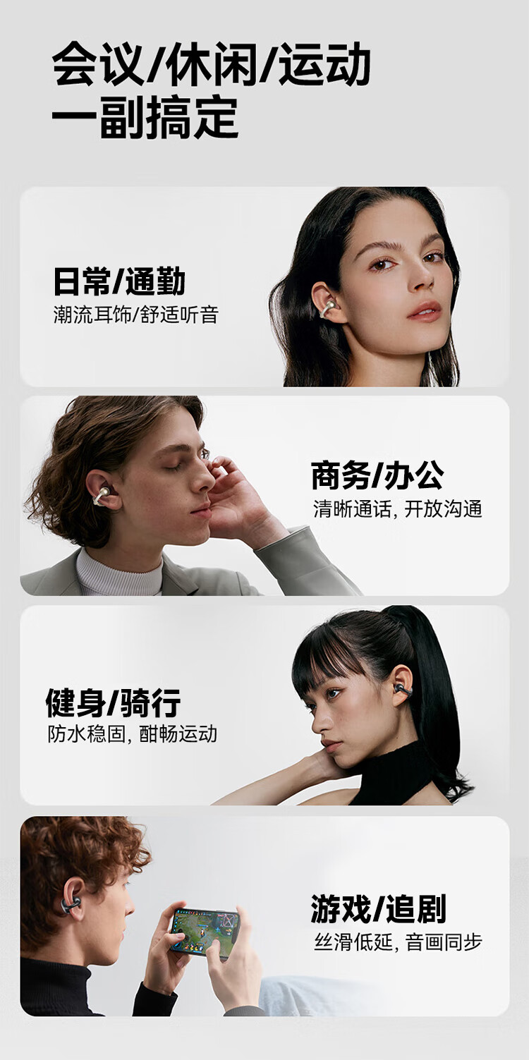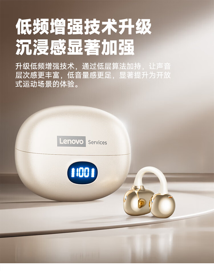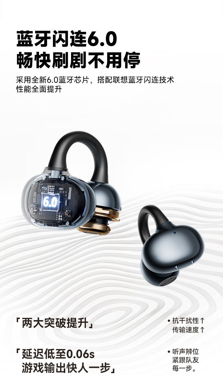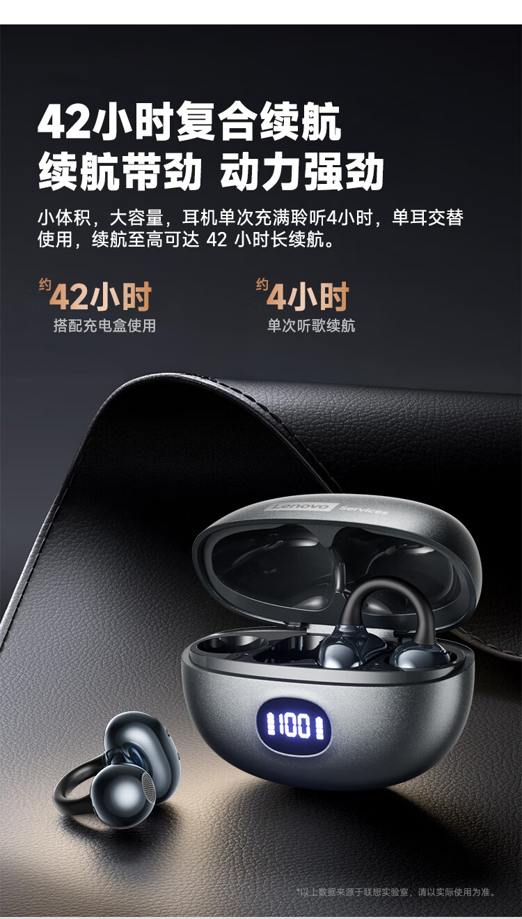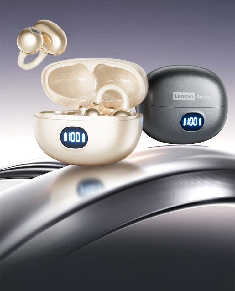 联想(Lenovo)【2025最新款|旗舰顶配】无线蓝牙耳机耳夹式骨传导概念开放挂耳运动降噪游戏超长续航强音质 银色