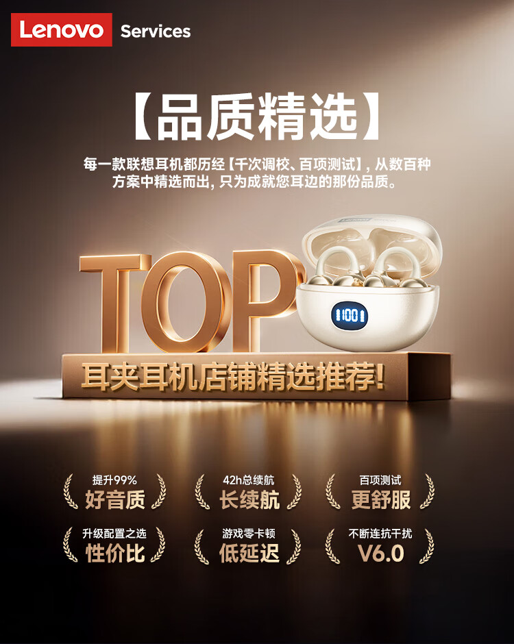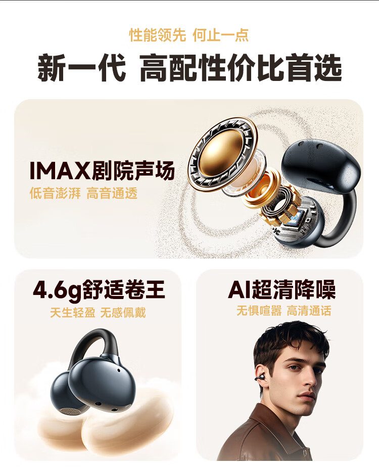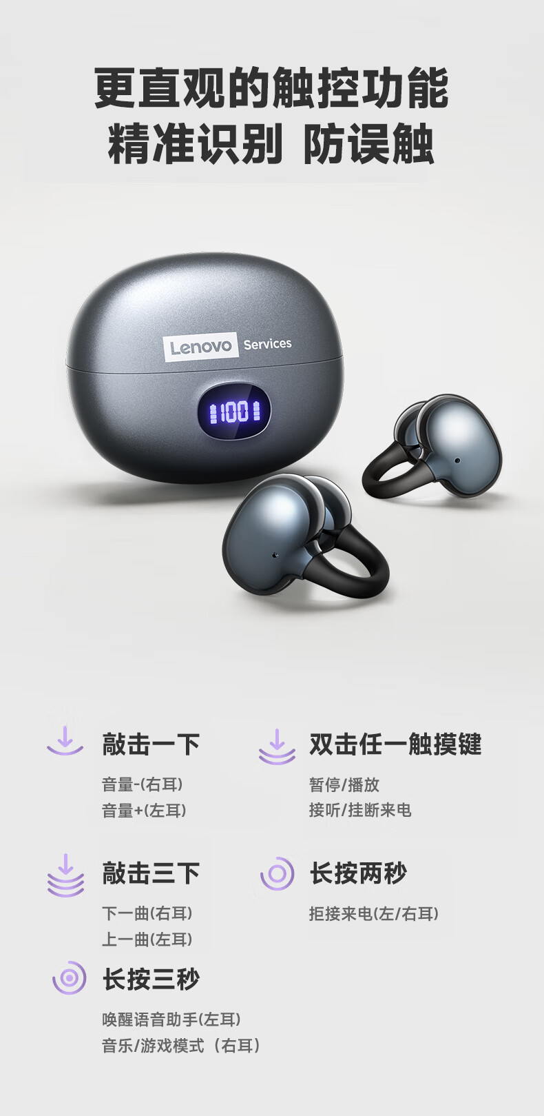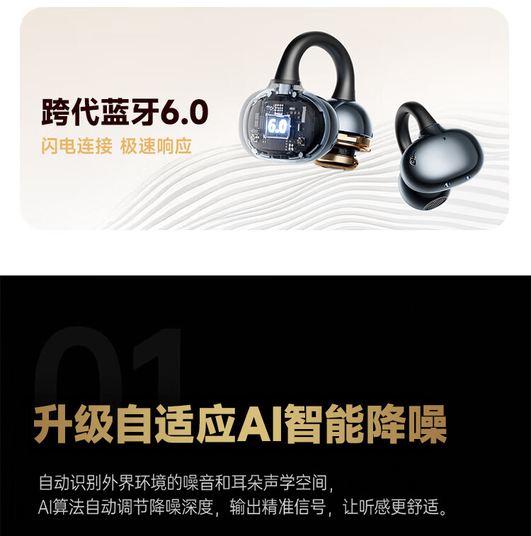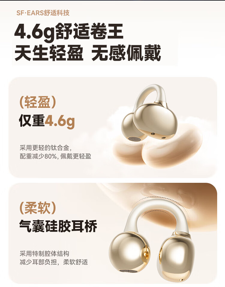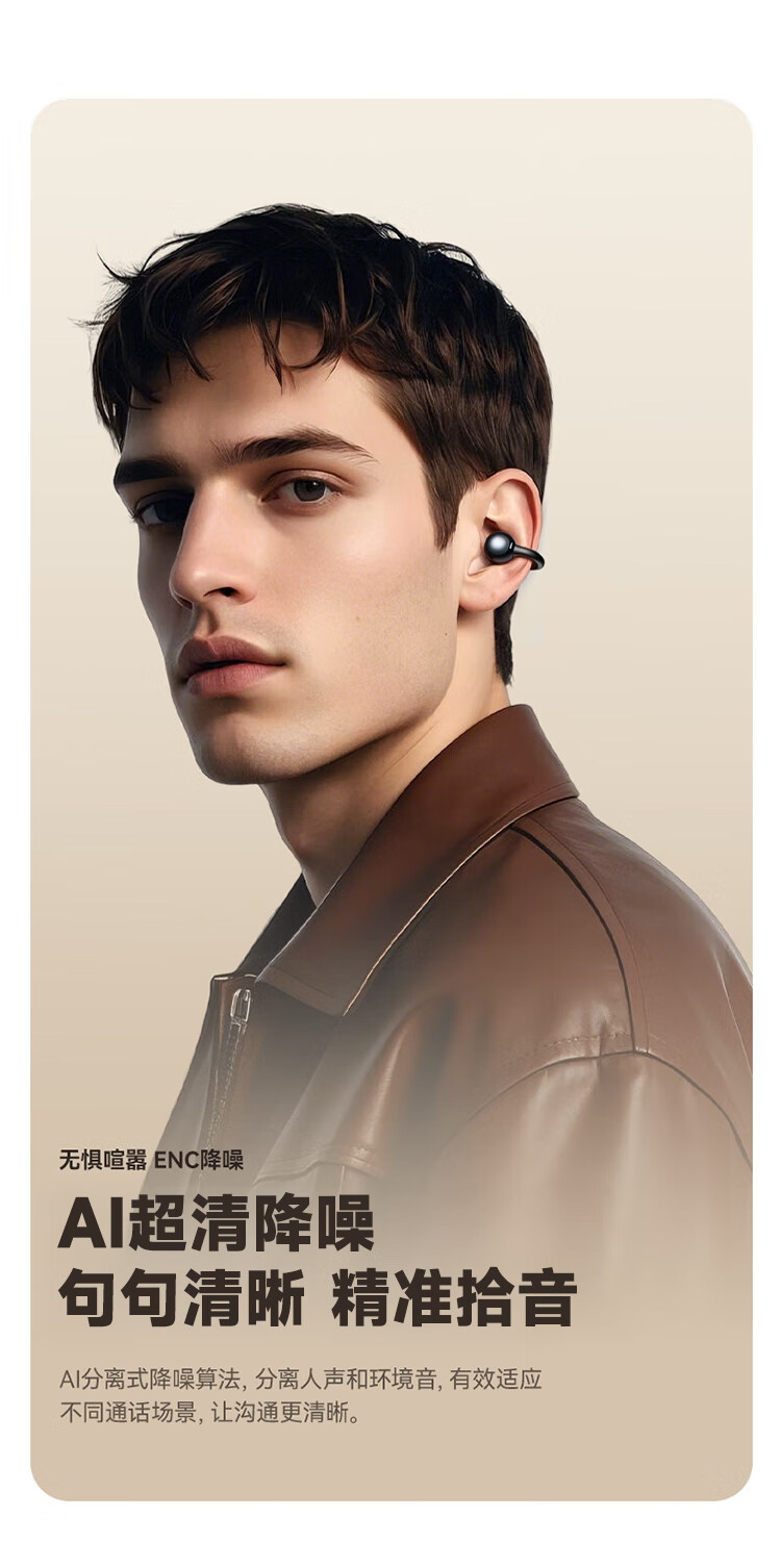 联想(Lenovo)【2025最新款|旗舰顶配】无线蓝牙耳机耳夹式骨传导概念开放挂耳运动降噪游戏超长续航强音质 银色