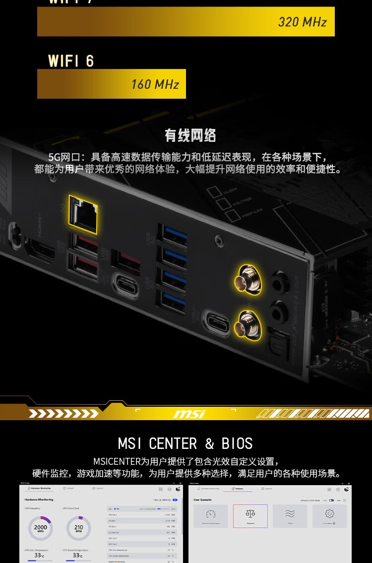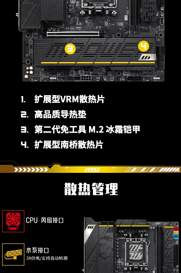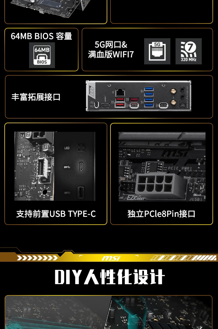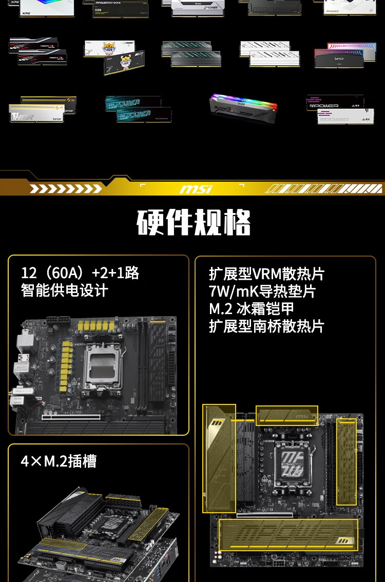 微星(MSI)B850MPOWER 超频主板 支持CPU AMD 9700X/9800X3D/9950X3D/9600X(AMD B850/AM5接口)