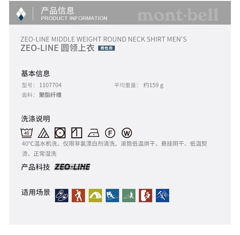 mont·bell 功能内衣男款中厚基础层秋冬圆领舒适保暖内搭贴身上衣 1107704 DGN深绿色 M