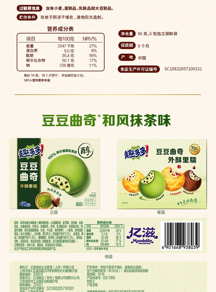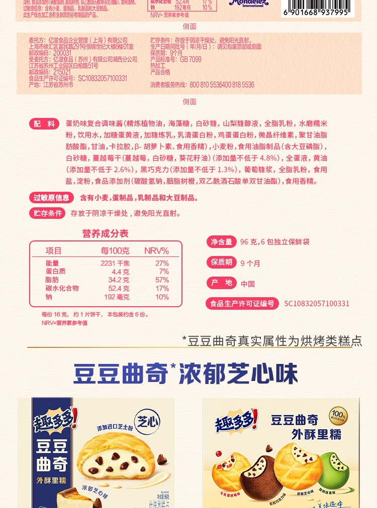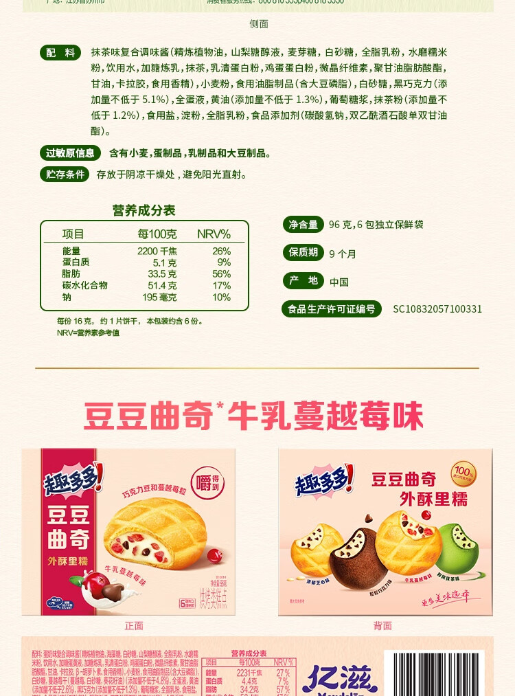 趣多多豆豆曲奇饼干 粒粒巧克力味96g 休闲零食 早餐下午茶