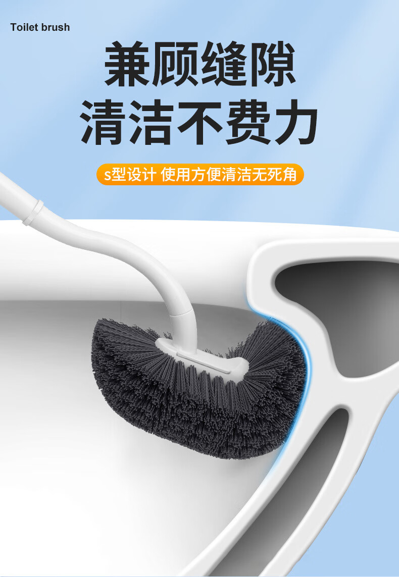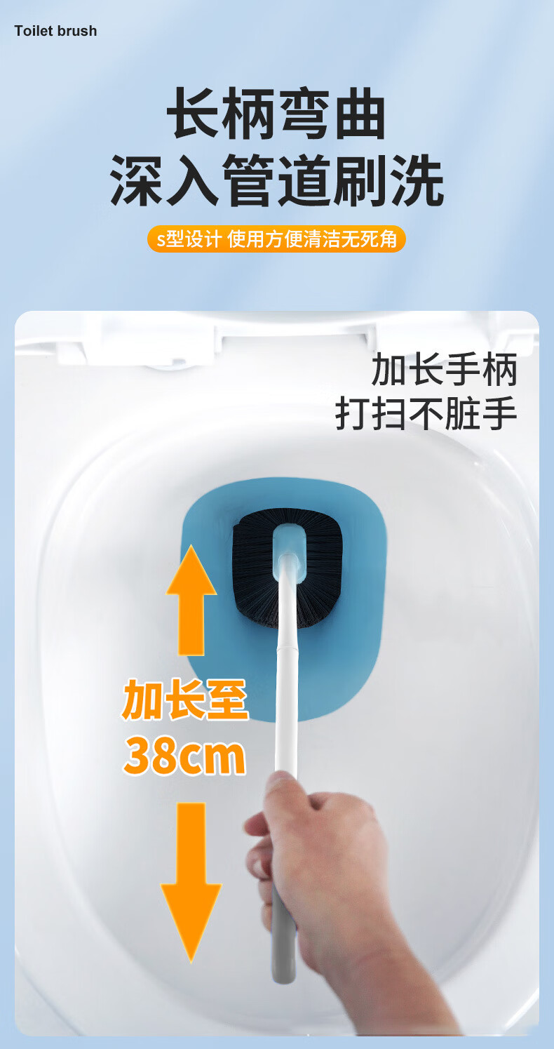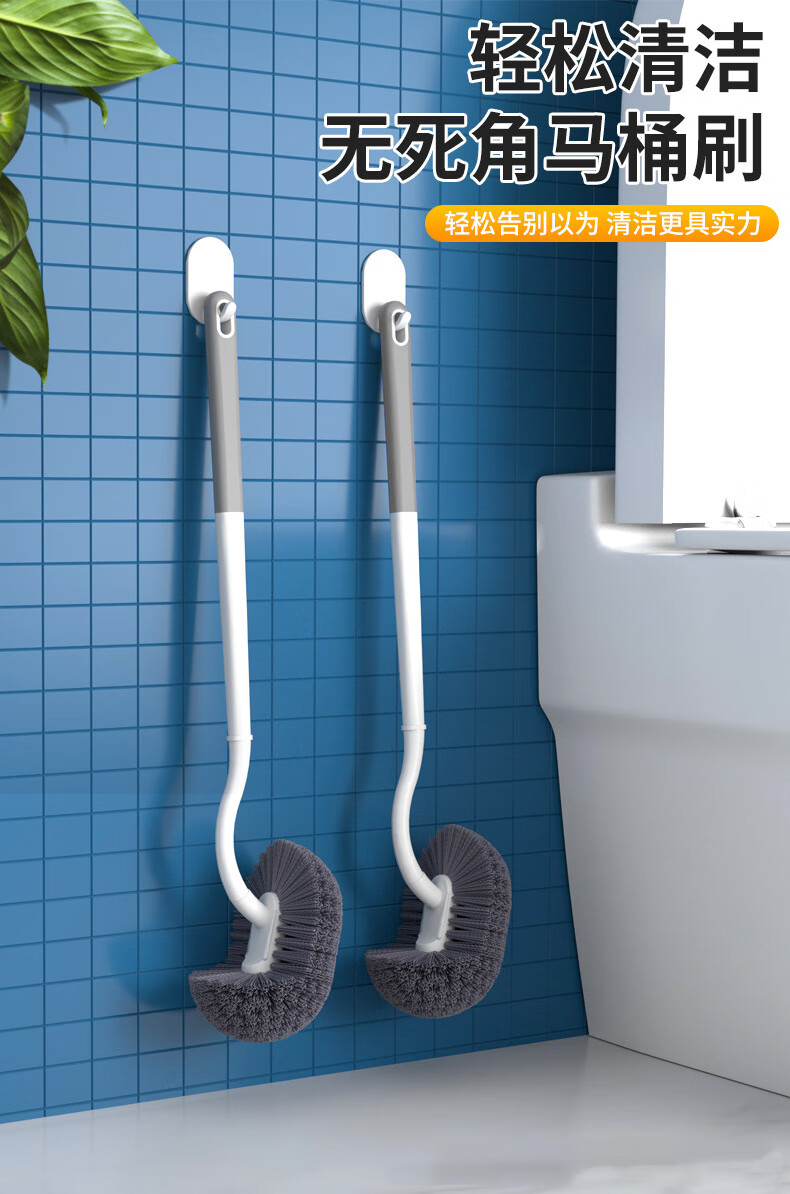洁比世马桶刷子2个装卫生间清洁刷S型弯头壁挂加长手柄无死角洗厕所神器