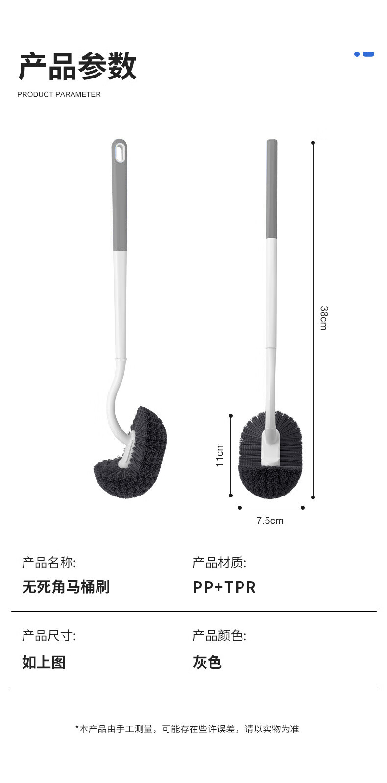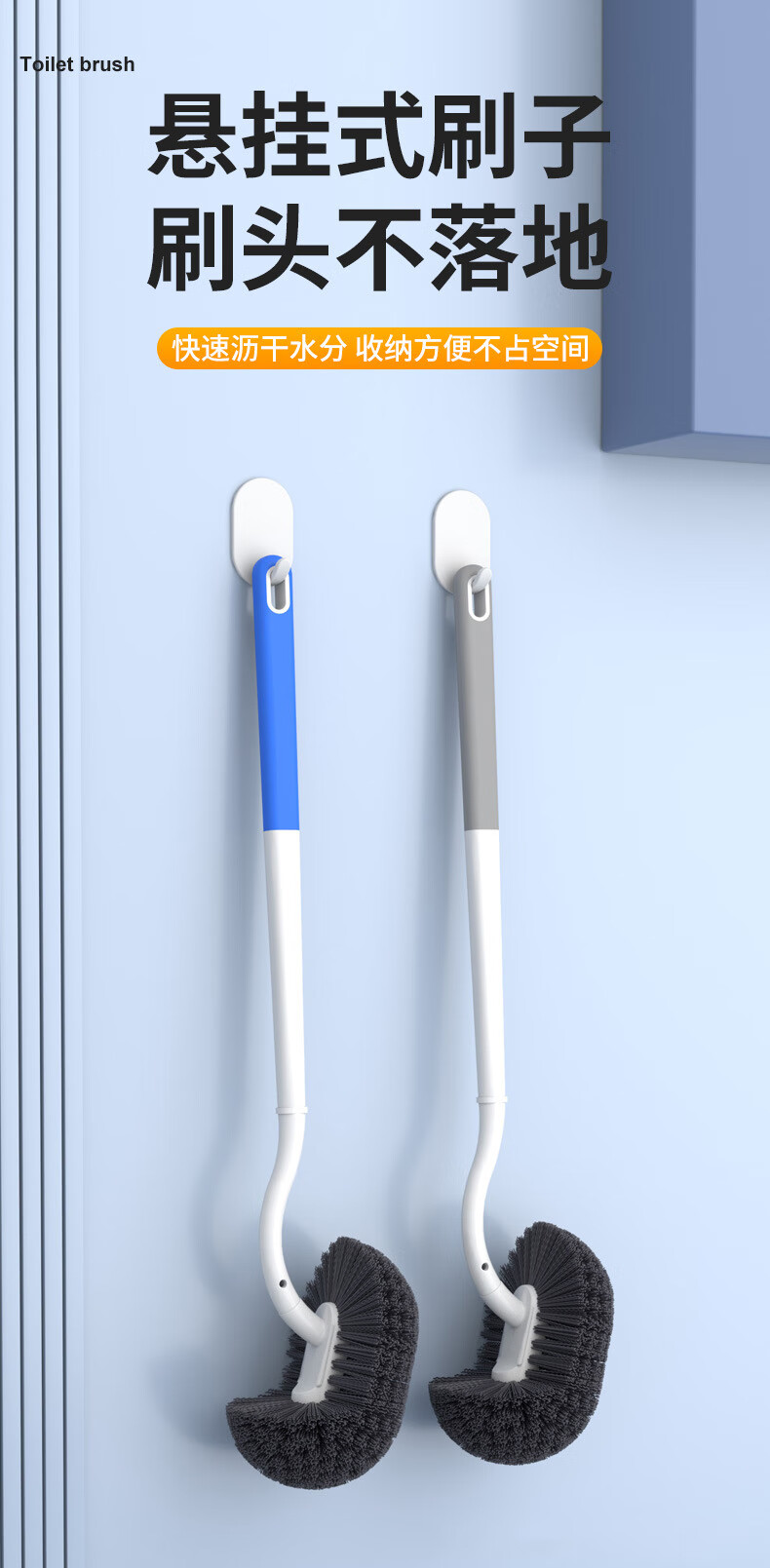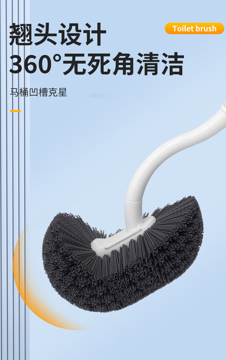 洁比世马桶刷子2个装卫生间清洁刷S型弯头壁挂加长手柄无死角洗厕所神器