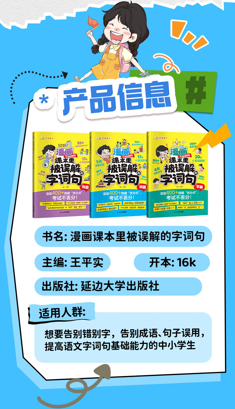 2025优翼漫画课本里被误解的字词句全3册小学生易错字词句专项训练小学通用错别字词句大全一二三四五六年级说文解字病句修改纠正示范 漫画课本里被误解的字词句【全三册】