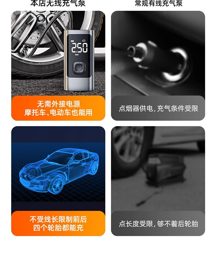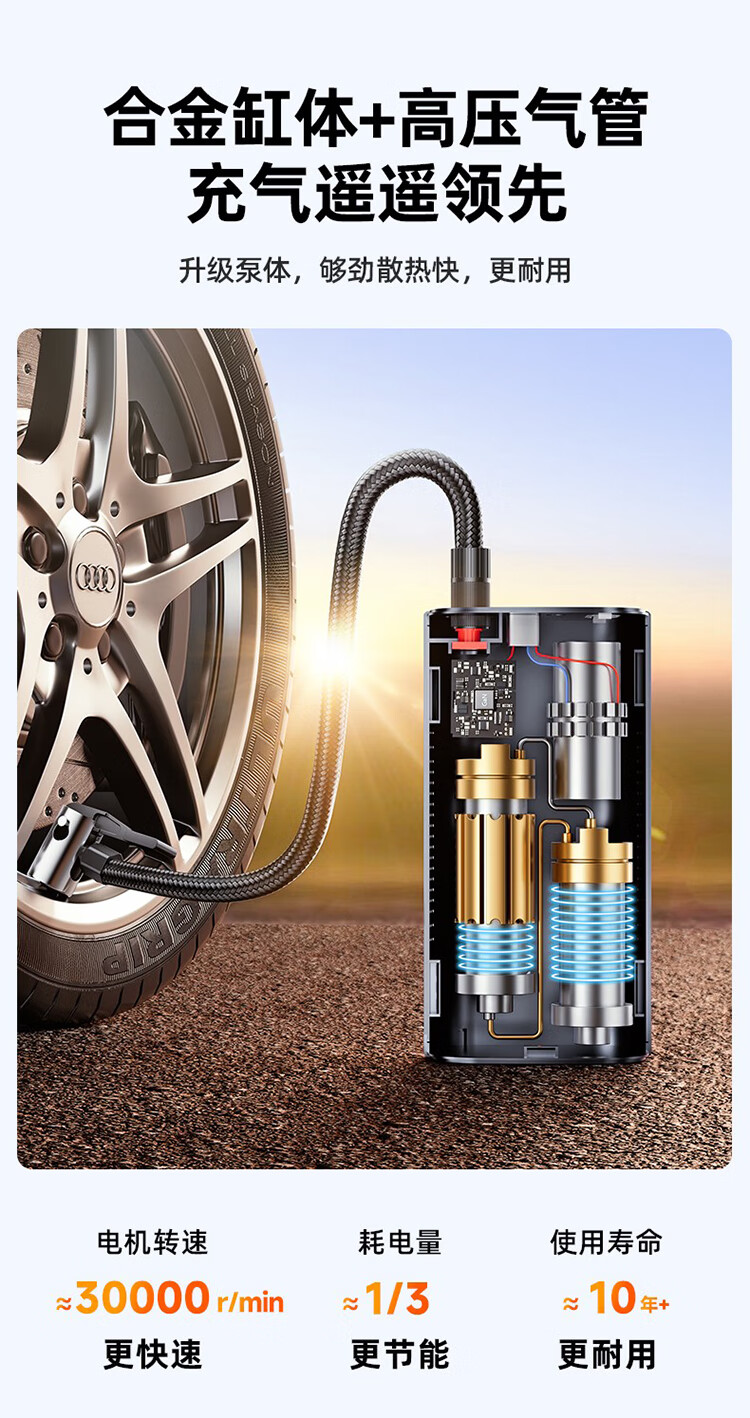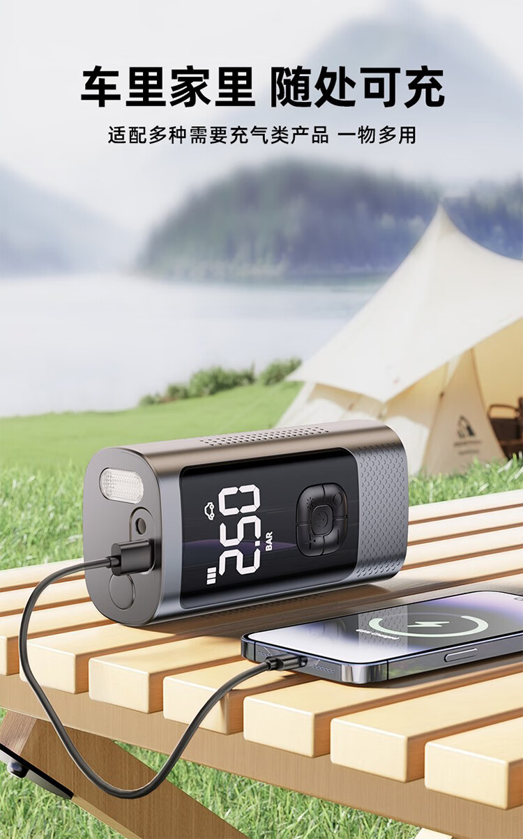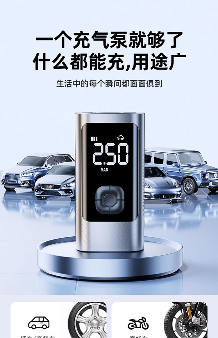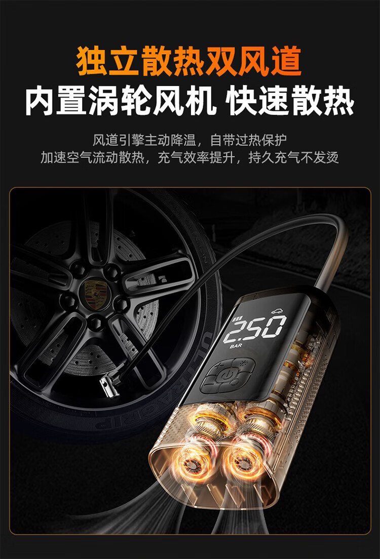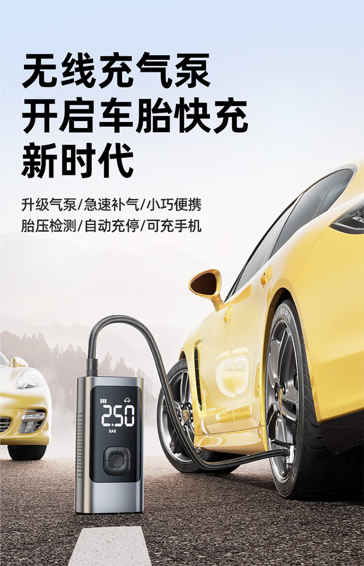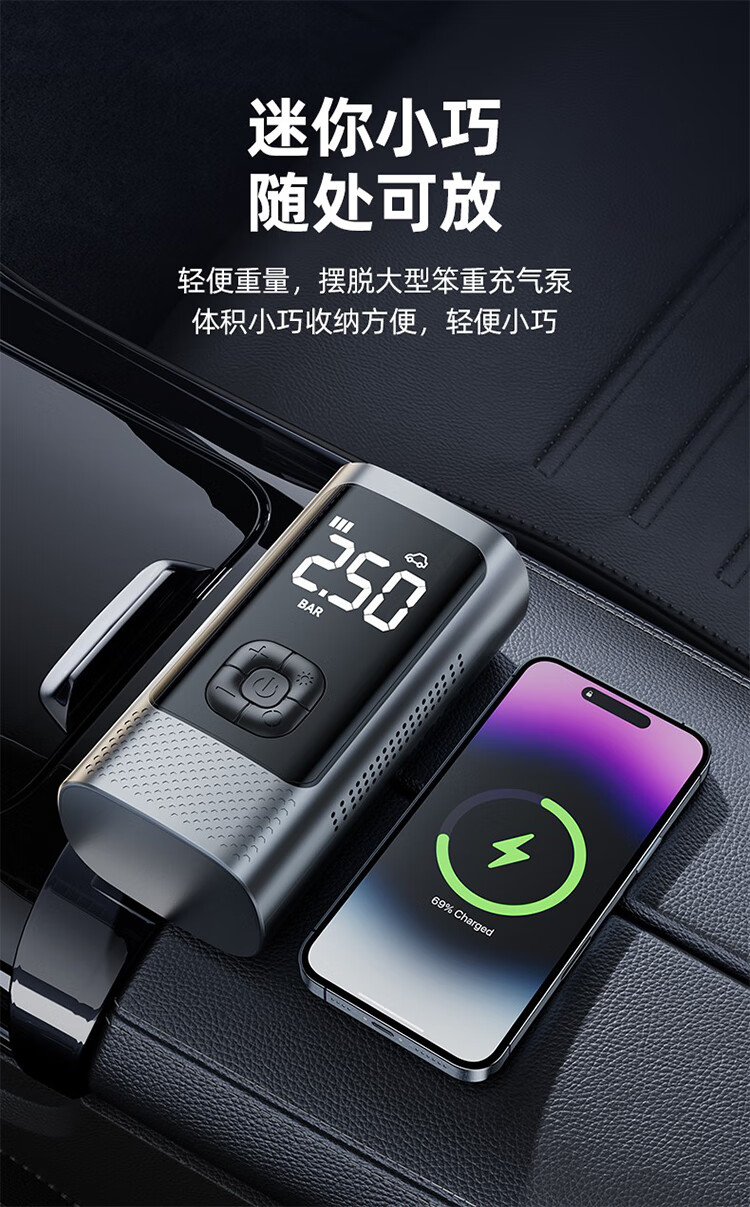 筏芯德国车载无线充气泵汽车用便携式打气泵电动轿车轮胎高压打气充气 【德系无线款】双聚锂电9999999泵驱动力+氮气快充