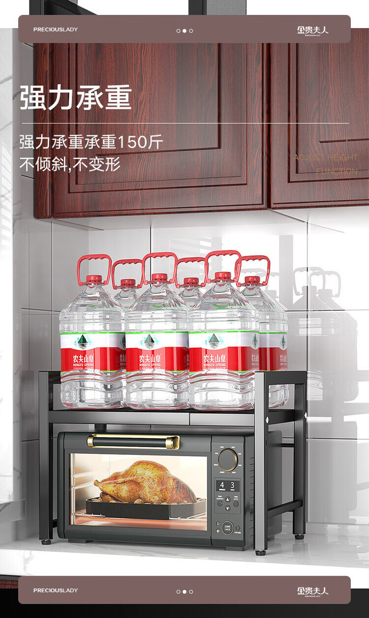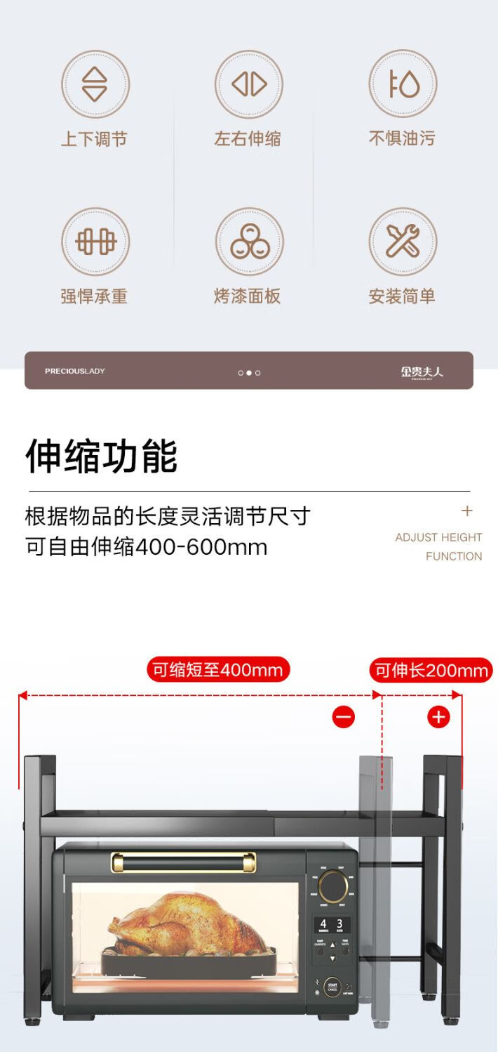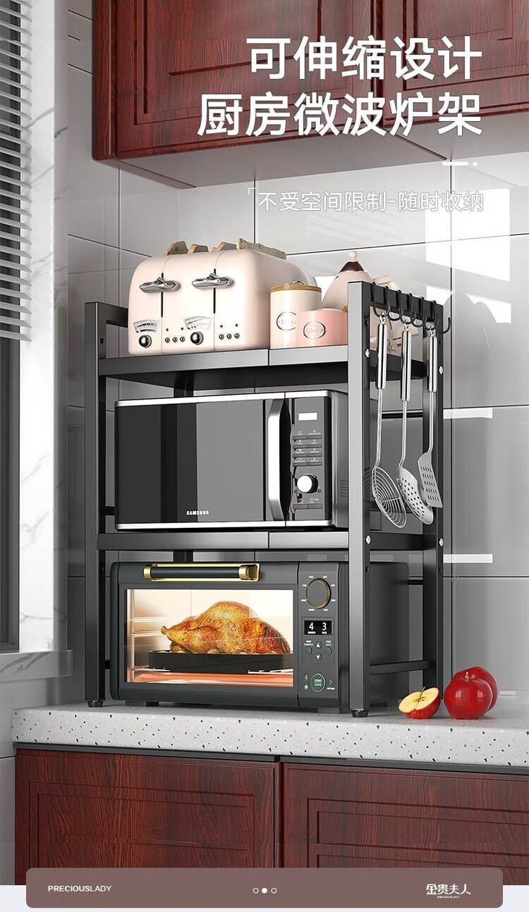 简漾可伸缩厨房置物架微波炉出租屋架子家用桌面台面多层收纳微波炉架 d32黑1层50A套餐