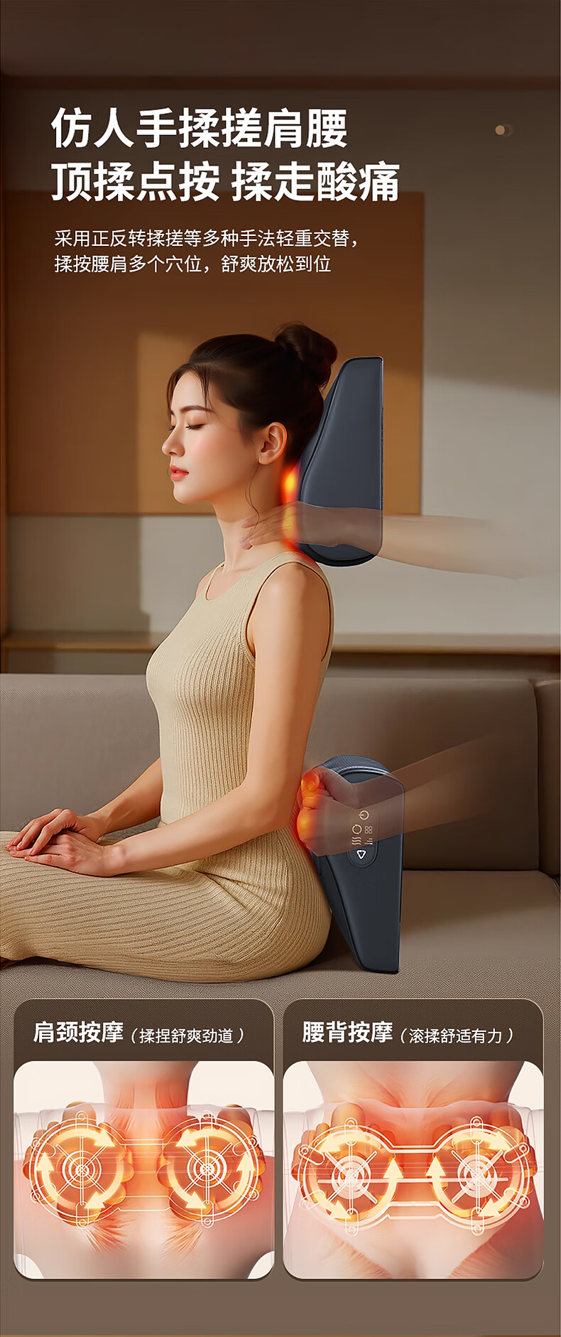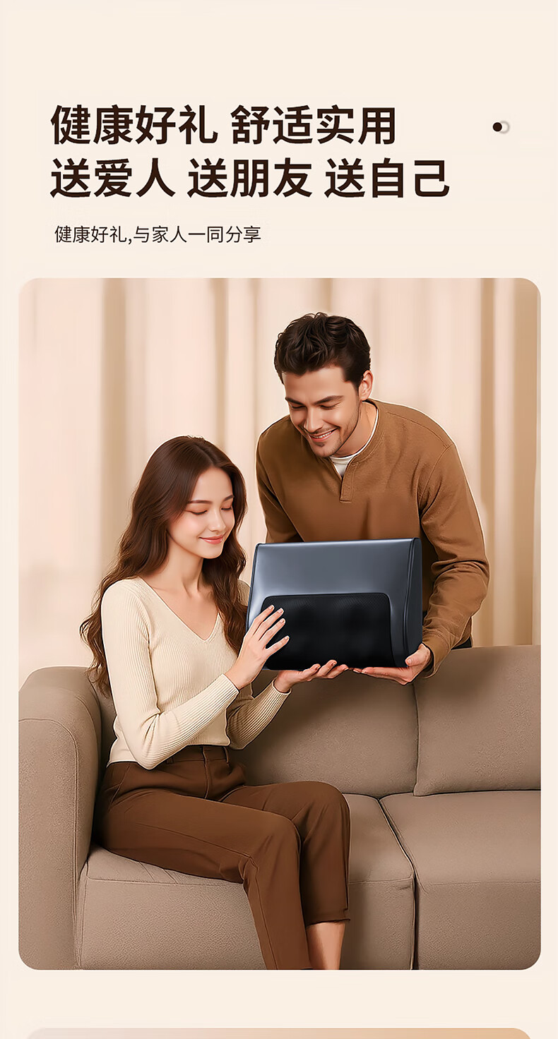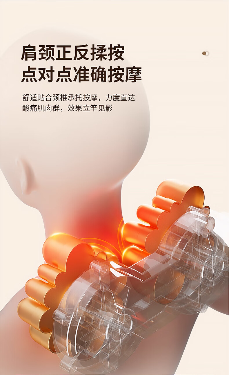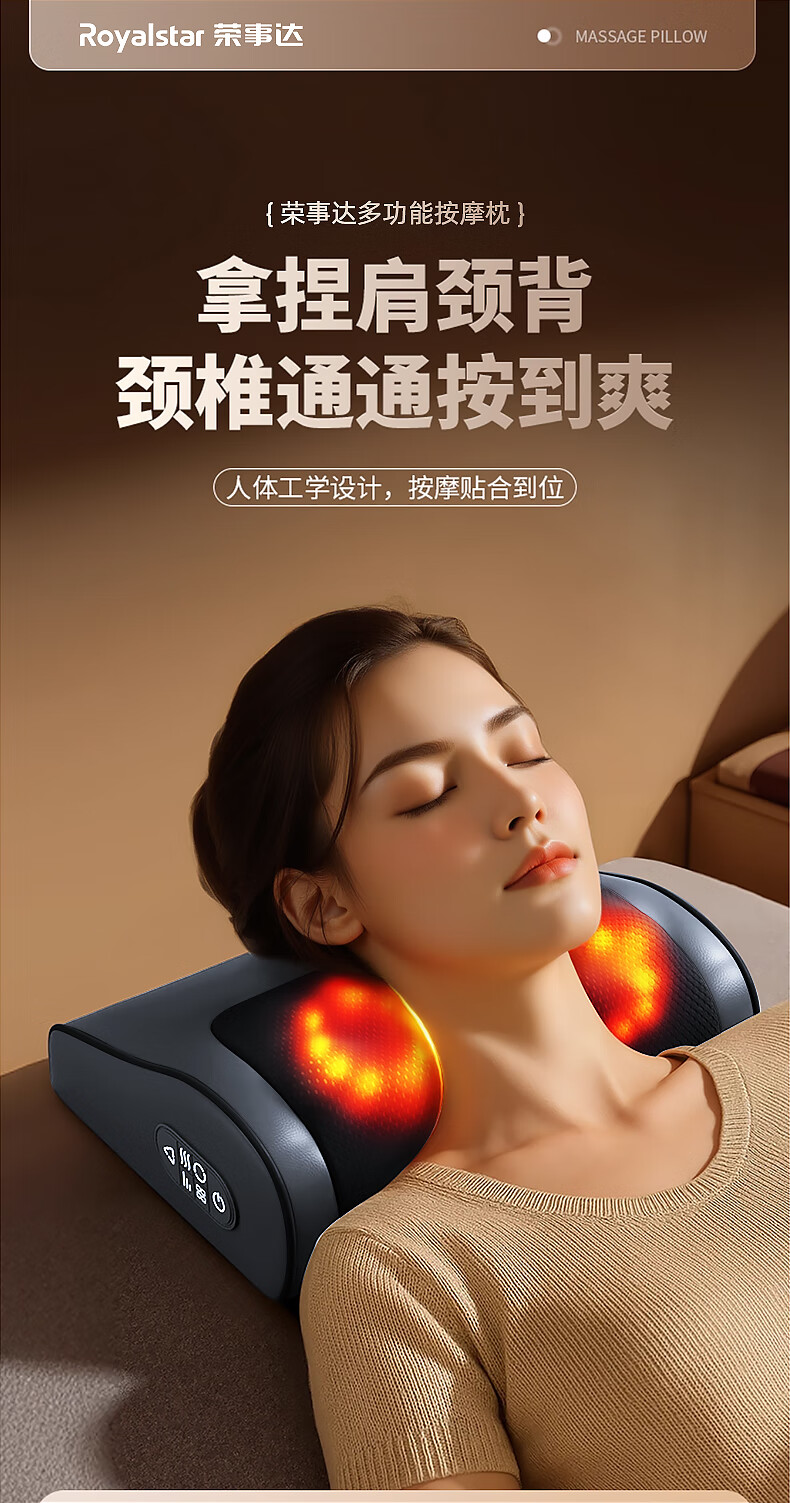 荣事达颈椎按摩器肩颈腰背电动按摩仪充插一体按摩神器全自动热敷揉捏智能靠垫中秋礼物送长辈父母男女友 米黄色充插一体款