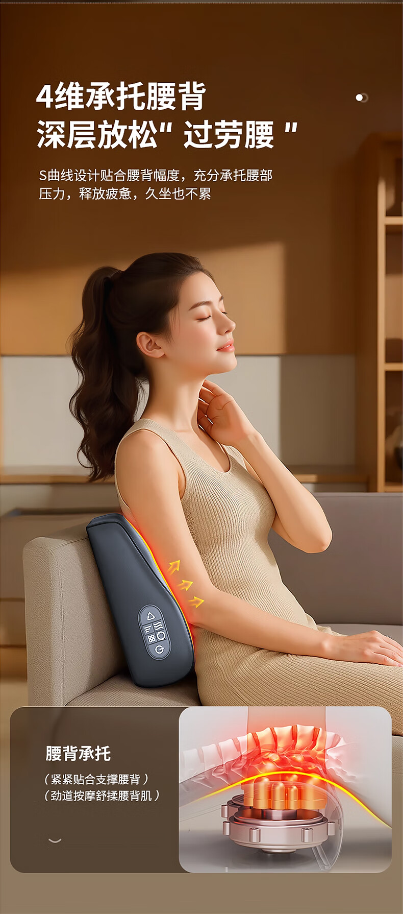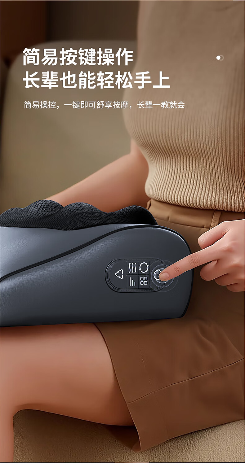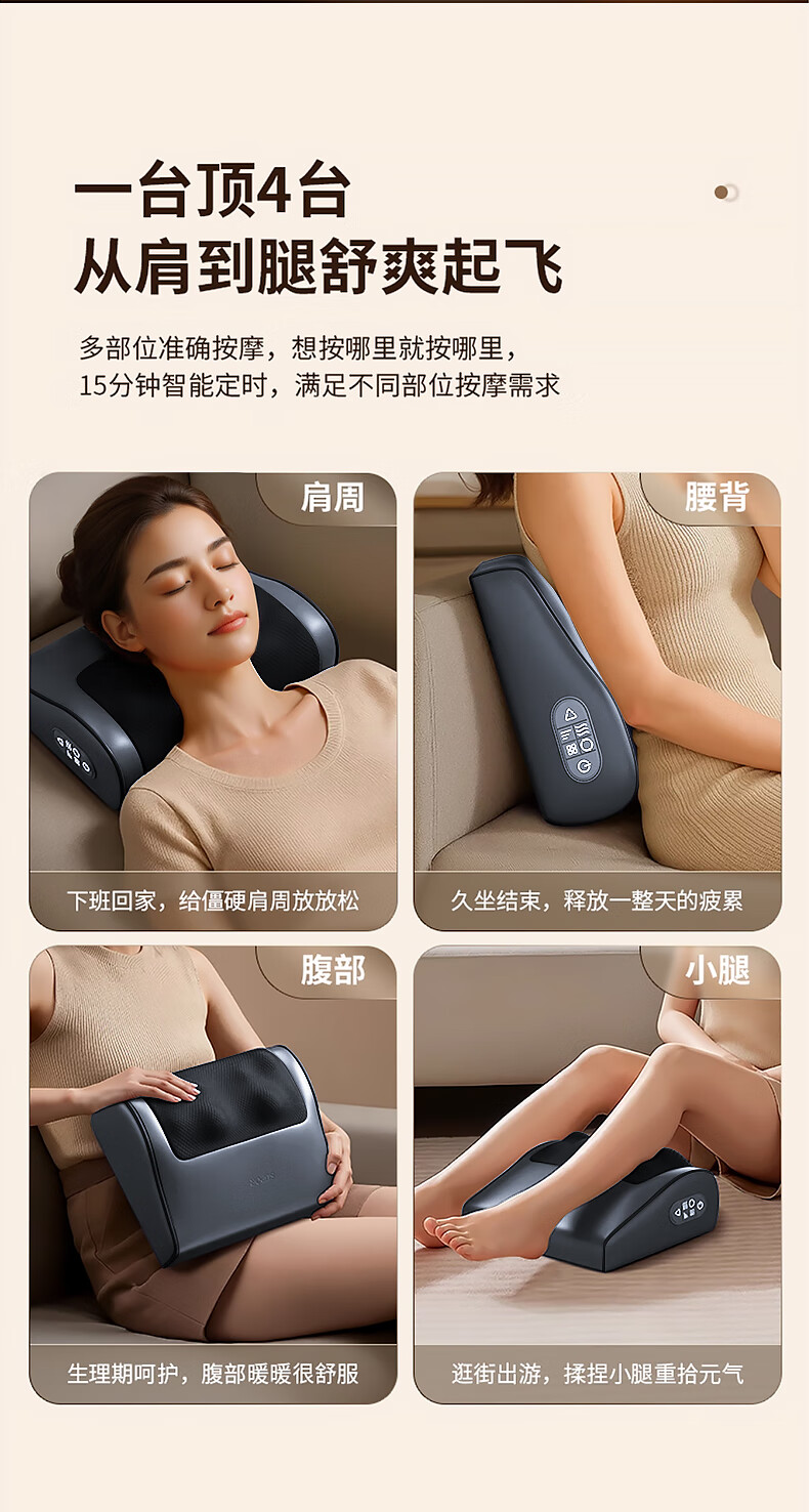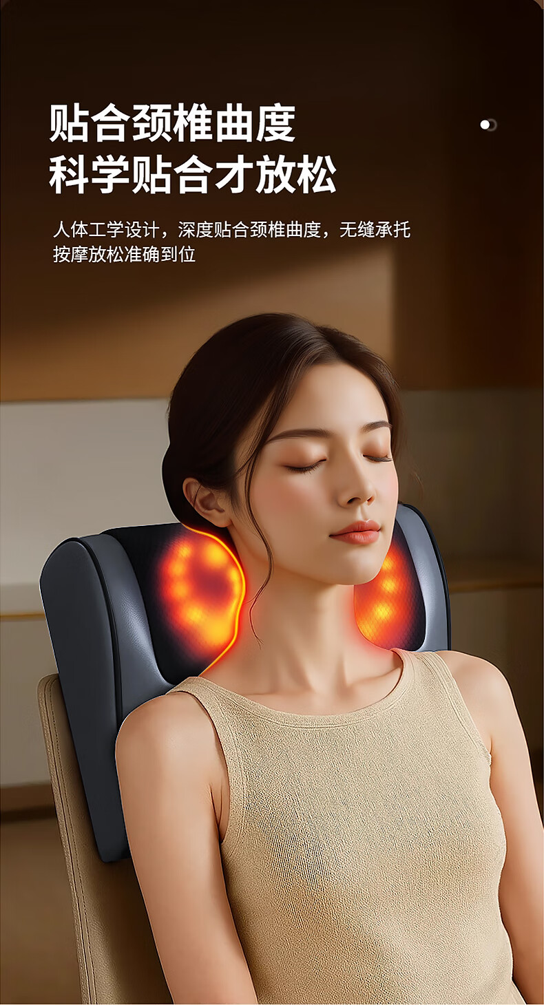 荣事达颈椎按摩器肩颈腰背电动按摩仪充插一体按摩神器全自动热敷揉捏智能靠垫中秋礼物送长辈父母男女友 米黄色充插一体款