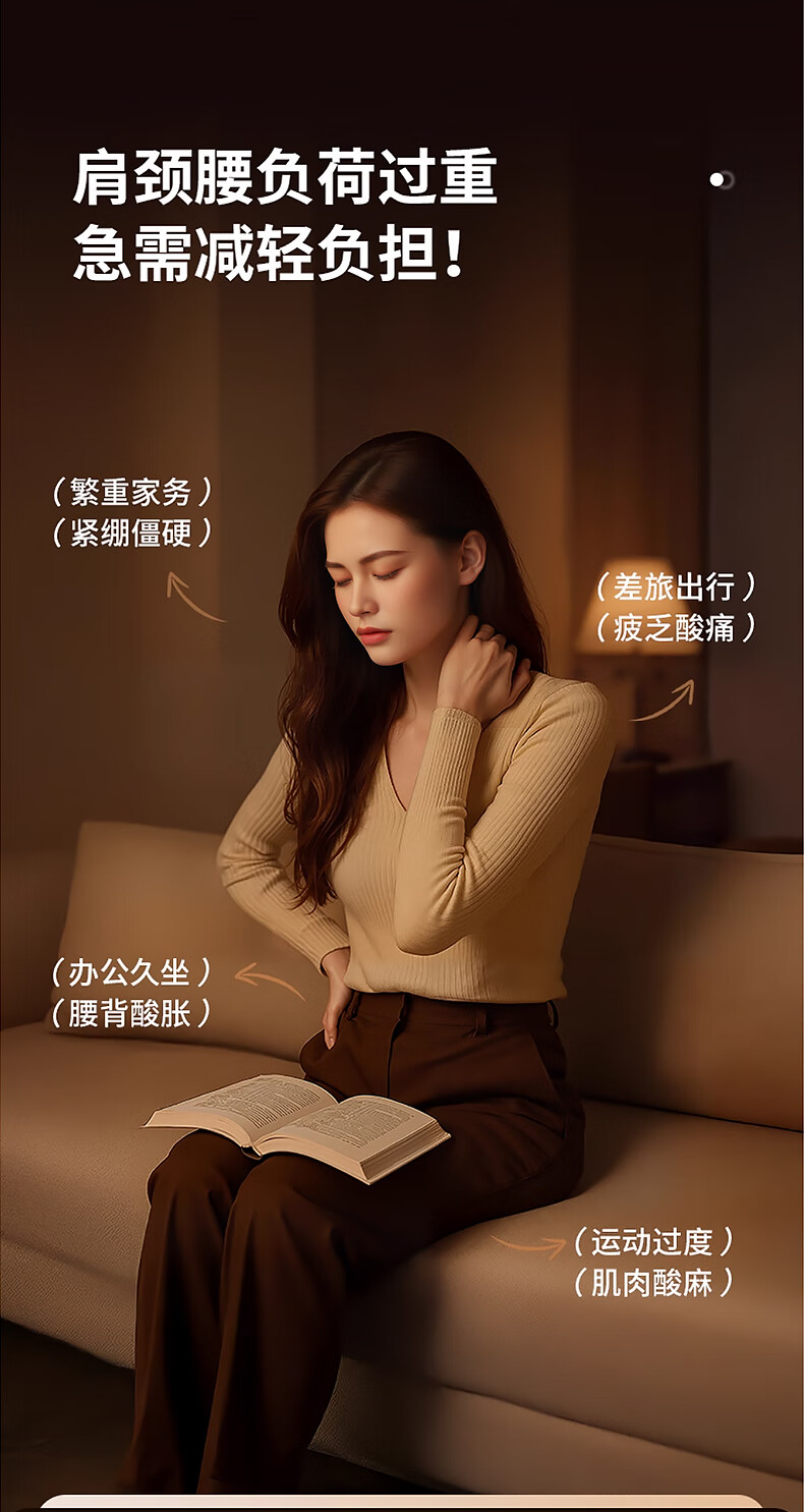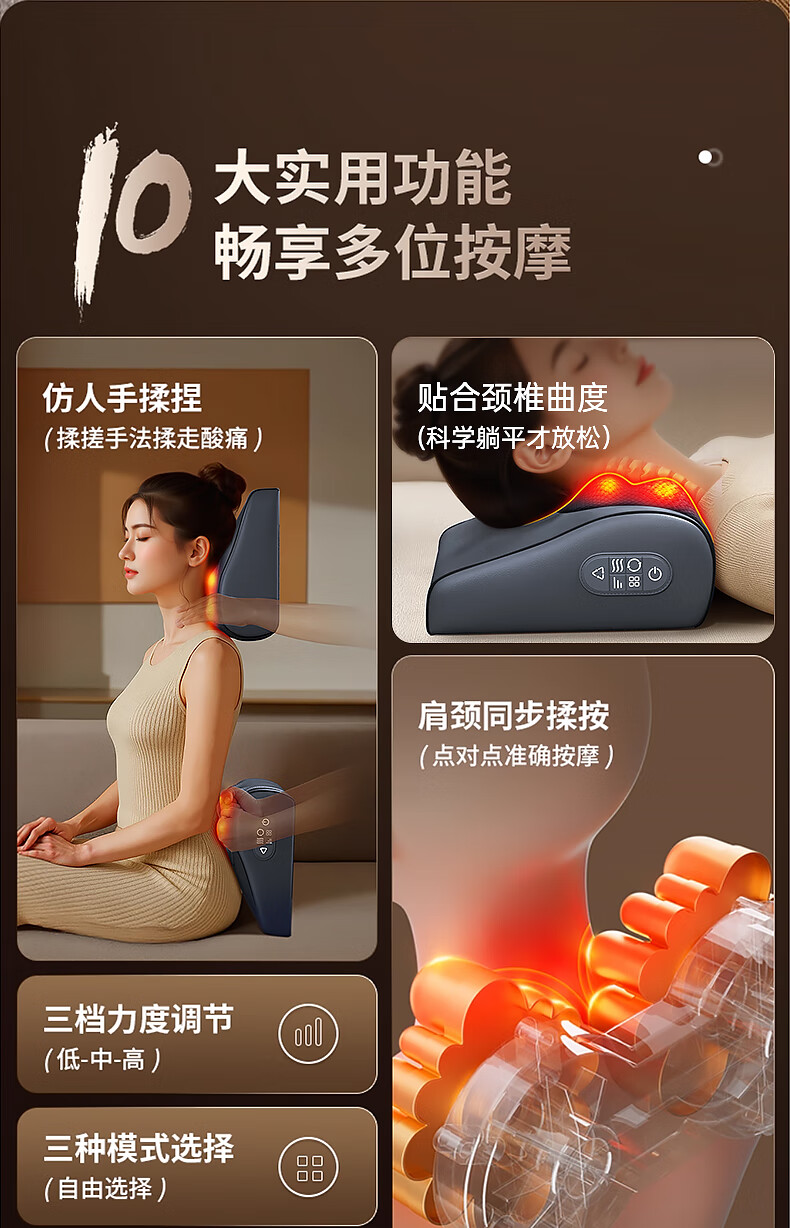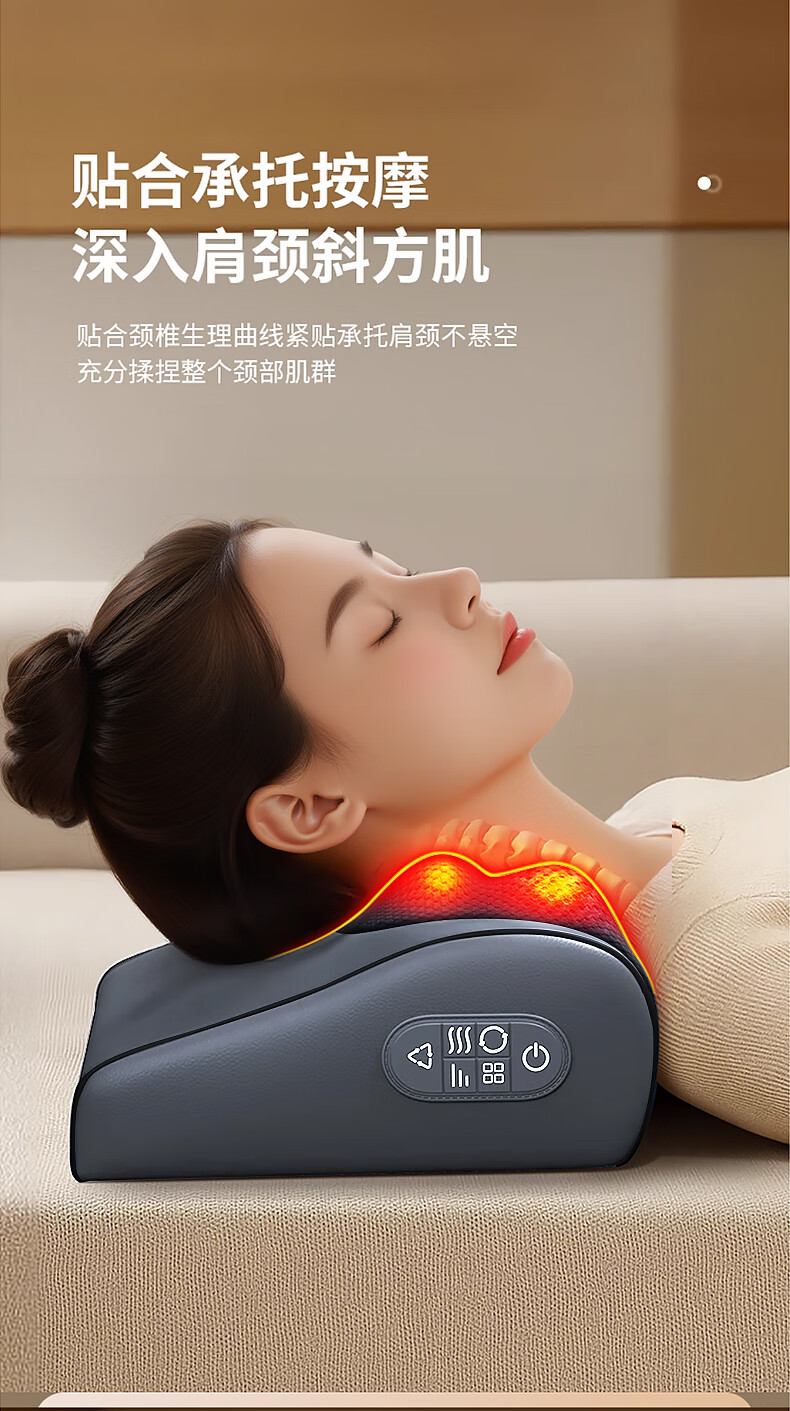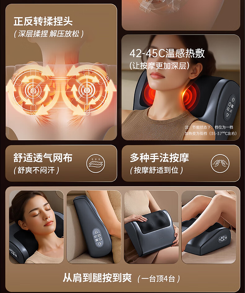 荣事达颈椎按摩器肩颈腰背电动按摩仪充插一体按摩神器全自动热敷揉捏智能靠垫中秋礼物送长辈父母男女友 米黄色充插一体款