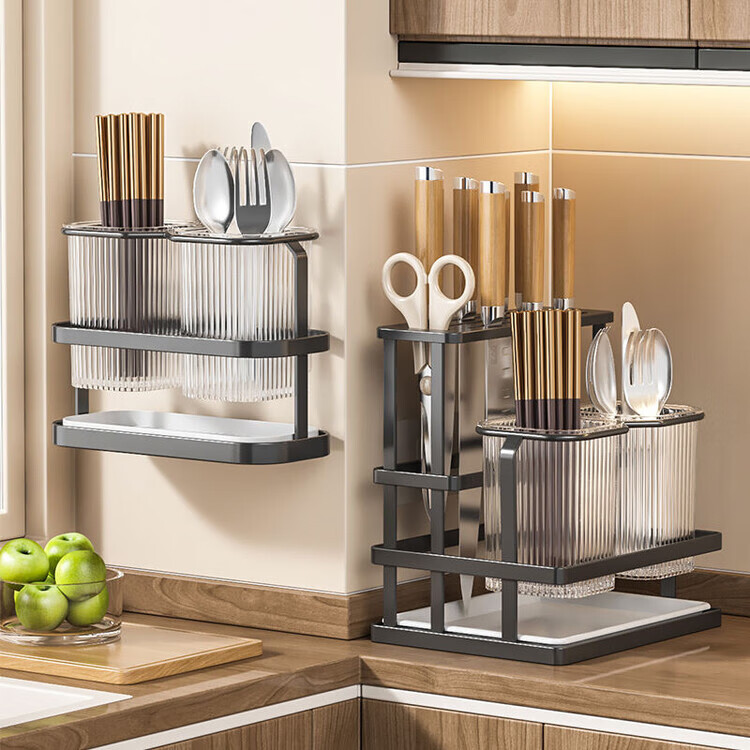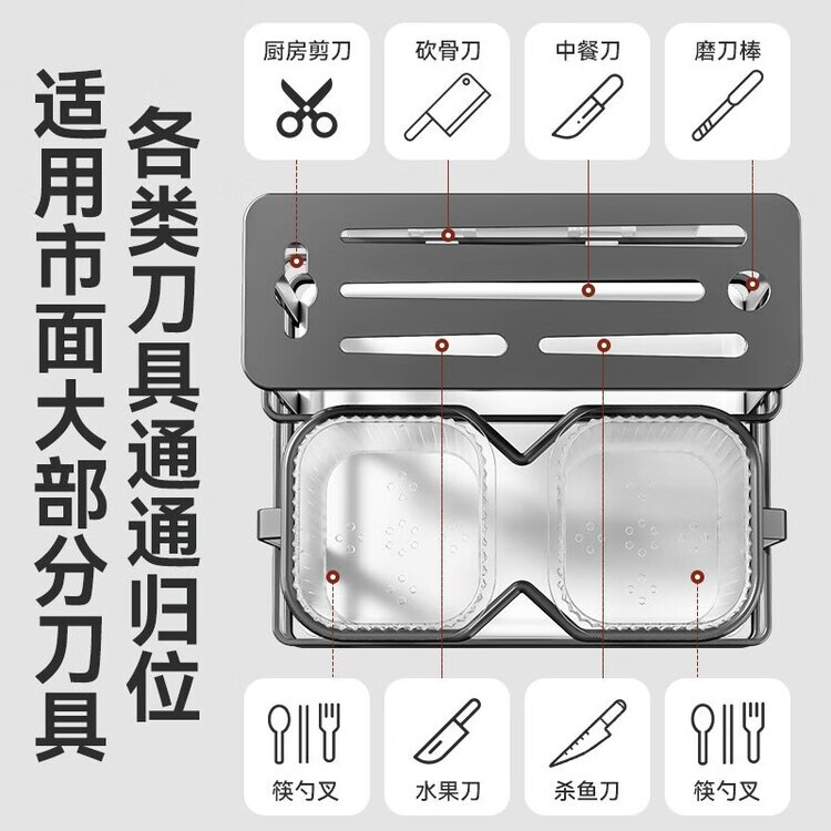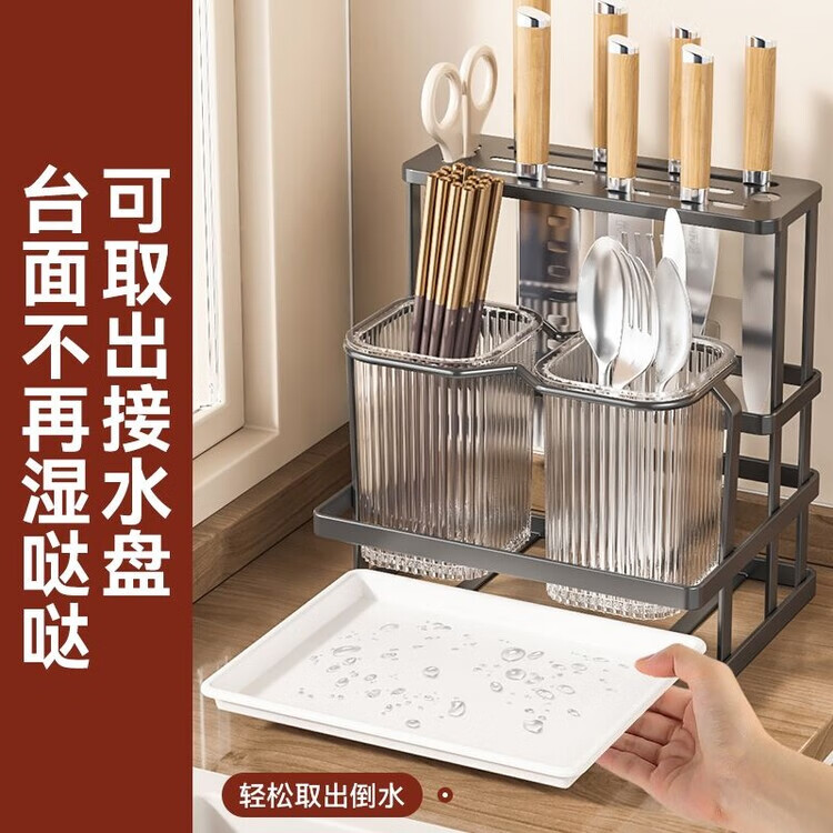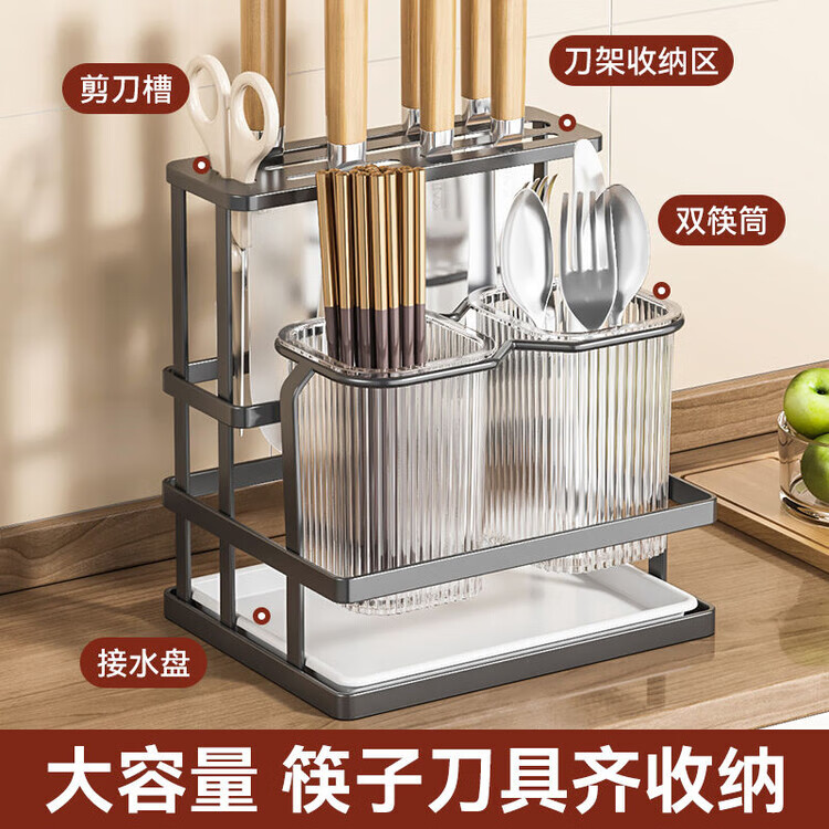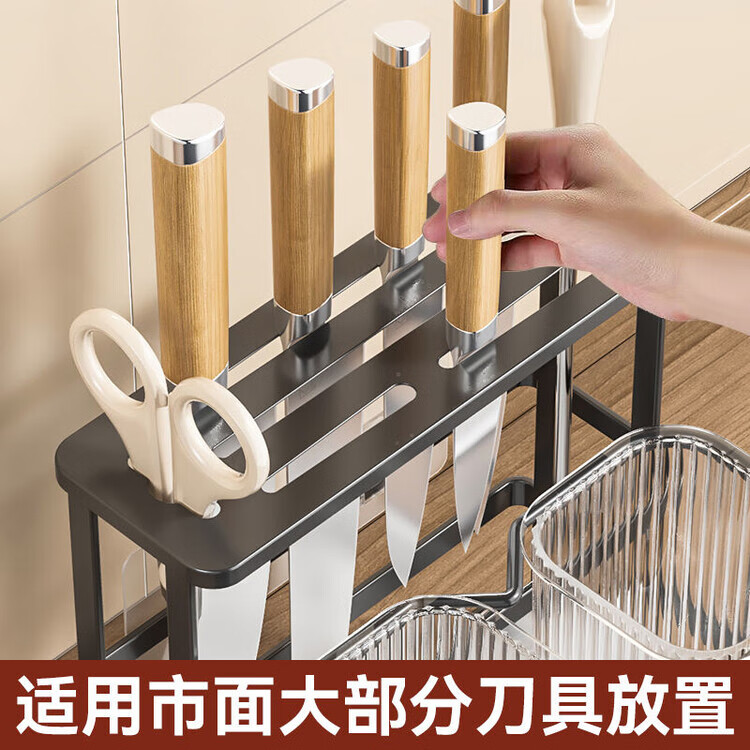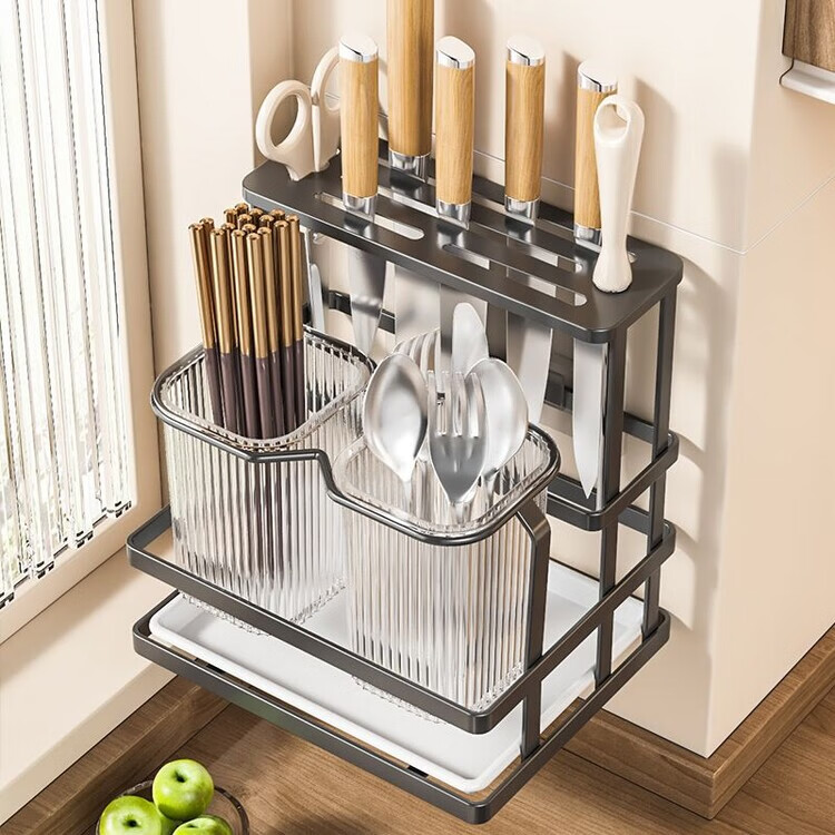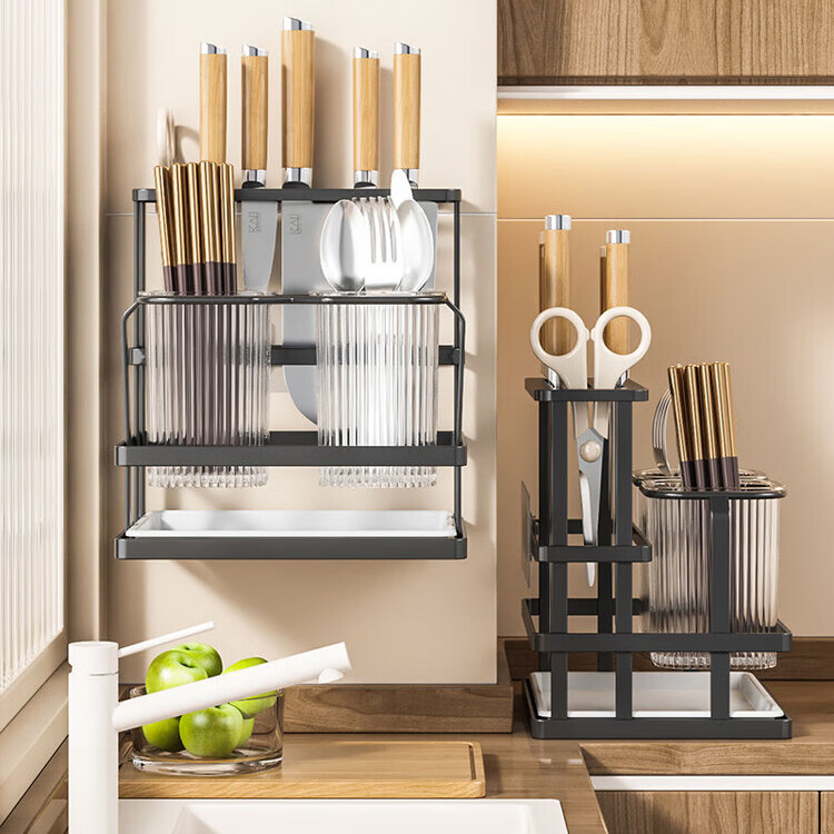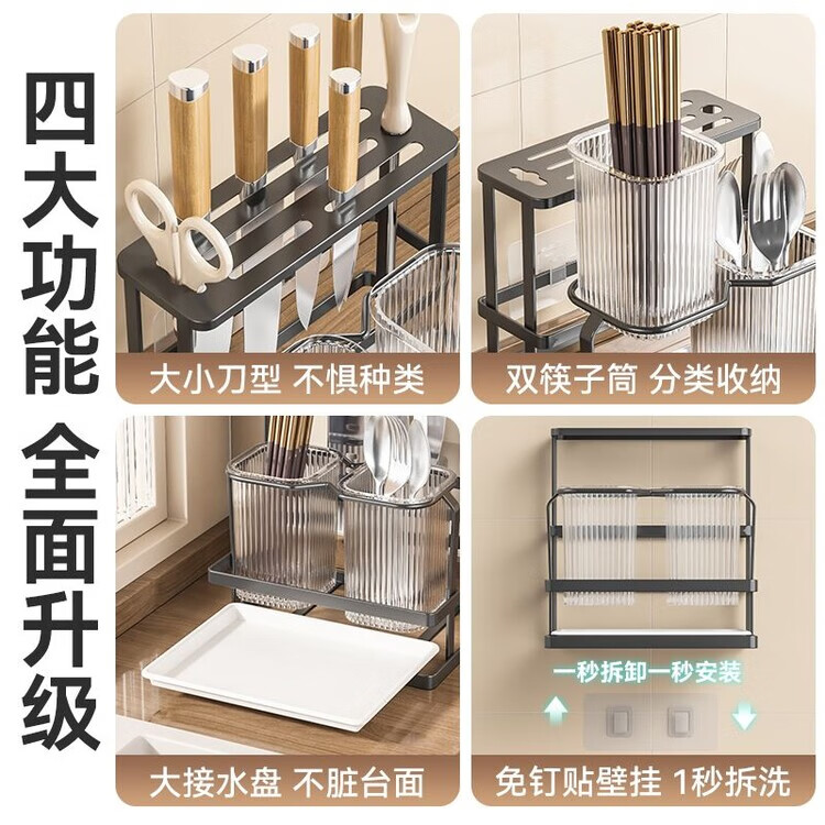 泰禧阁厨房刀架筷子筒一体收纳轻奢风刀具置物架新款筷笼子家用菜刀置物 经典耀夜黑 收纳刀架+筷子筒