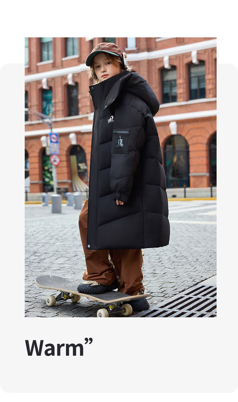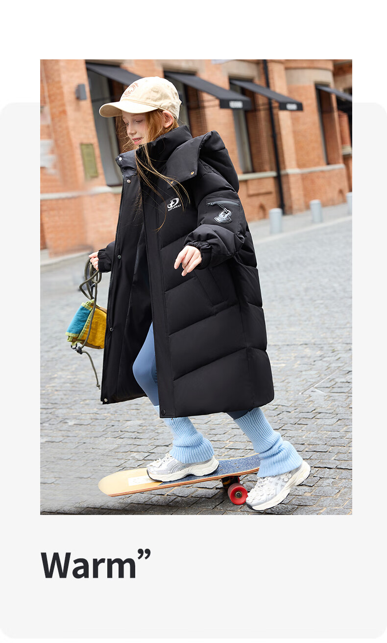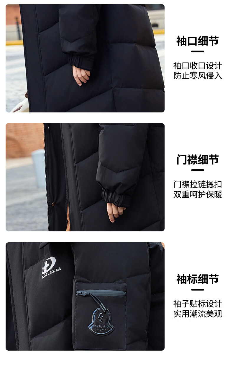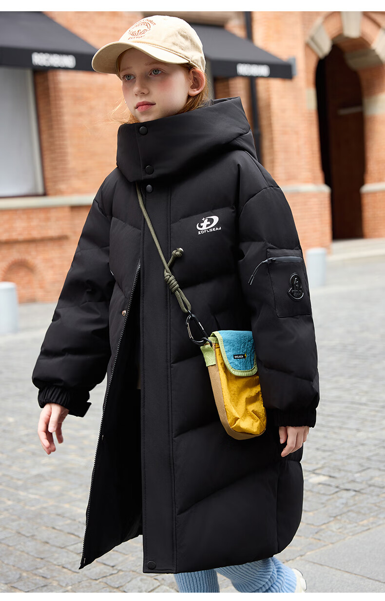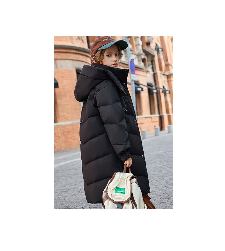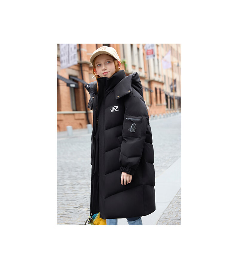 ABC KAIA儿童长款羽绒服2025新款男童女童过膝加厚新款冬装中大童宝宝外套 黑色(女童) 120