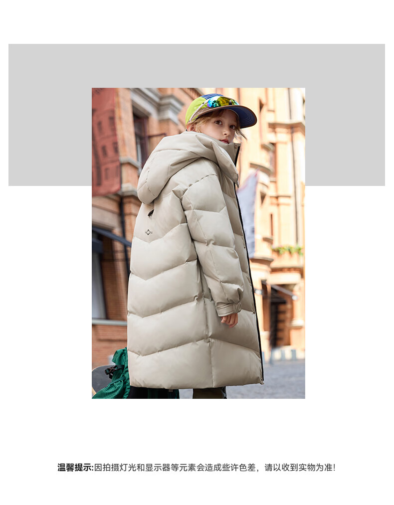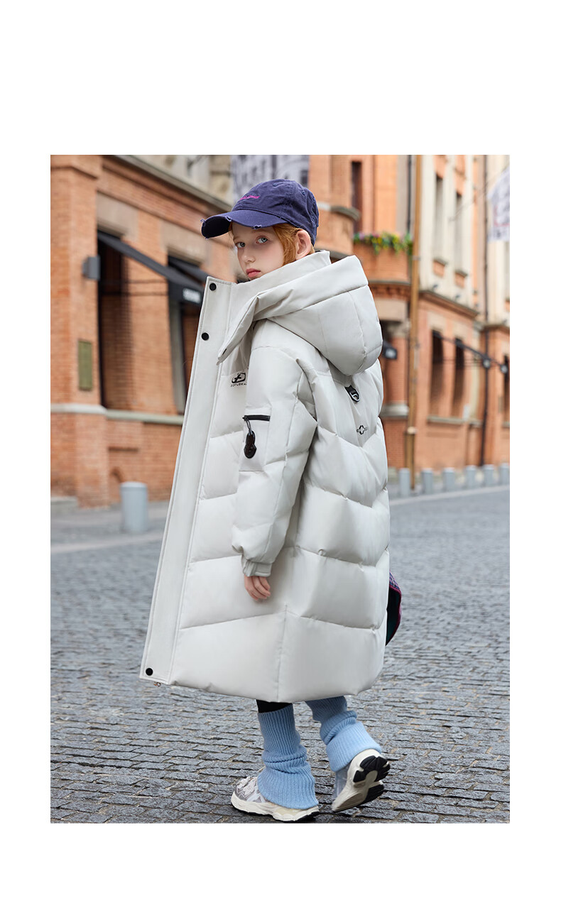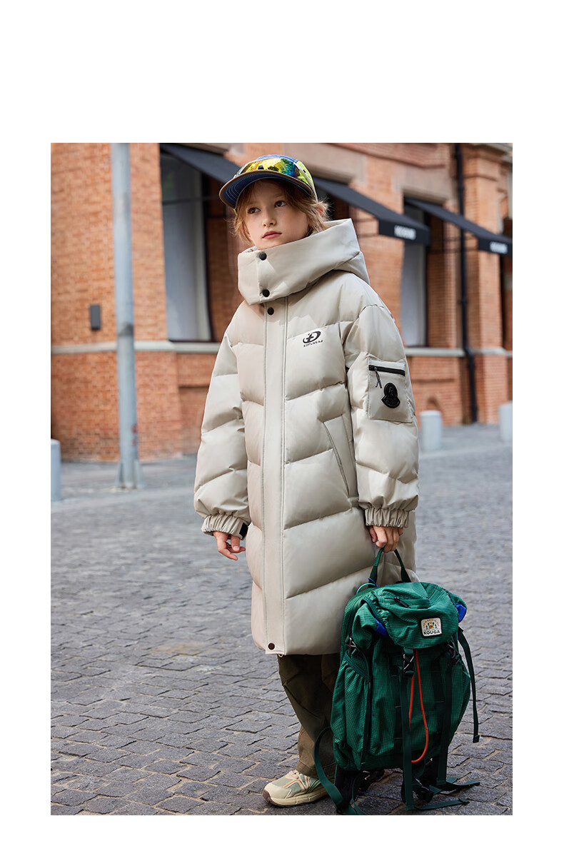 ABC KAIA儿童羽绒服男童长款过膝2025新款中大童加厚女童冬季防寒童装外套 川月白(男童) 140