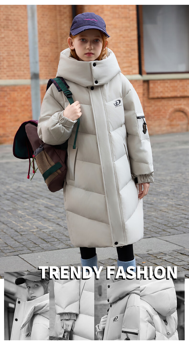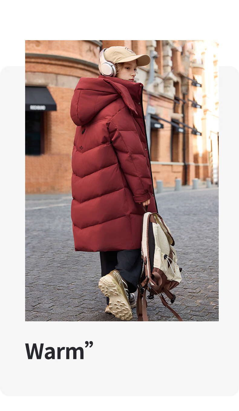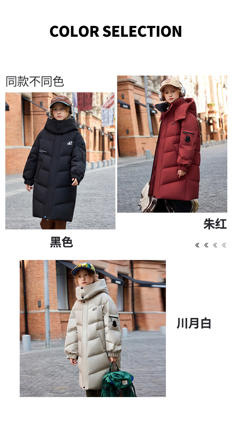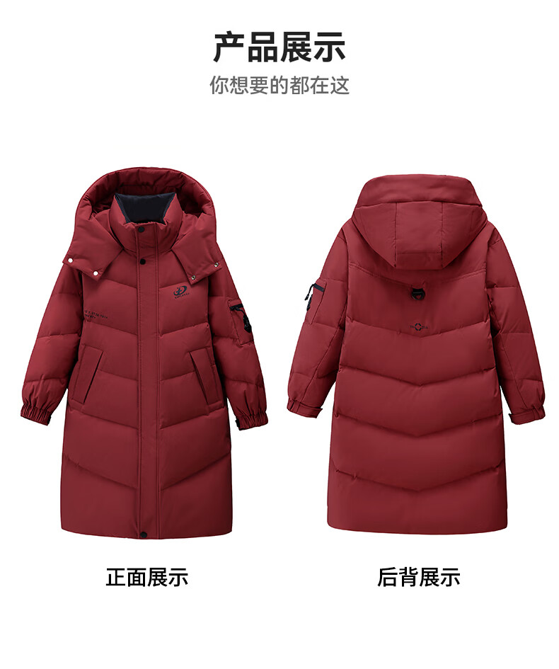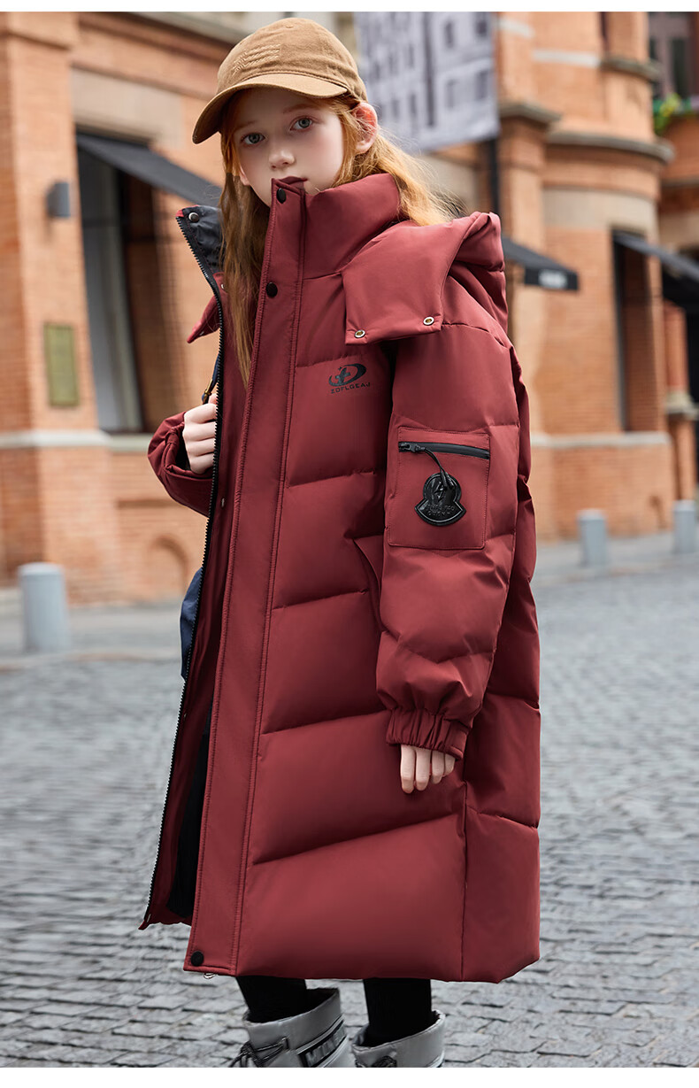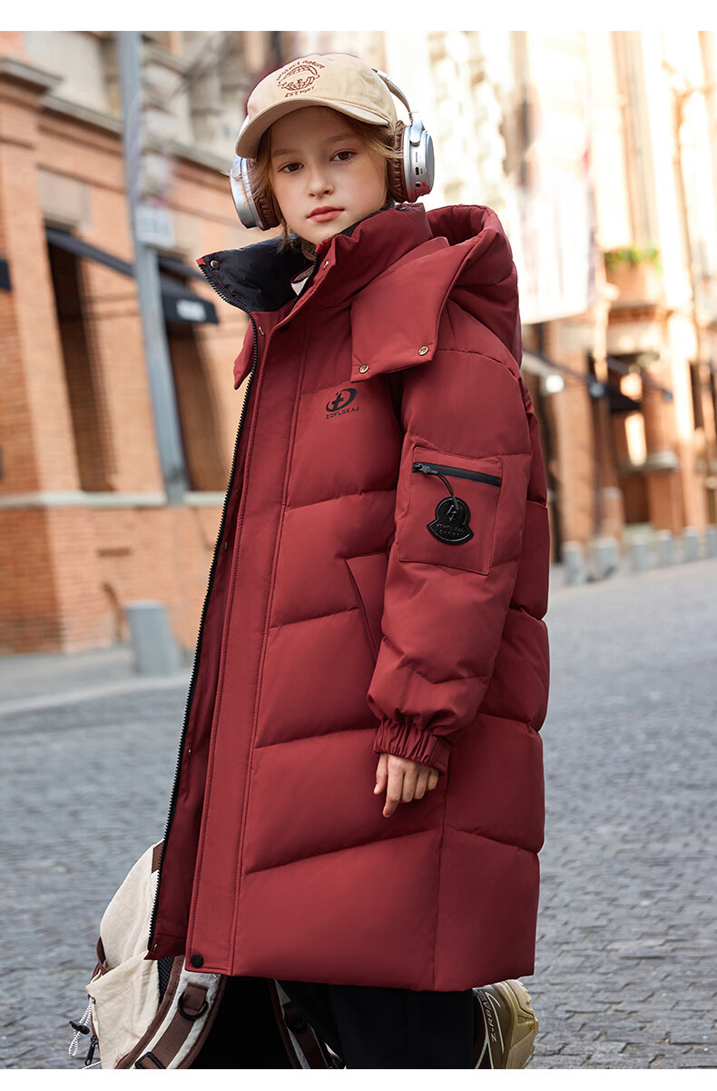ABC KAIA儿童长款羽绒服2025新款男童女童过膝加厚新款冬装中大童宝宝外套 枚红色(女童) 120