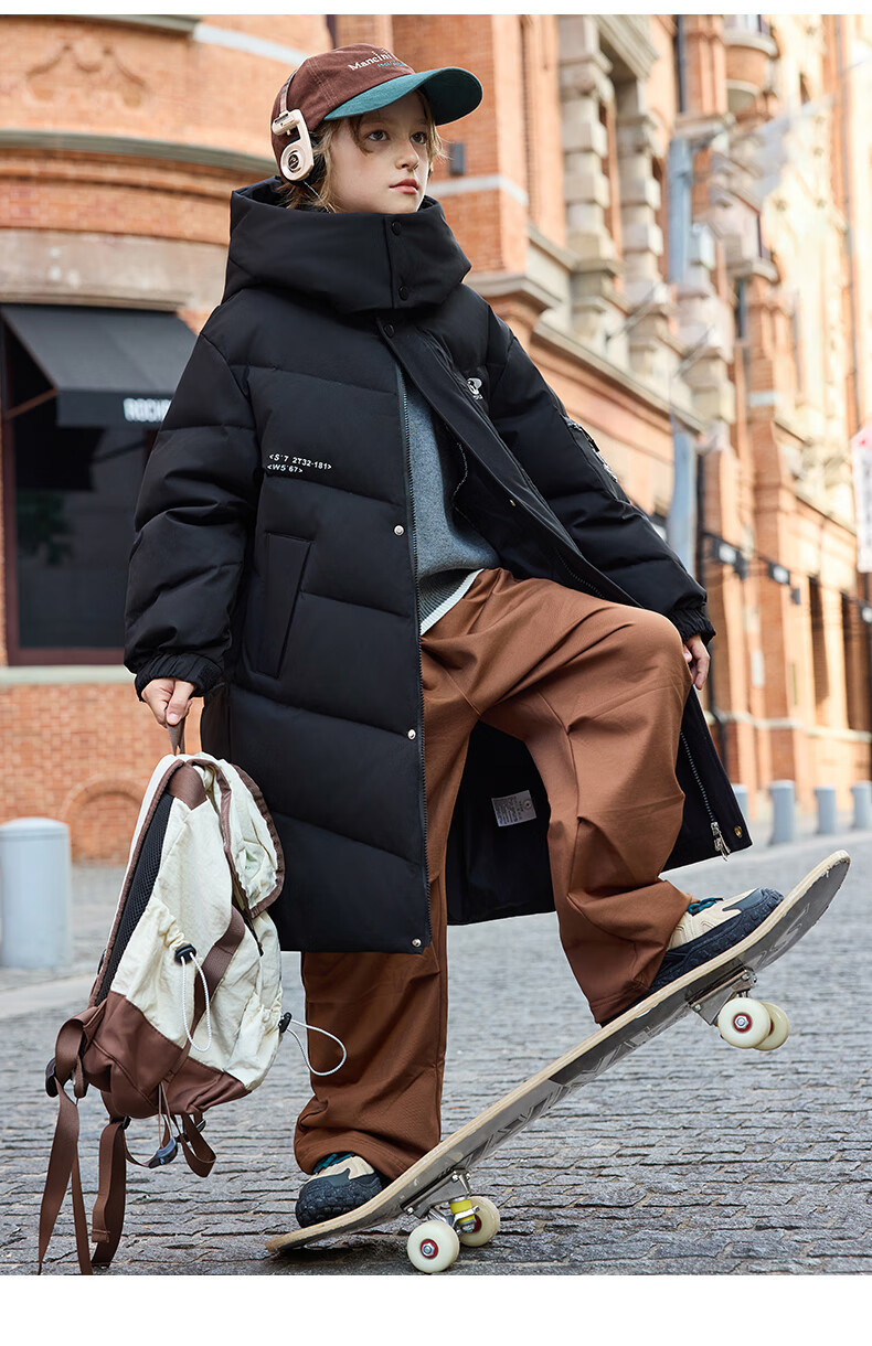 ABC KAIA新款儿童羽绒服男童中大童中长款90白鸭绒女童加厚洋气冬装外套潮 黑色(男童) 120