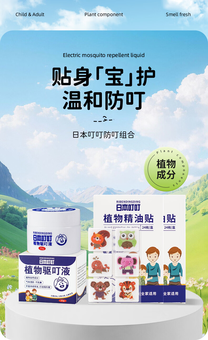 日本叮叮植物驱叮液神器35g家用户外便携不插电宠物家庭适用植物精油贴