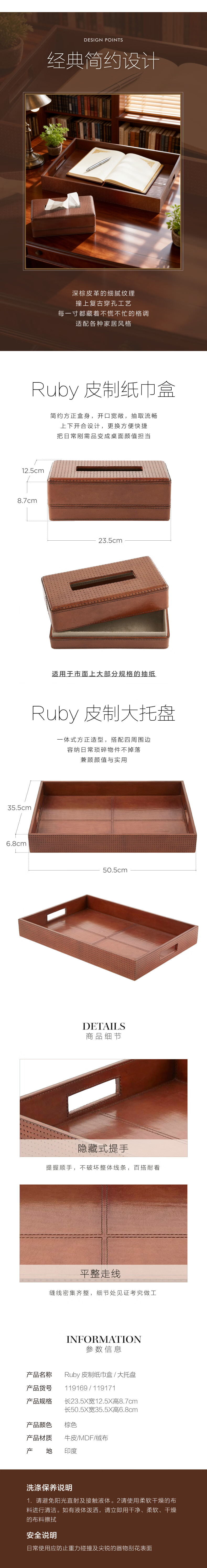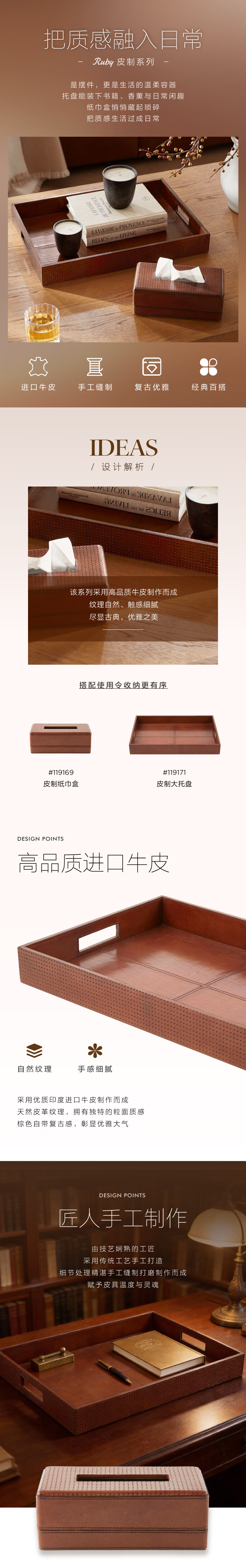Harbor House美式皮制收纳纸巾盒水牛皮手工办公桌面首饰收纳托盘 棕色-Ruby 皮制纸巾盒 见详情