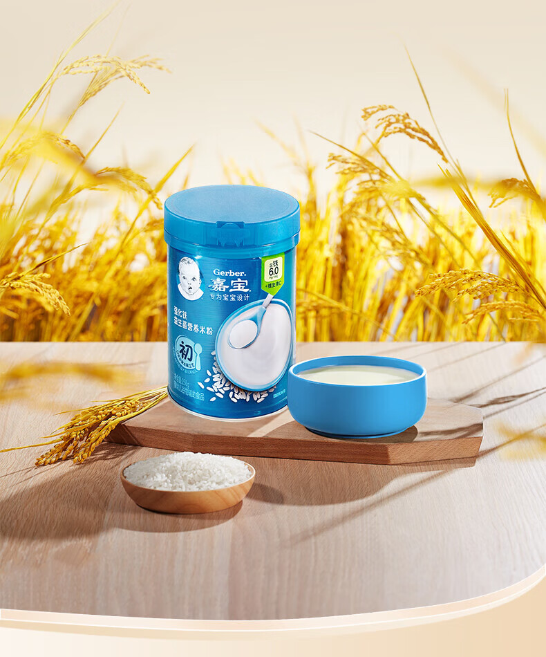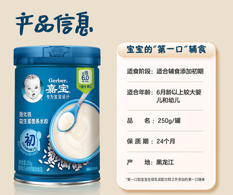 嘉宝(GERBER)高铁米粉婴儿宝宝辅食谷物水解原味钙铁锌维C益生菌营养米糊123段 初尝6月+】原味高铁米粉 250g*1罐
