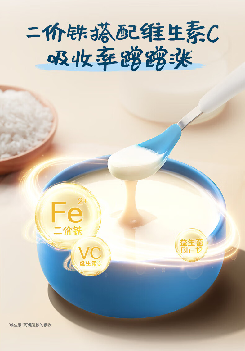 英氏米粉婴儿高铁独立小包装宝宝米粉荤素果蔬6-12个月米糊婴儿细腻 【6-9月+】维C135g+菠菜 180g*1盒