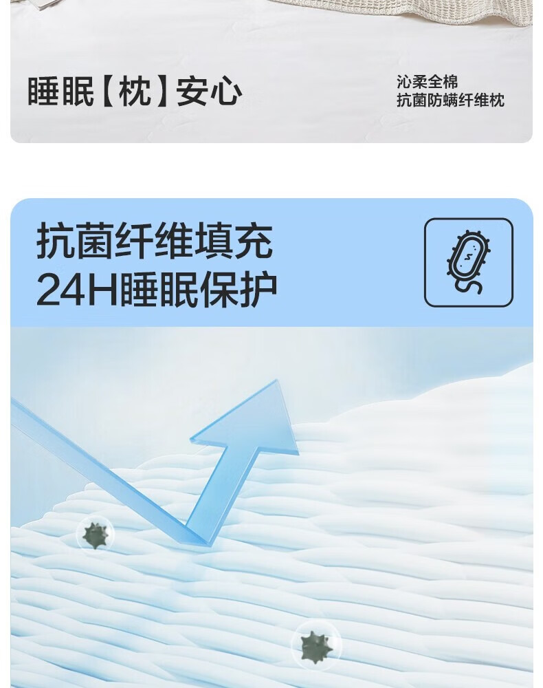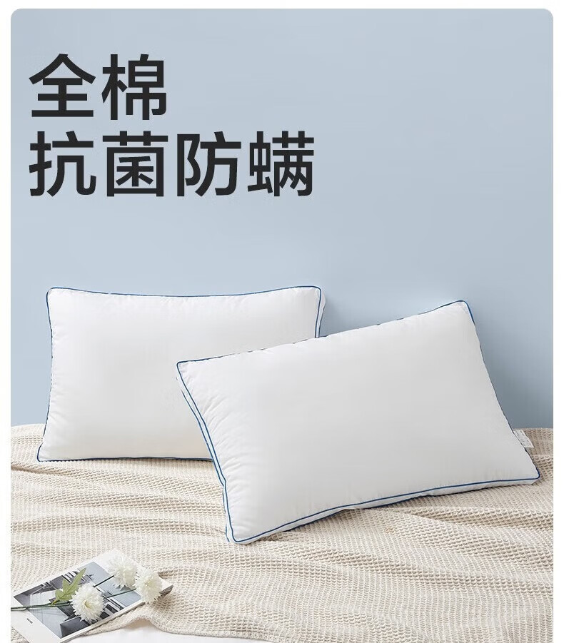 LOVO罗莱生活 枕头枕芯五星级酒店枕头成人家用抗菌纯棉可水洗高弹枕 【全棉A类抗菌】单只/大豆低枕42*68 cm