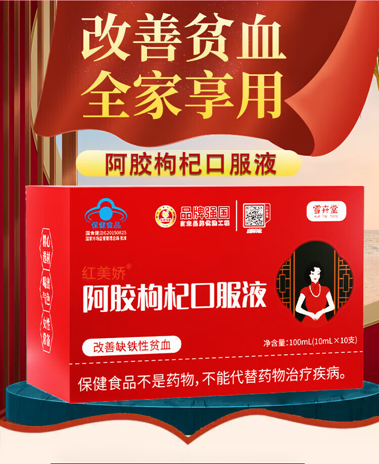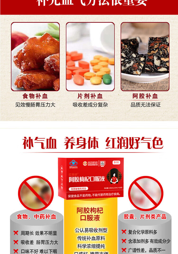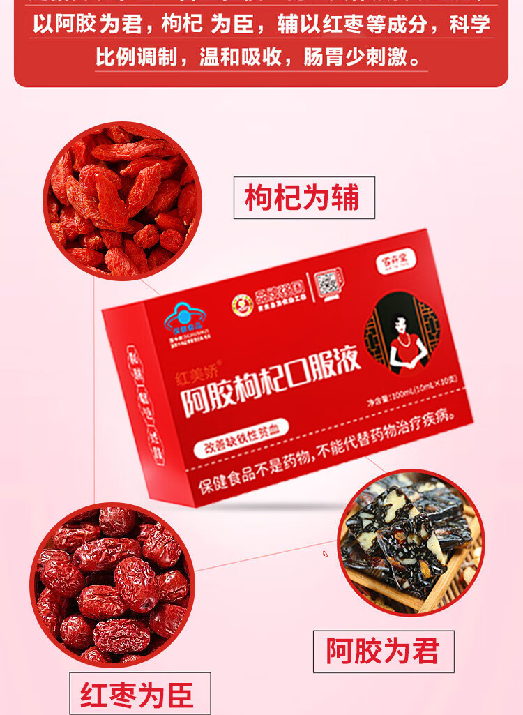 阿胶枸杞营养口服液女性调经养颜气血 补铁养血成人保健品 5盒装【50支气血口服液】