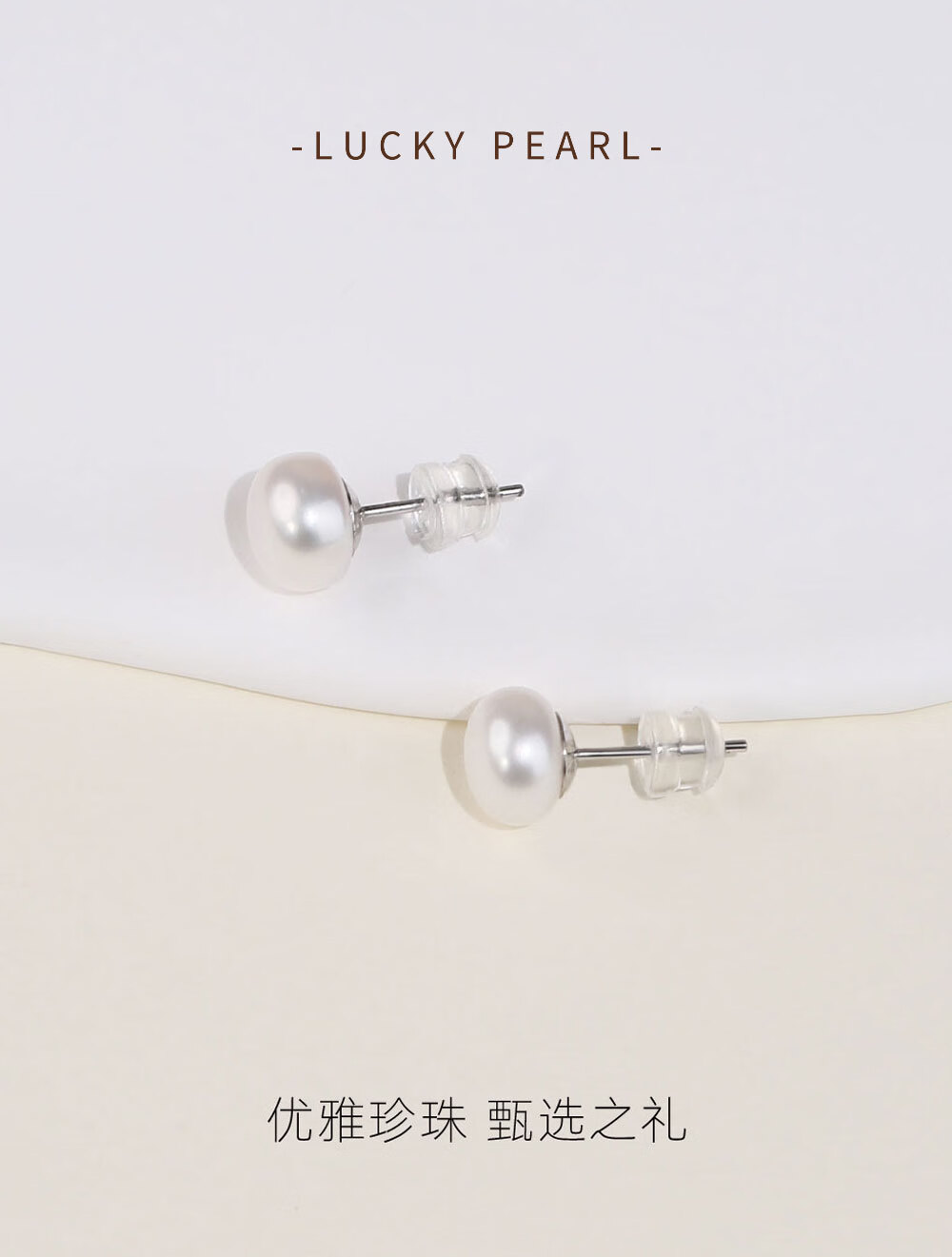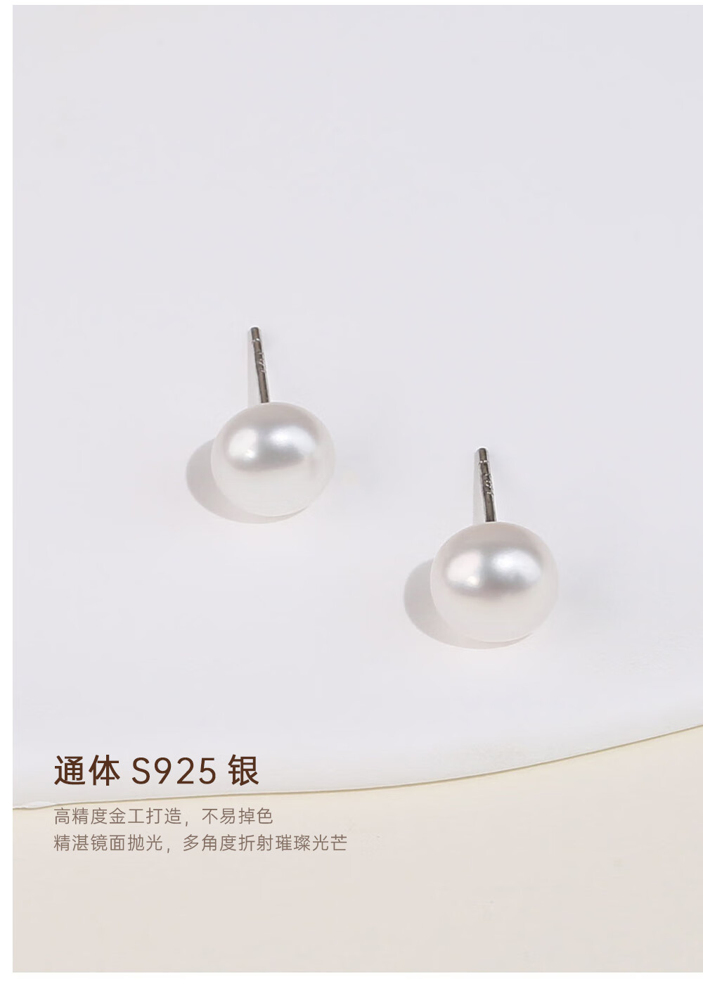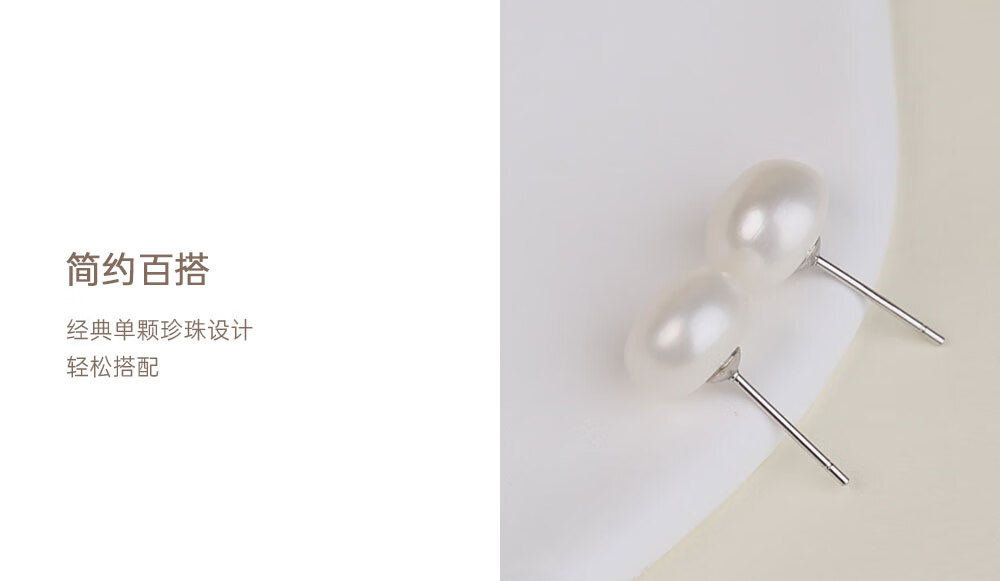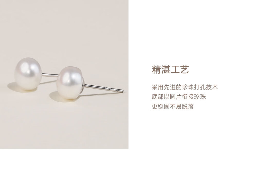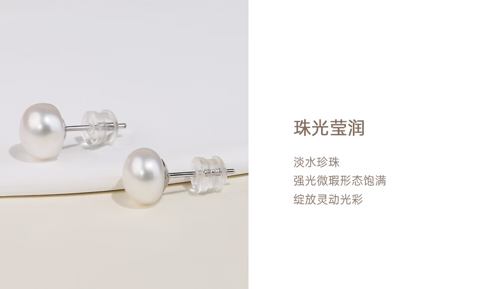 有幸淡水珍珠耳钉S925银扁圆馒头珍珠耳饰简约素钉轻奢高级银耳饰礼物 S925银淡水珍珠5-6mm 馒头形/强光