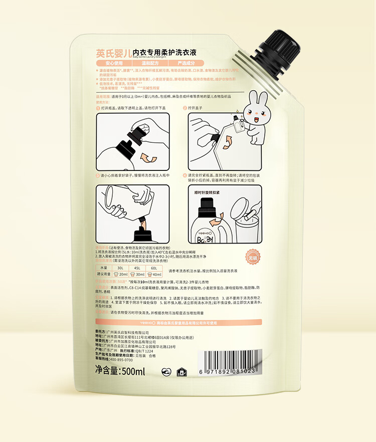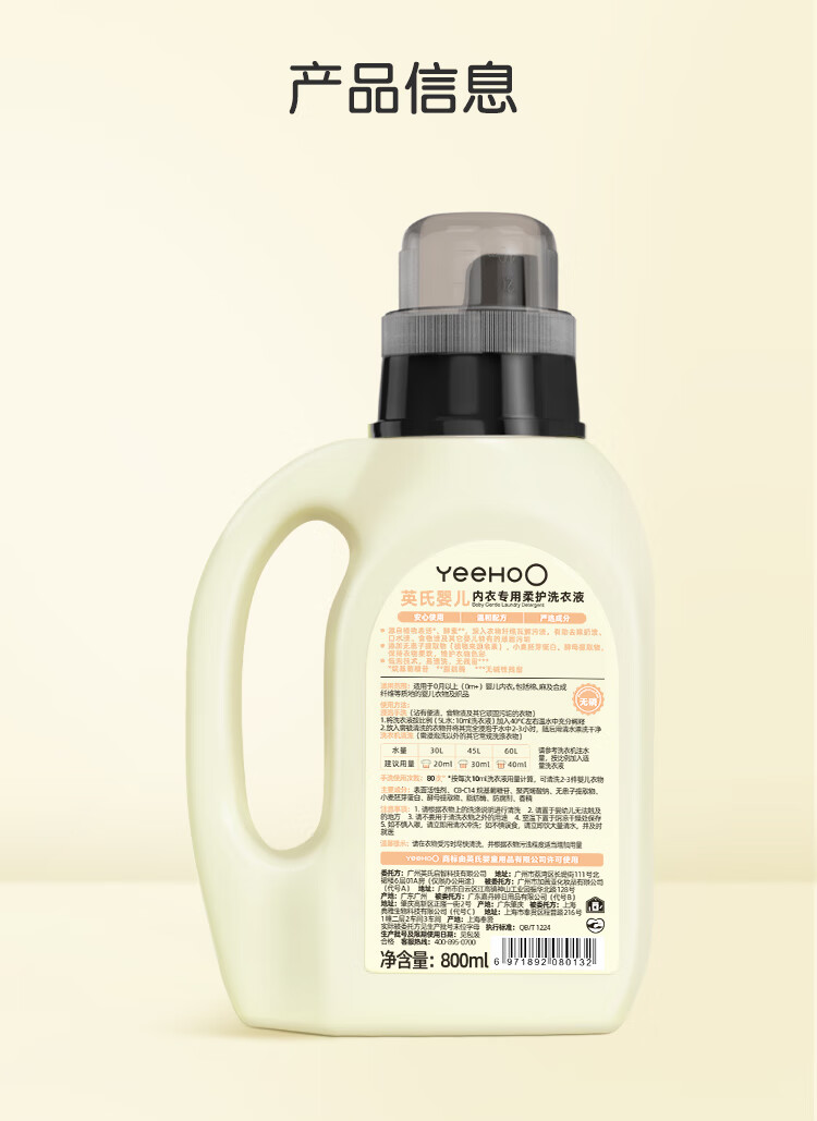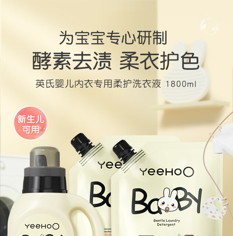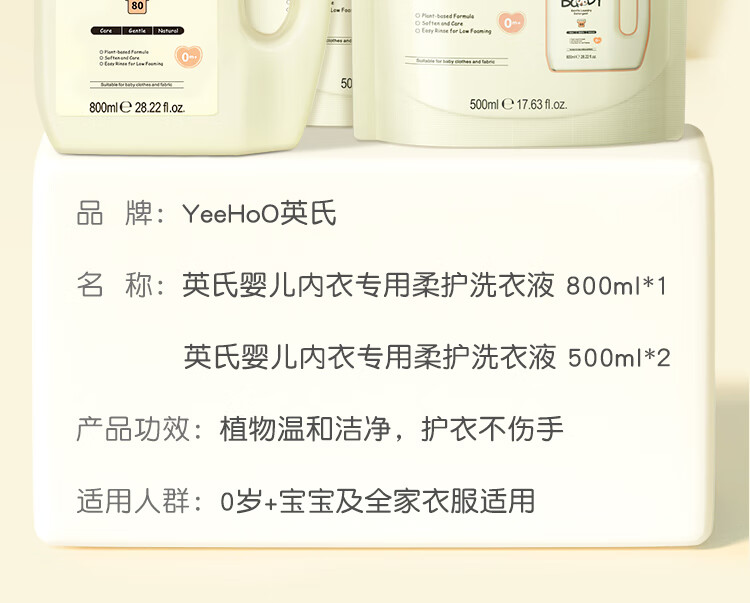 英氏婴儿洗衣液宝宝专用洗衣皂液儿童内裤天然酵素去污柔护洗衣液 洗衣液800ml*1+500ml*2