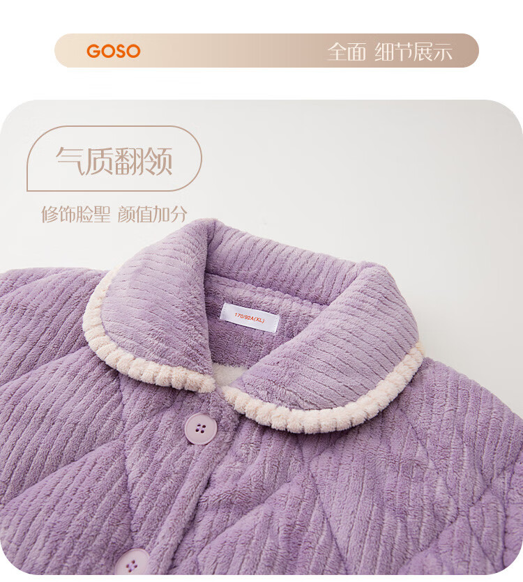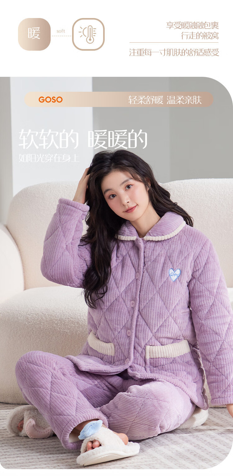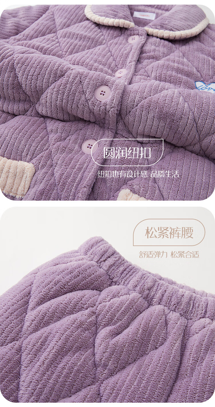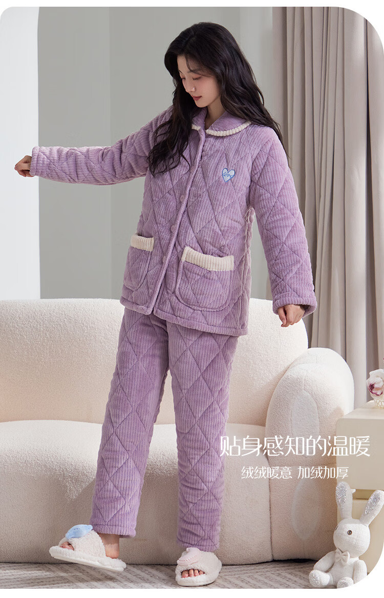香蜜闺秀【三层夹棉加厚】暖冬可外穿长袖开衫女士家居服棉服保暖睡衣套装 24403001紫色 L